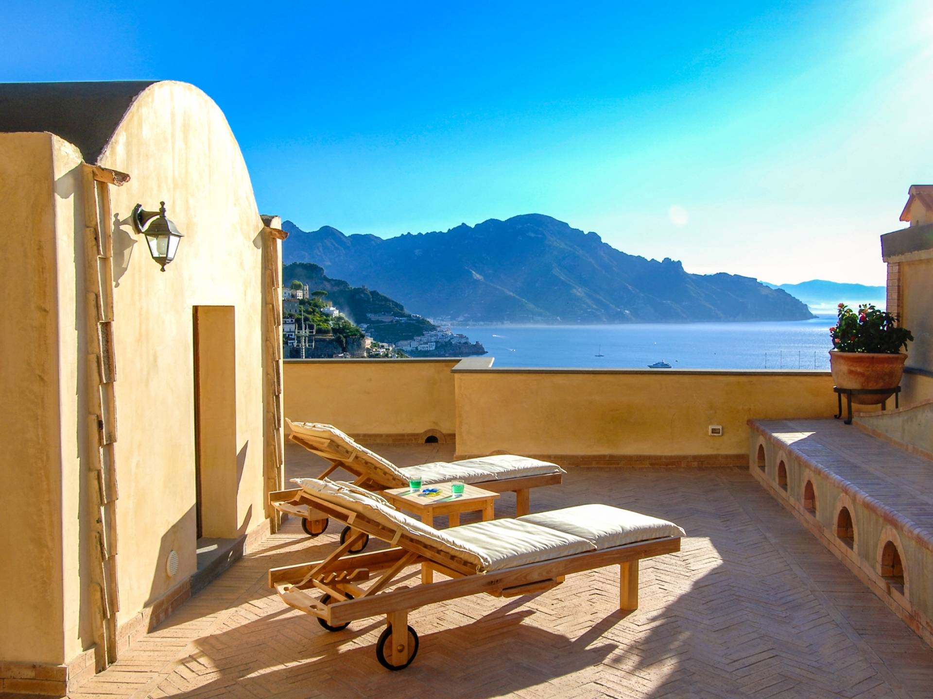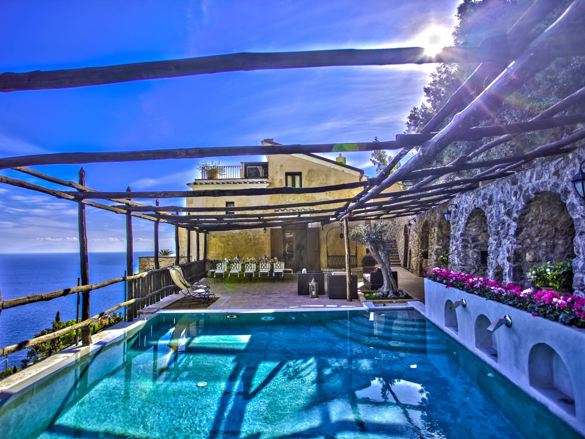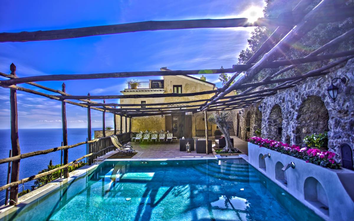 El valor de la exclusividad, el placer del lujo discreto: Villa Rinascita es todo eso. Residencia histórica ubicada en uno de los escenarios más encantadores de toda la costa de Amalfi, esta encantadora residencia nació en la época de la República Marítima. Se eleva en la parte alta de Salita Baglio y por eso es verdaderamente único e inigualable: desde sus grandes terrazas, de hecho, se puede contemplar la vista desde las altas cumbres de las montañas Lanari hasta descender hacia el encantador promontorio que se sumerge en las aguas de un azul profundo, con sus casas blancas enclavadas en los acantilados de la roca y las bajadas escalonadas al mar con limoneros.