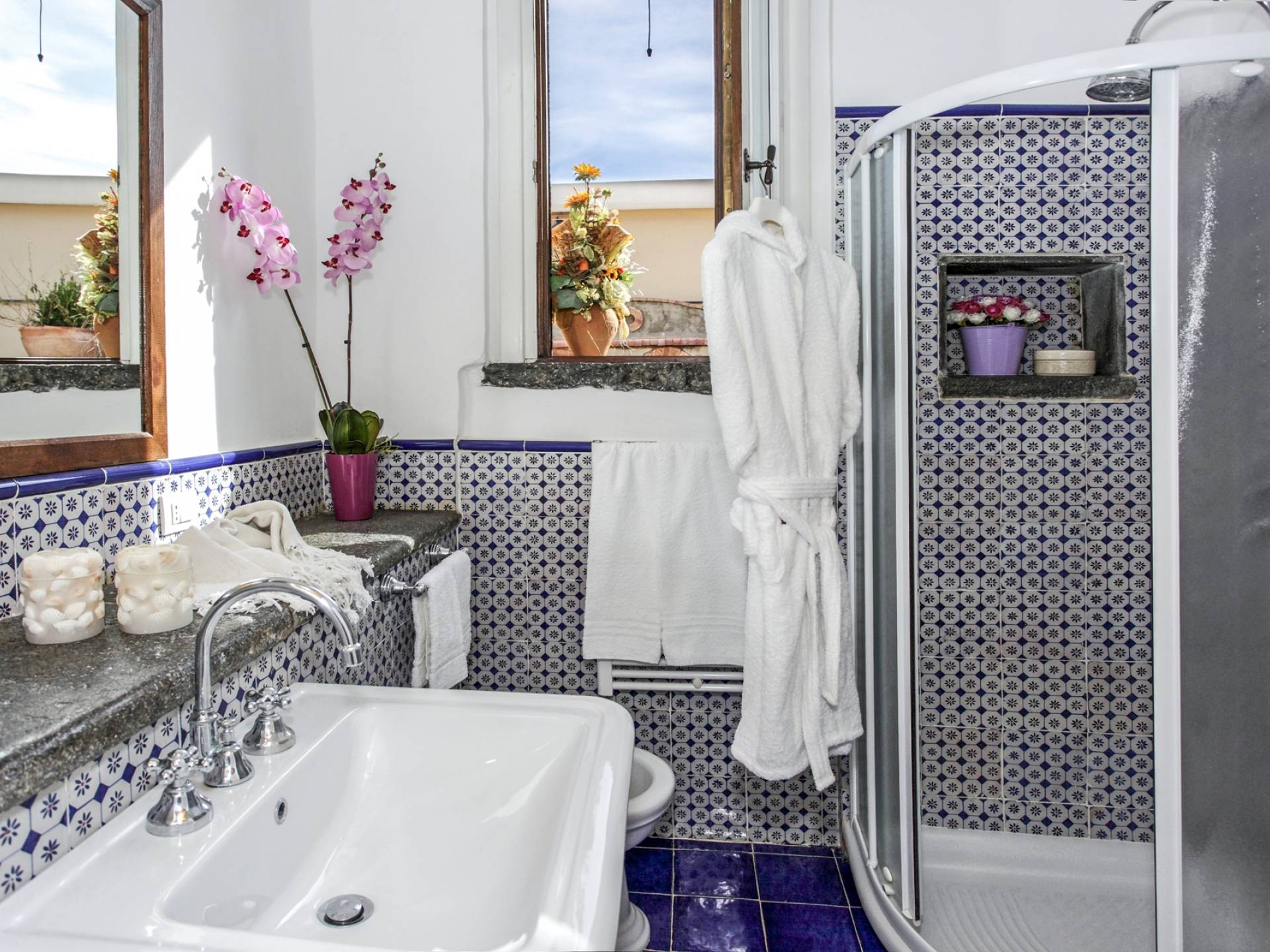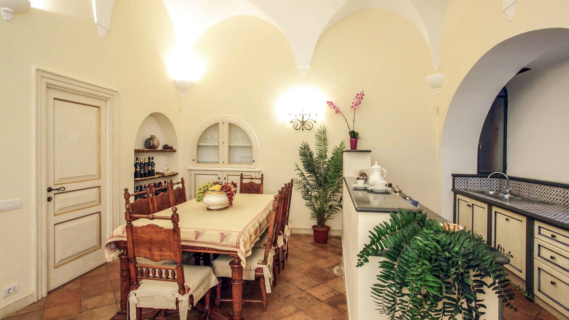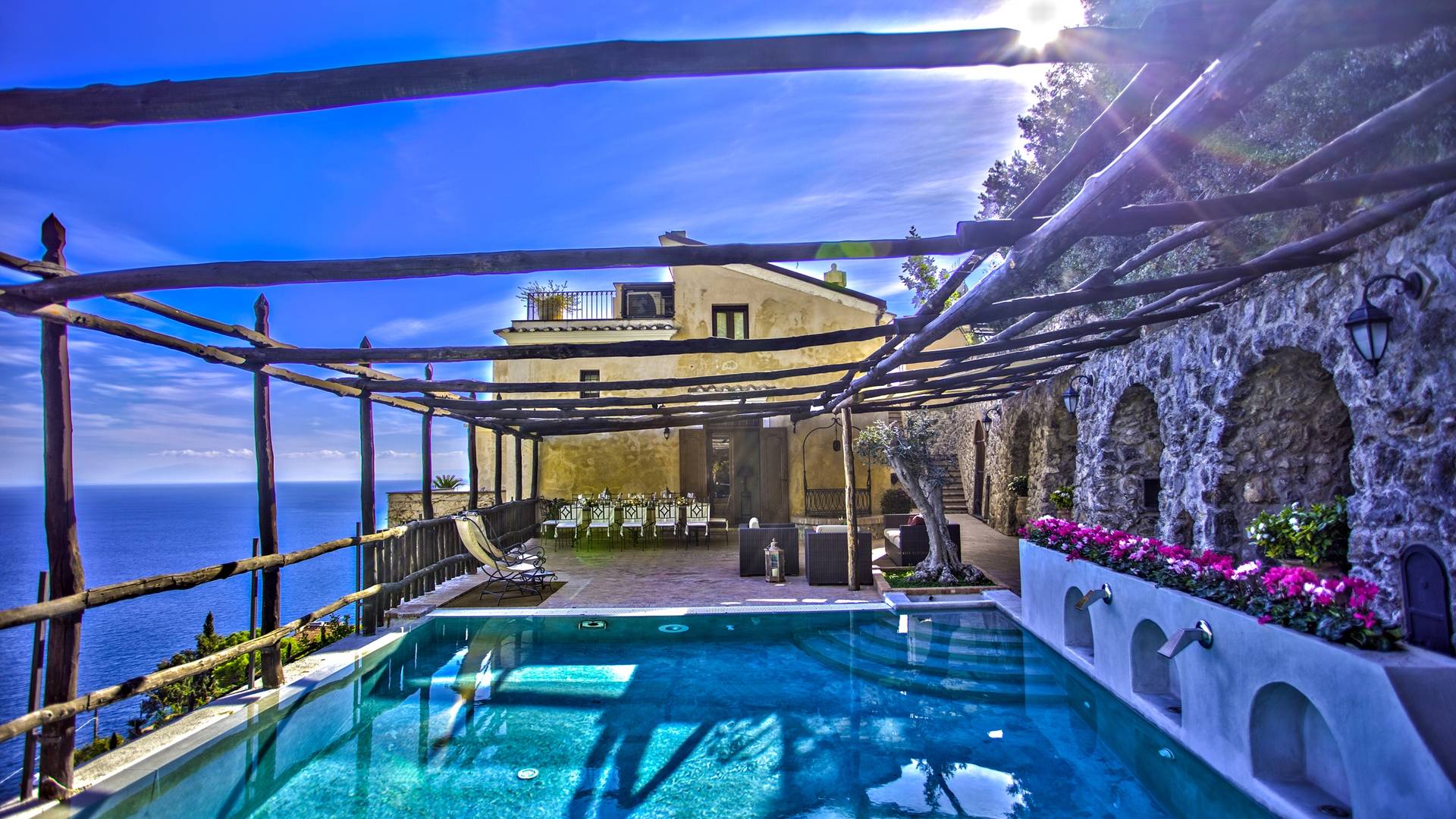 El valor de la exclusividad, el placer del lujo discreto: Villa Rinascita es todo eso. Residencia histórica ubicada en uno de los escenarios más encantadores de toda la costa de Amalfi, esta encantadora residencia nació en la época de la República Marítima. Se eleva en la parte alta de Salita Baglio y por eso es verdaderamente único e inigualable: desde sus grandes terrazas, de hecho, se puede contemplar la vista desde las altas cumbres de las montañas Lanari hasta descender hacia el encantador promontorio que se sumerge en las aguas de un azul profundo, con sus casas blancas enclavadas en los acantilados de la roca y las bajadas escalonadas al mar con limoneros.