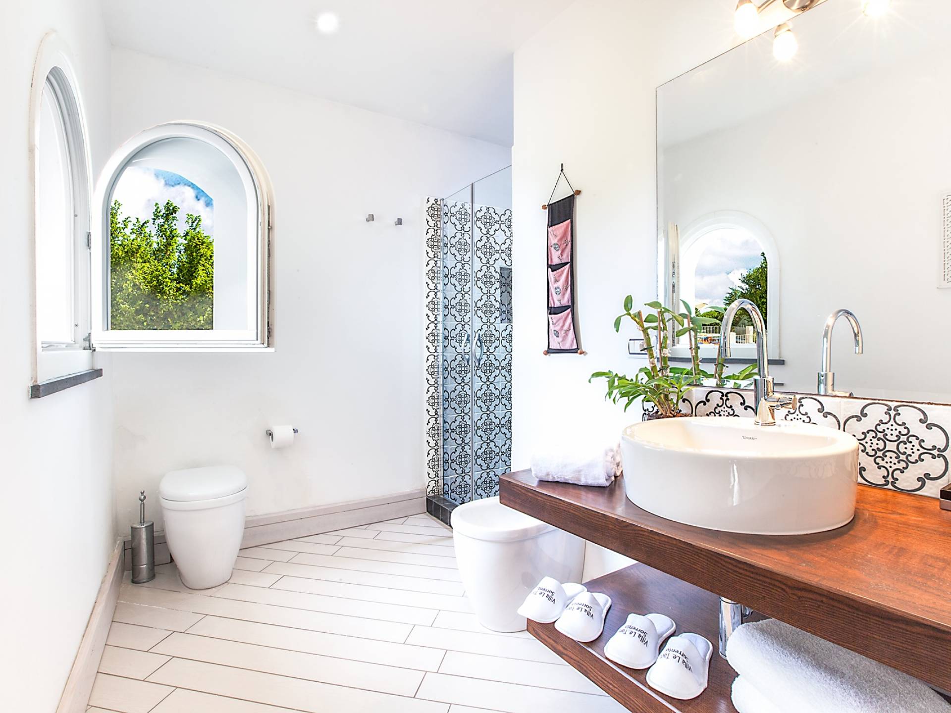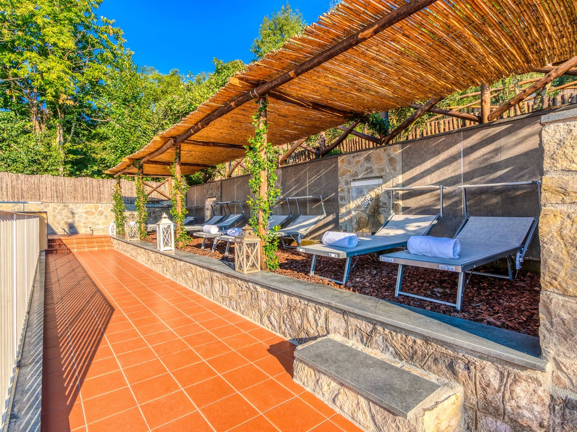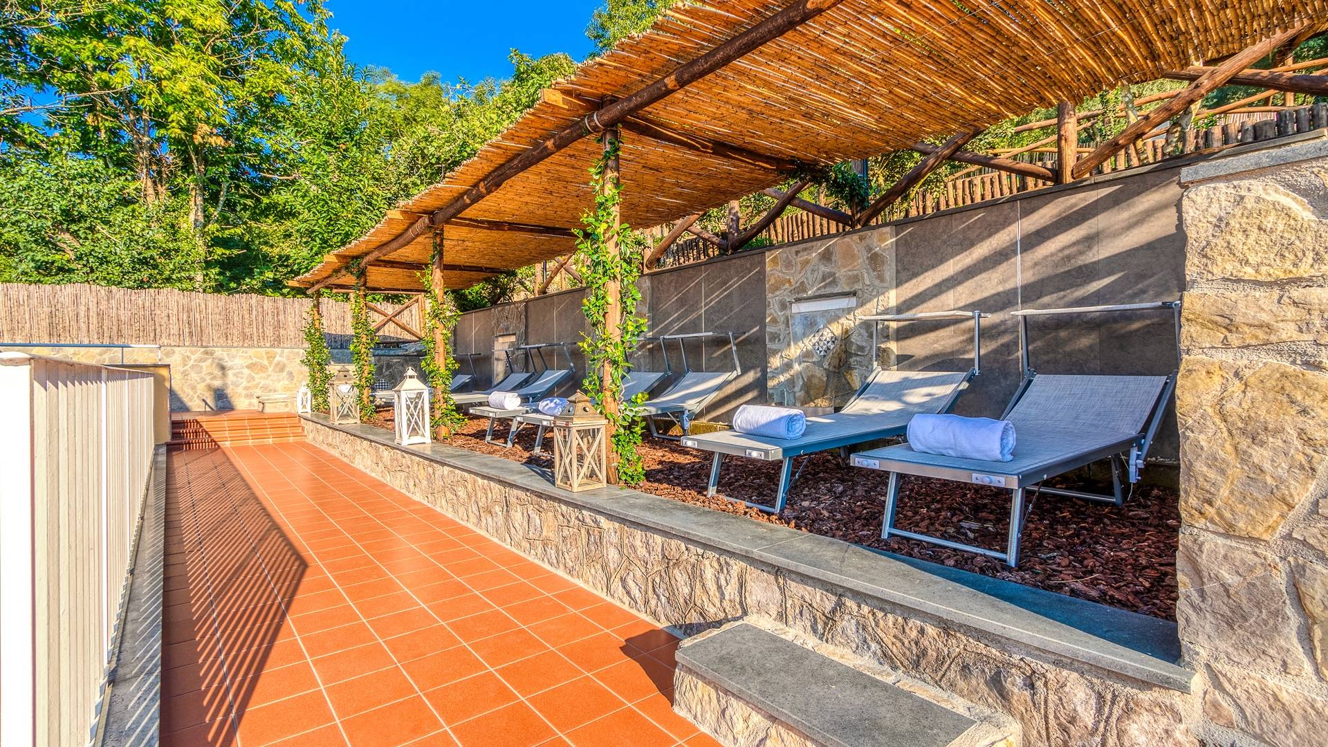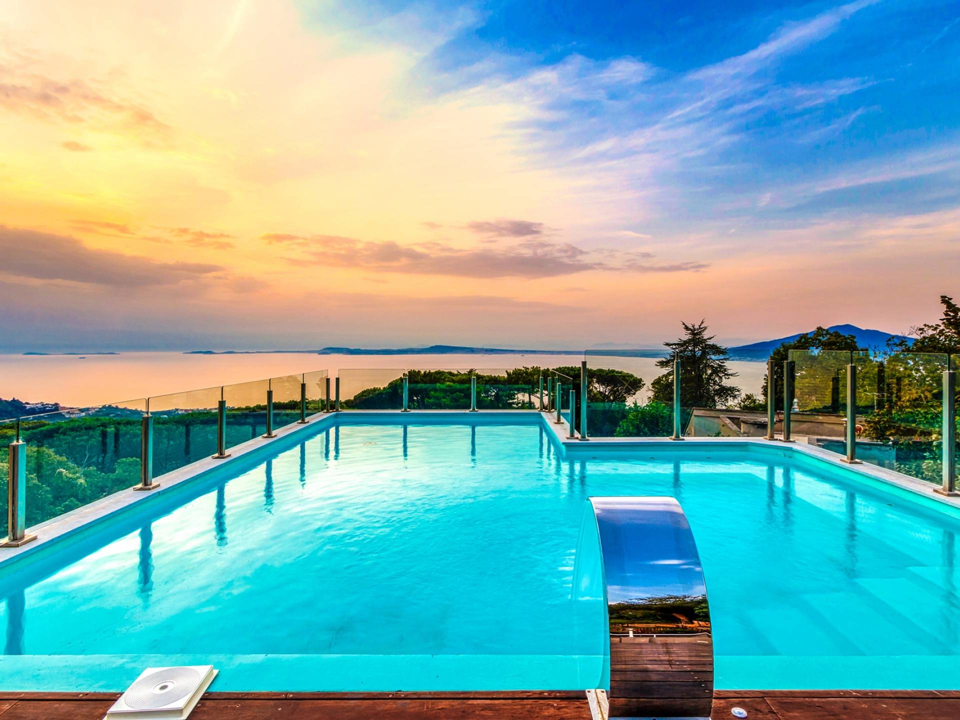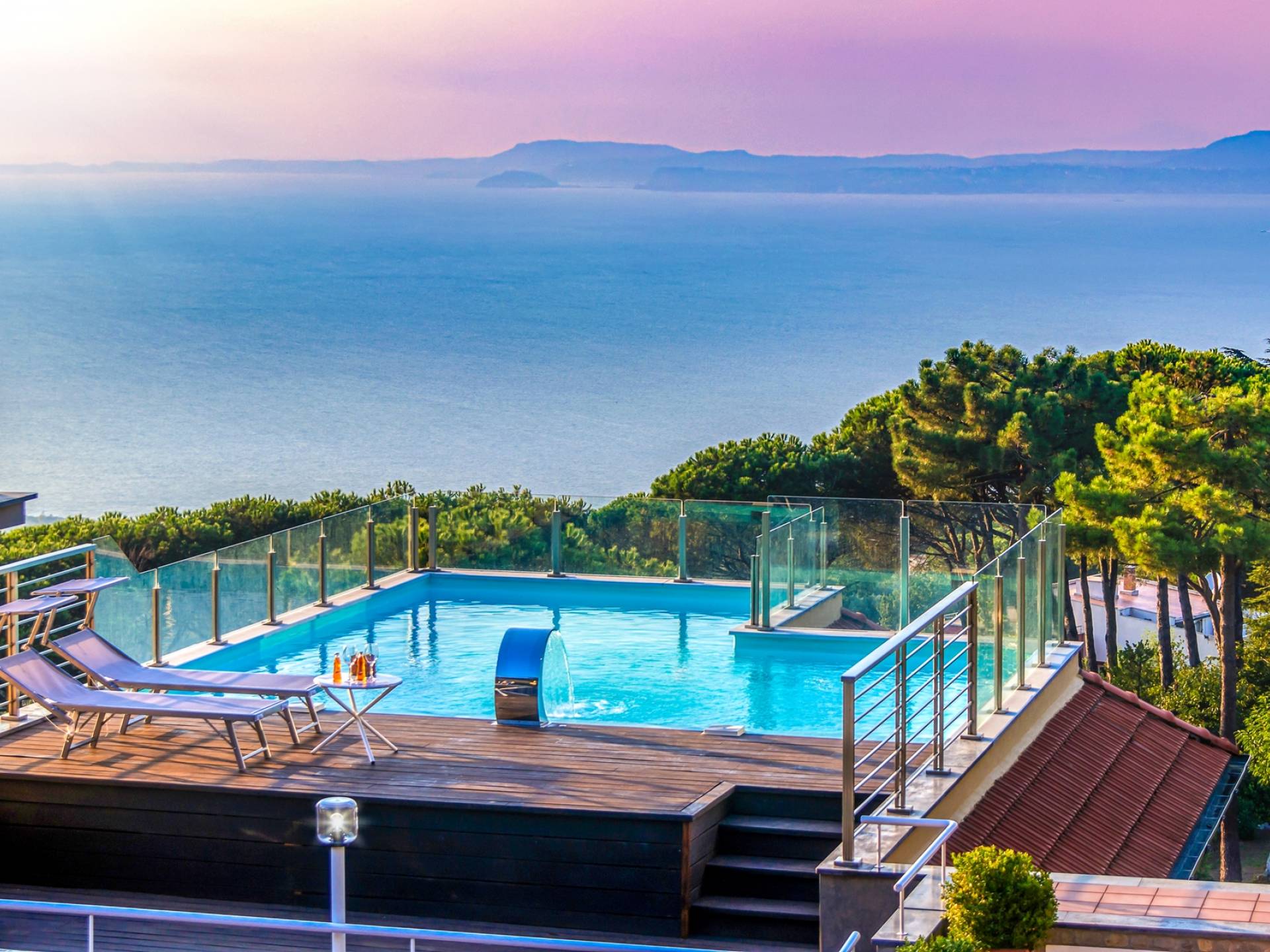 La villa está amueblada con las comodidades más modernas: bañera de hidromasaje interior, ducha de cromoterapia, baño turco (sala de vapor) y, en el solarium de la terraza, una piscina privada (6 mx 7 m) desde donde puedes disfrutar del encantador panorama a 180 °.