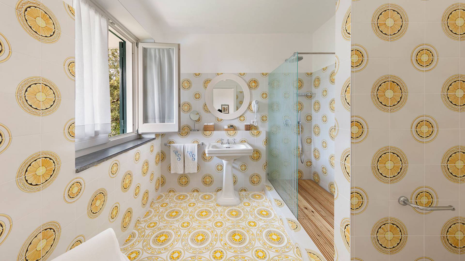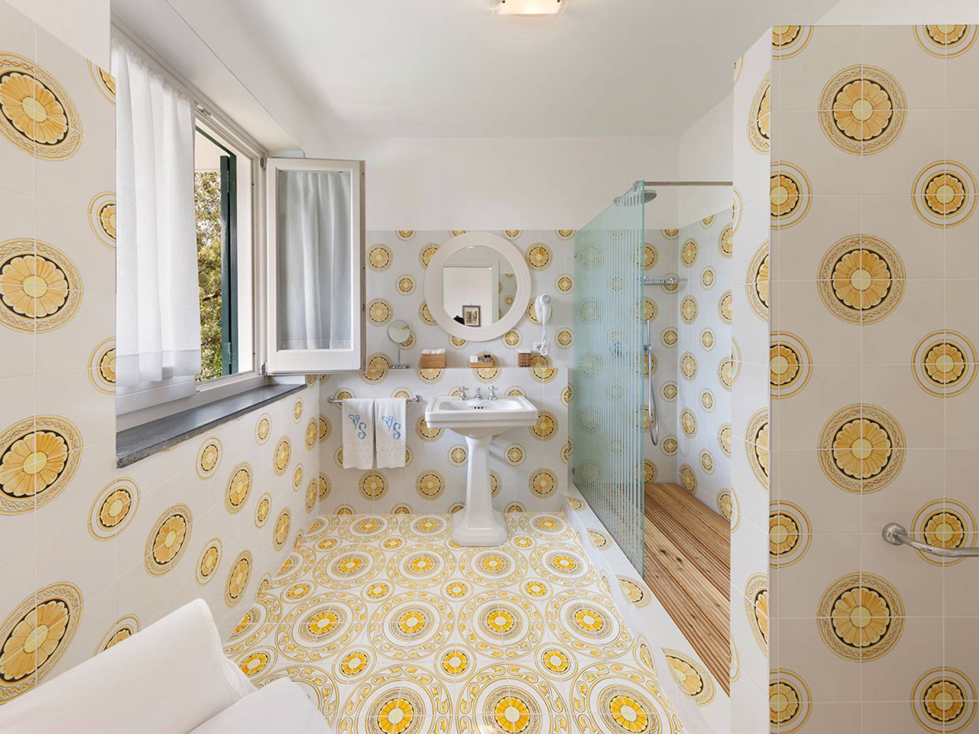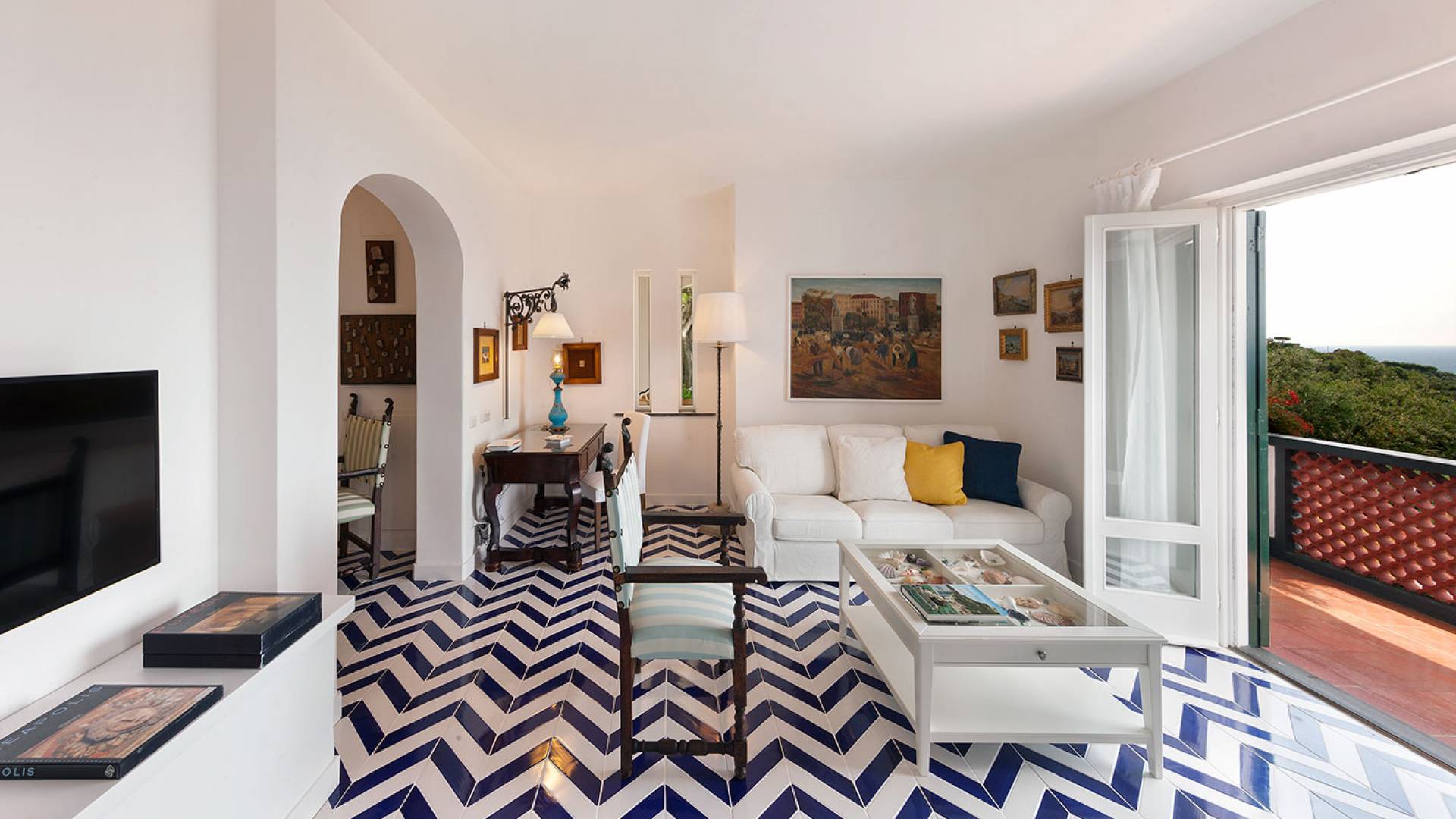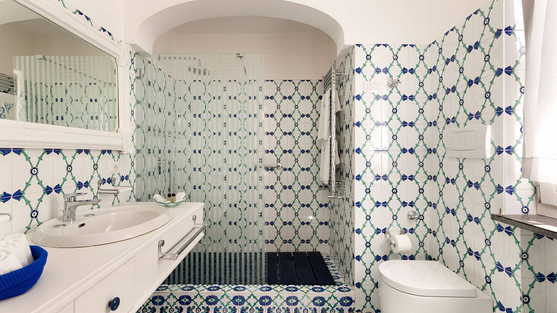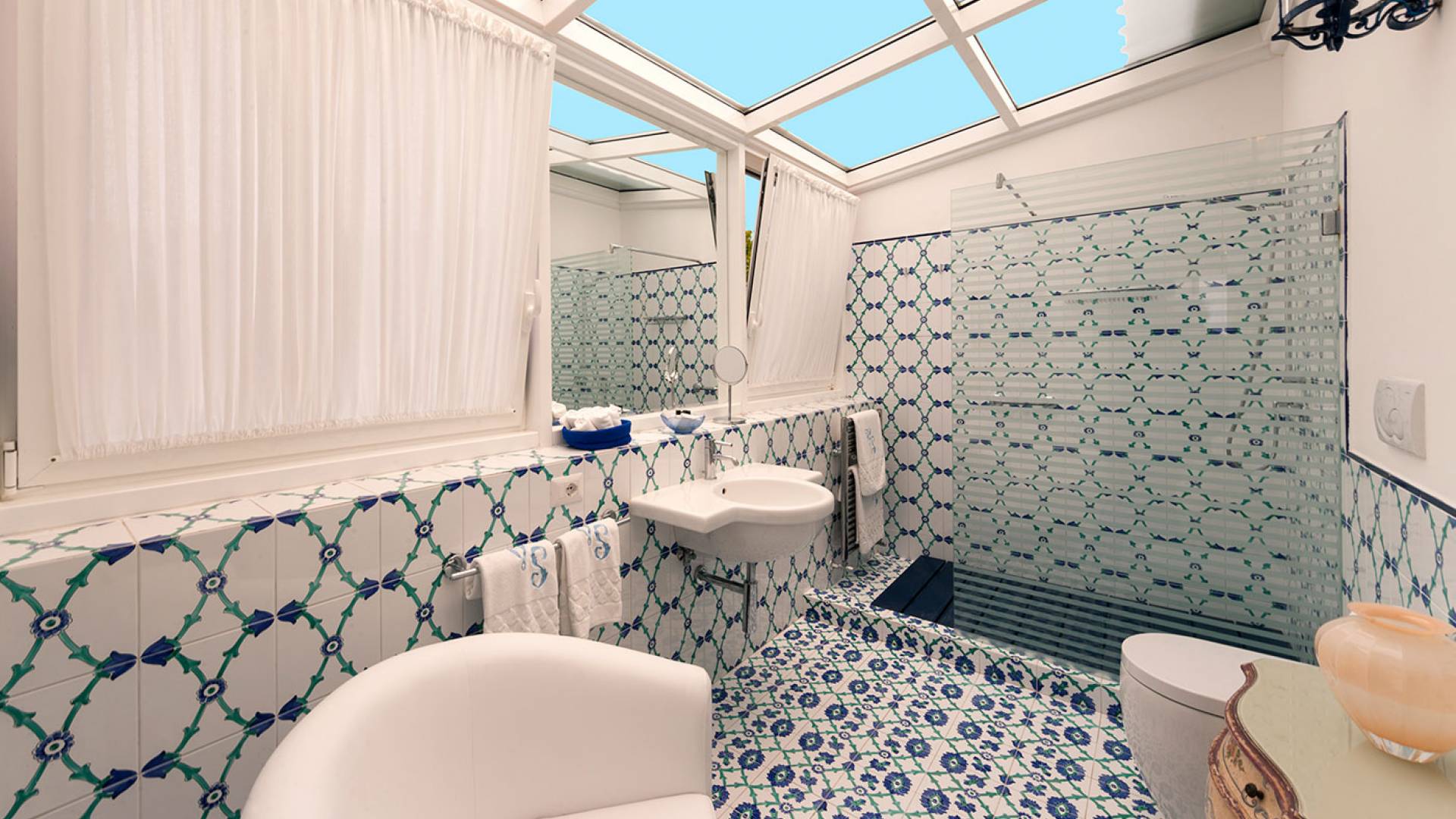 El segundo dormitorio también se encuentra en el último piso y tiene una cama doble (160 cm / 62 pulgadas, más ancha que una cama tamaño queen), baño privado y terraza. El tercer dormitorio también está en el piso superior, con dos camas dobles (120 cm / 47 pulgadas) y una terraza con vista al mar. Esta habitación no tiene baño privado, pero se encuentra en el pasillo. En la planta baja se encuentra el cuarto dormitorio, con una cama doble (160 cm / 62 pulgadas, más ancha que una cama queen), baño privado y terraza. El quinto dormitorio también se encuentra en la planta baja y tiene una cama doble (160 cm / 62 pulgadas, más ancha que una cama tamaño queen), baño privado y terraza. La ciudad de Sorrento está a solo 2 kilómetros de la Villa y a poca distancia de restaurantes, tiendas y la parada de autobús SITA para la costa de Amalfi.