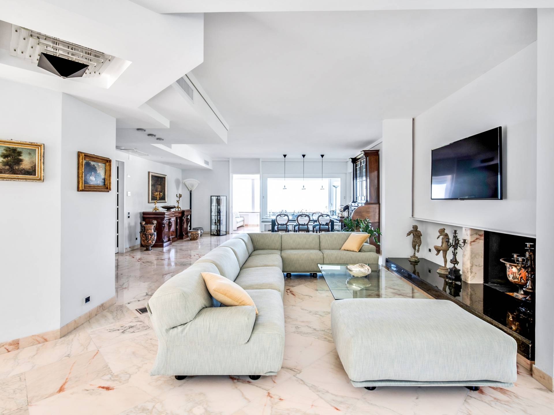 El edificio domina la costa y garantiza total privacidad y confidencialidad. Se accede a través de un jardín pavimentado con limoneros, pomelos, plátanos y palmeras. El aroma de la naturaleza y la brisa del mar lo relajarán hasta llegar a la puerta de entrada, cuya apertura será capturado por el piso de mármol rosa portugués y la elegancia única de una sala de estar con grandes ventanales, dos esquinas de sofá y dos mesas de cristal. .