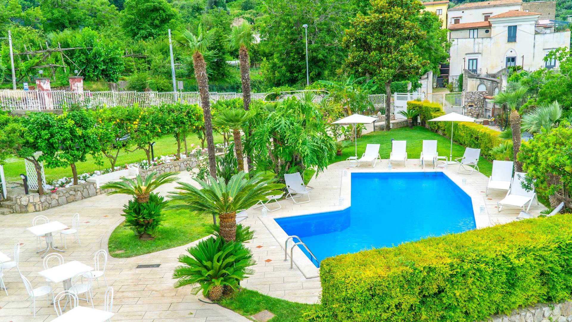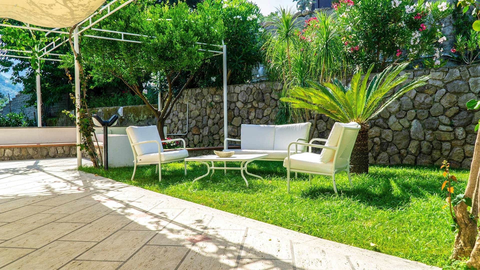 Desde la terraza, y desde casi todas las demás habitaciones de la planta baja, se puede acceder a los espacios exteriores de Villa Delle Grazie. Sumérjase en la hermosa piscina, de 9 metros de largo por 4 metros de ancho y 1,25 metros de profundidad, también apta para niños, o relájese en todo el entorno equipado con mesas, sillas, hamacas y tumbonas. Los espacios al aire libre, en el área de entrada de la casa, también ofrecen un agradable estacionamiento.