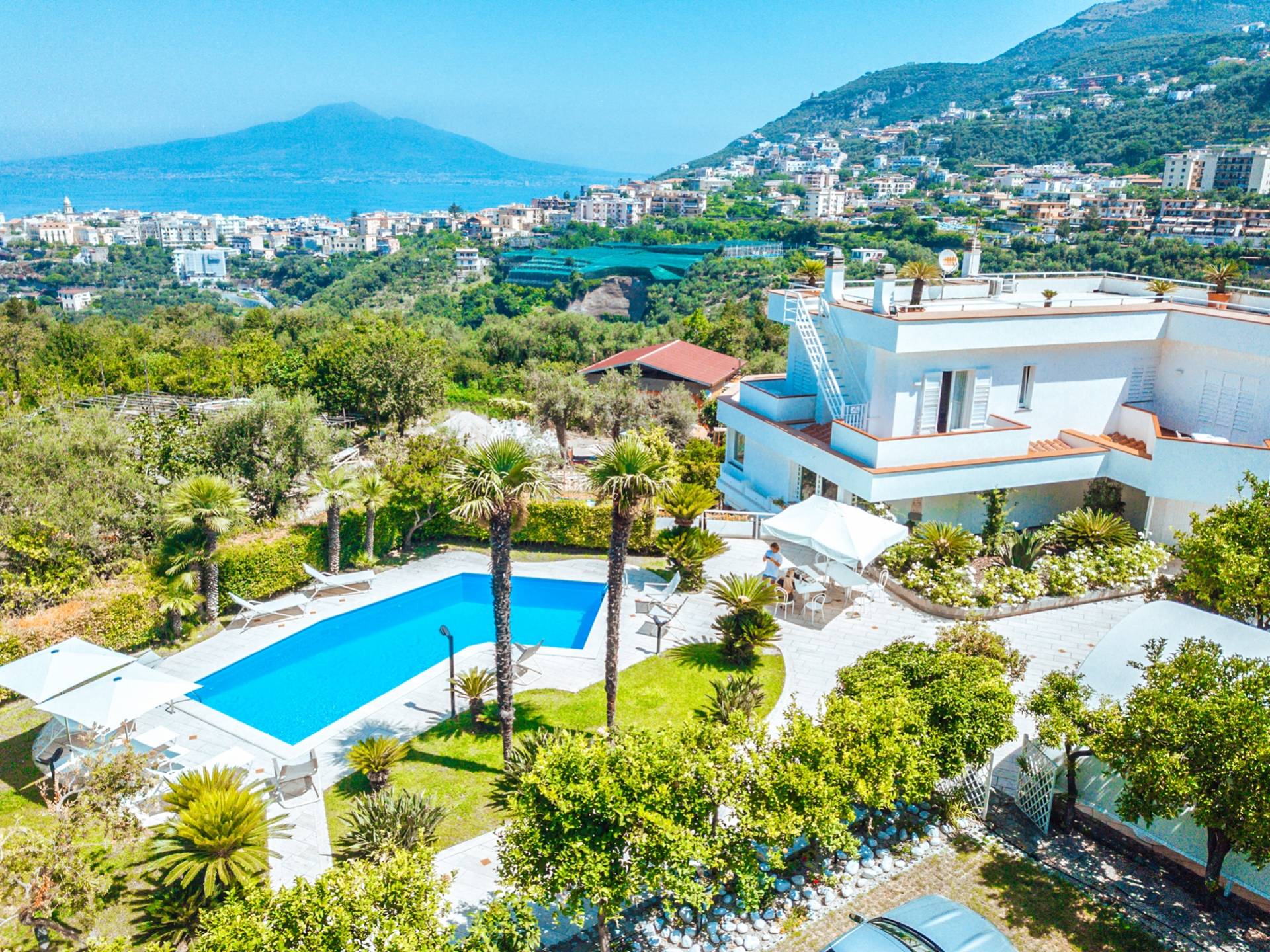 Villa Delle Grazie es un rincón del paraíso con vistas a la costa de Sorrento, rodeado de naturaleza y con una vista increíble del Golfo de Nápoles dominado por el Monte Vesubio, donde la hospitalidad es nuestra prioridad. La villa de dos pisos, con una superficie total de más de 350 metros cuadrados, garantiza espacios muy amplios y luminosos, que pueden albergar hasta 10 personas en 4 habitaciones.