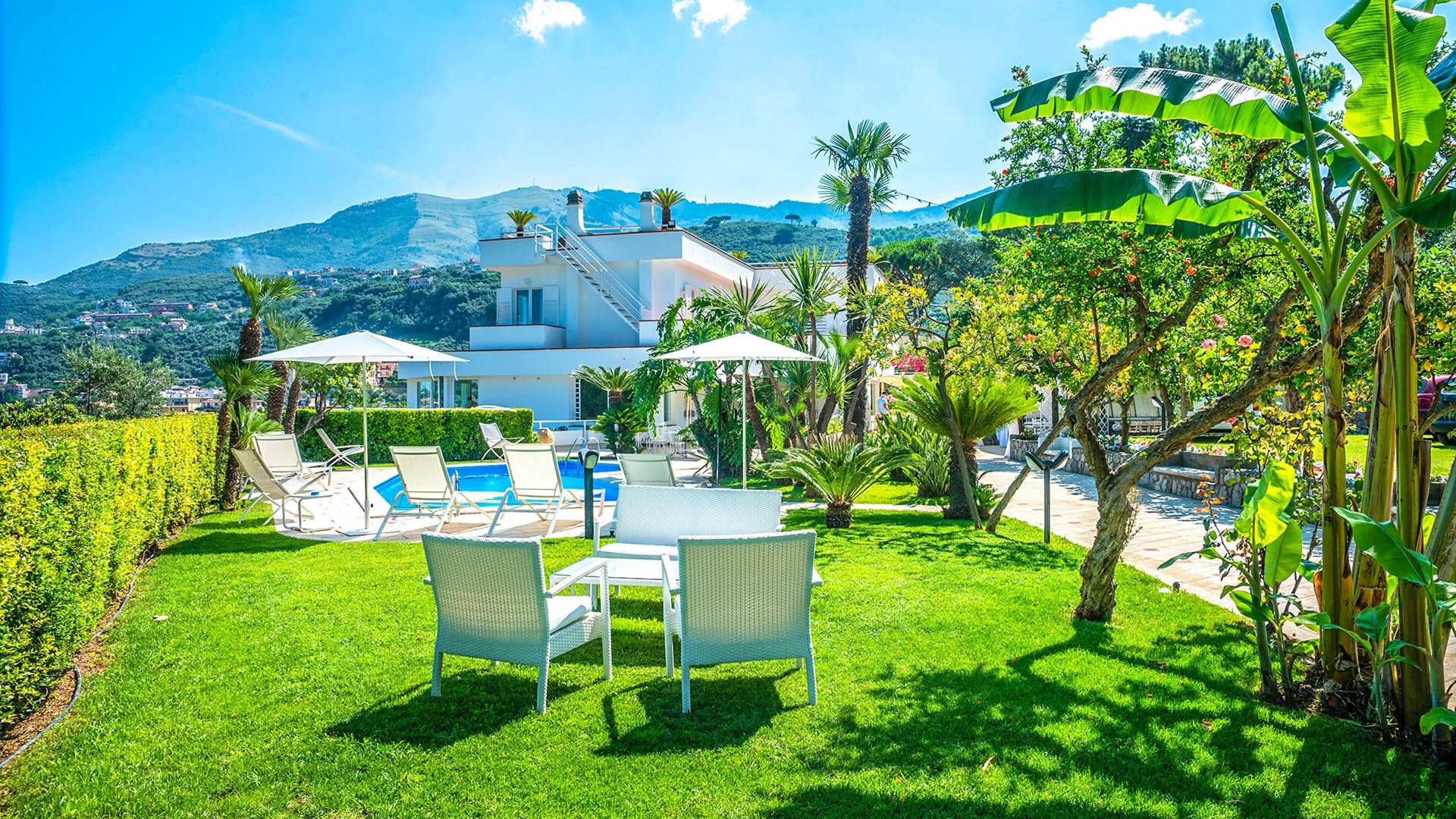 Villa Delle Grazie tiene una posición estratégica: Sorrento está a solo 15 minutos, Positano 25. Puede caminar hasta la estación Circumvesuviana de Seiano y en pocos minutos llegará a Pompeya, Herculano, Nápoles. Vico Equense está a 1,5 km y se puede llegar tanto a pie como en transporte público. A menos de un kilómetro encontrará Marina di Seiano con muchos lidos, tanto gratuitos como privados, restaurantes de pescado fresco, pizzerías y discotecas.
