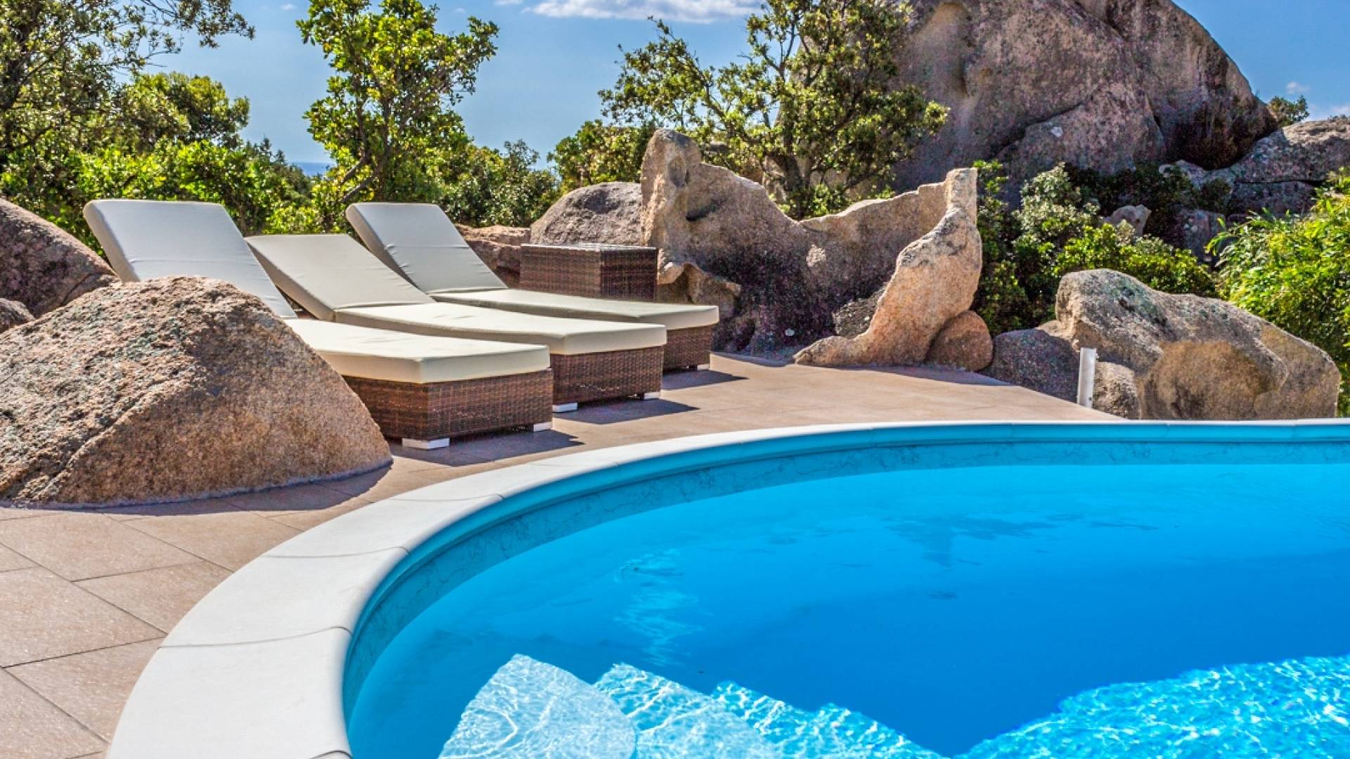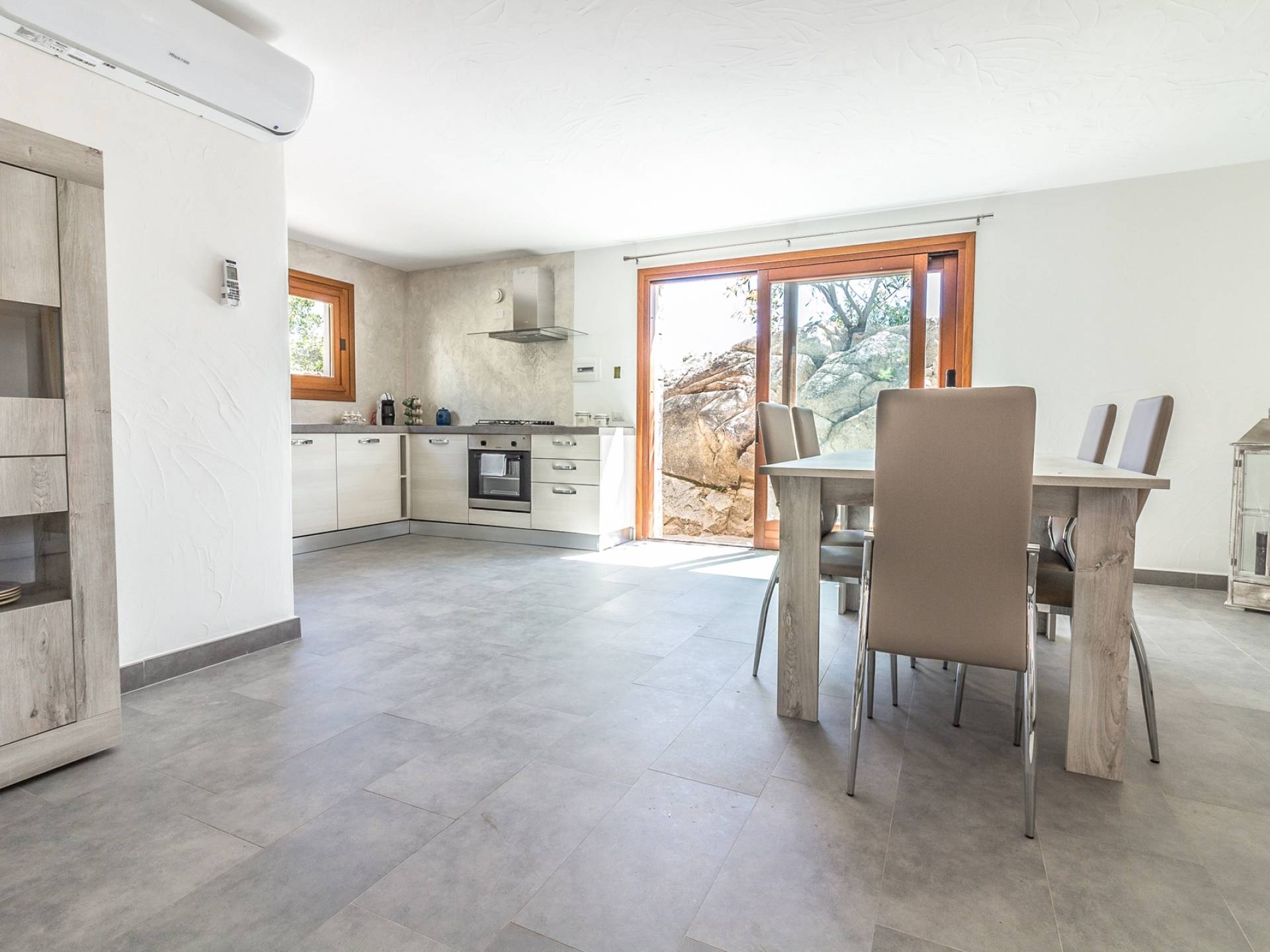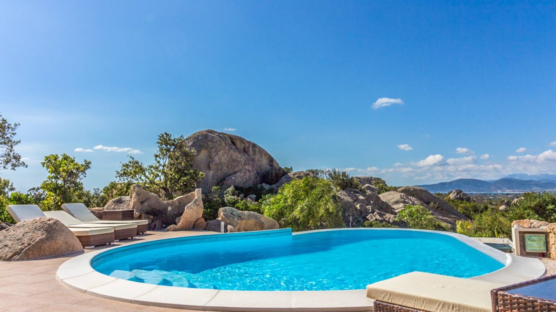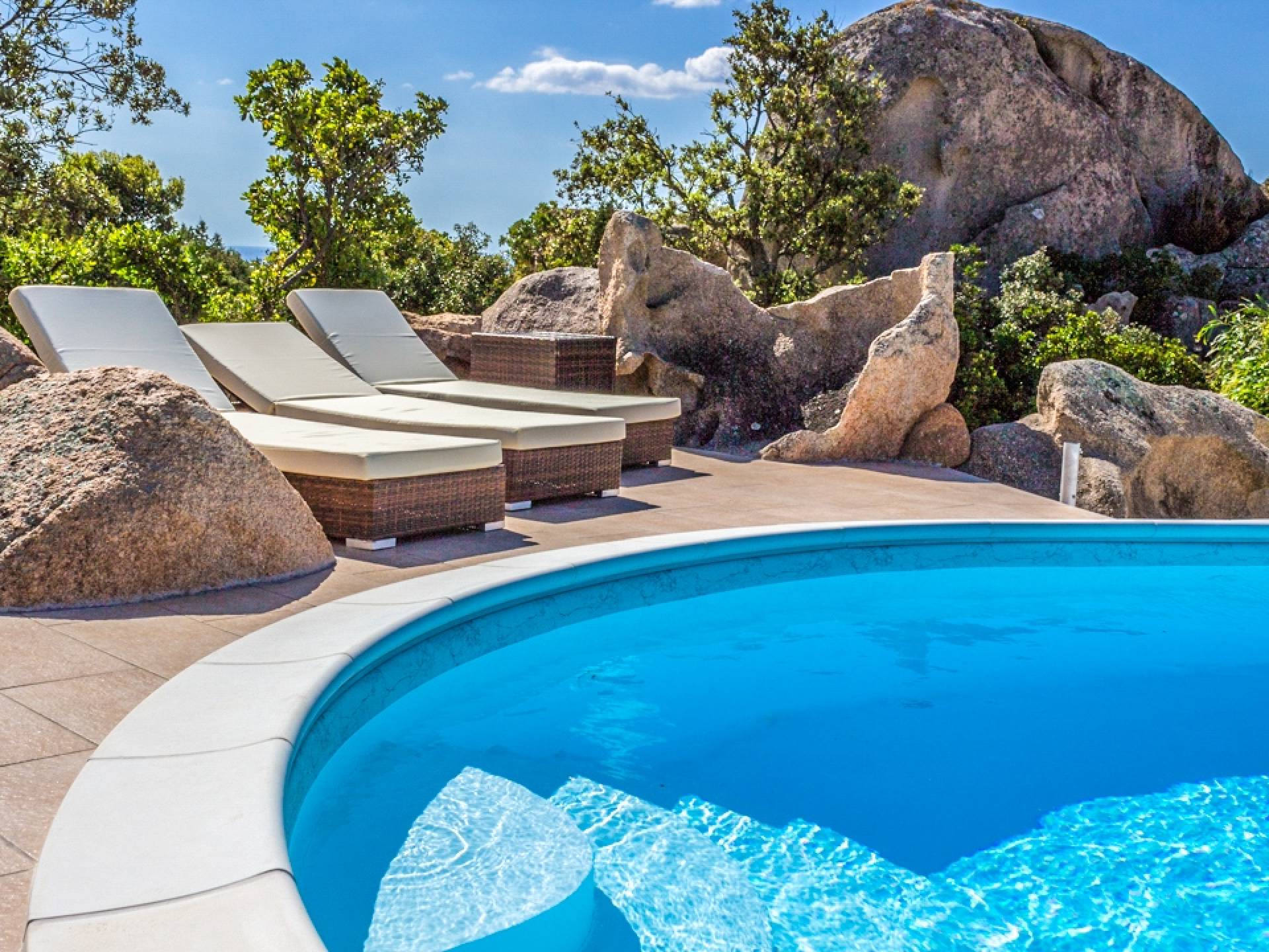Rodeado por los cuatro lados por una propiedad de casi 2 hectáreas con rocas de granito moldeadas por el viento, cuenta con un verde jardín con plantas mediterráneas y una piscina exterior con solárium de madera donde se colocan varias tumbonas. También afuera hay un jacuzzi ubicado en una esquina del jardín donde llegarán los aromas del matorral mediterráneo por todos lados, ducha, área de barbacoa y estacionamiento con 2 estacionamientos cubiertos.