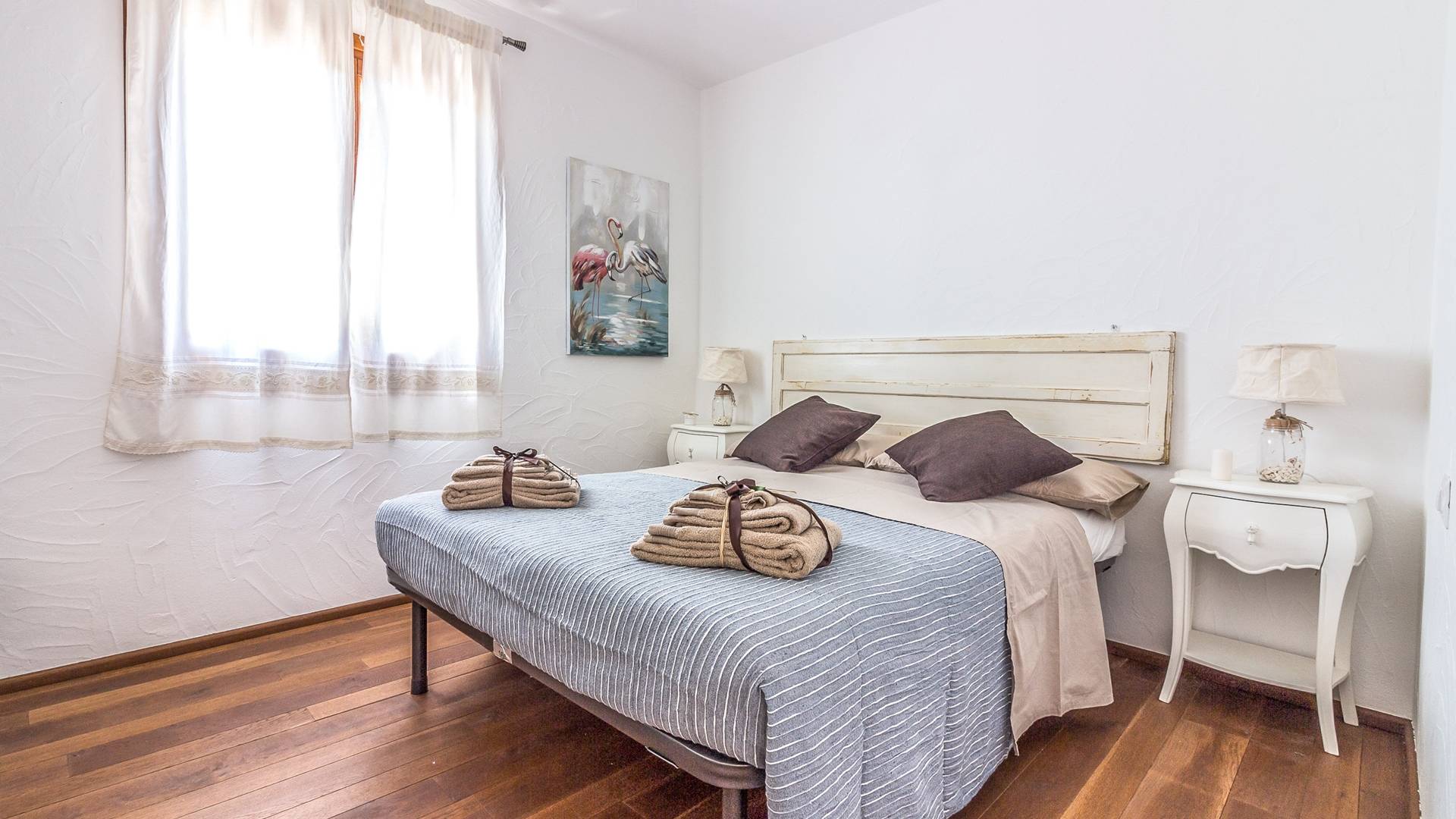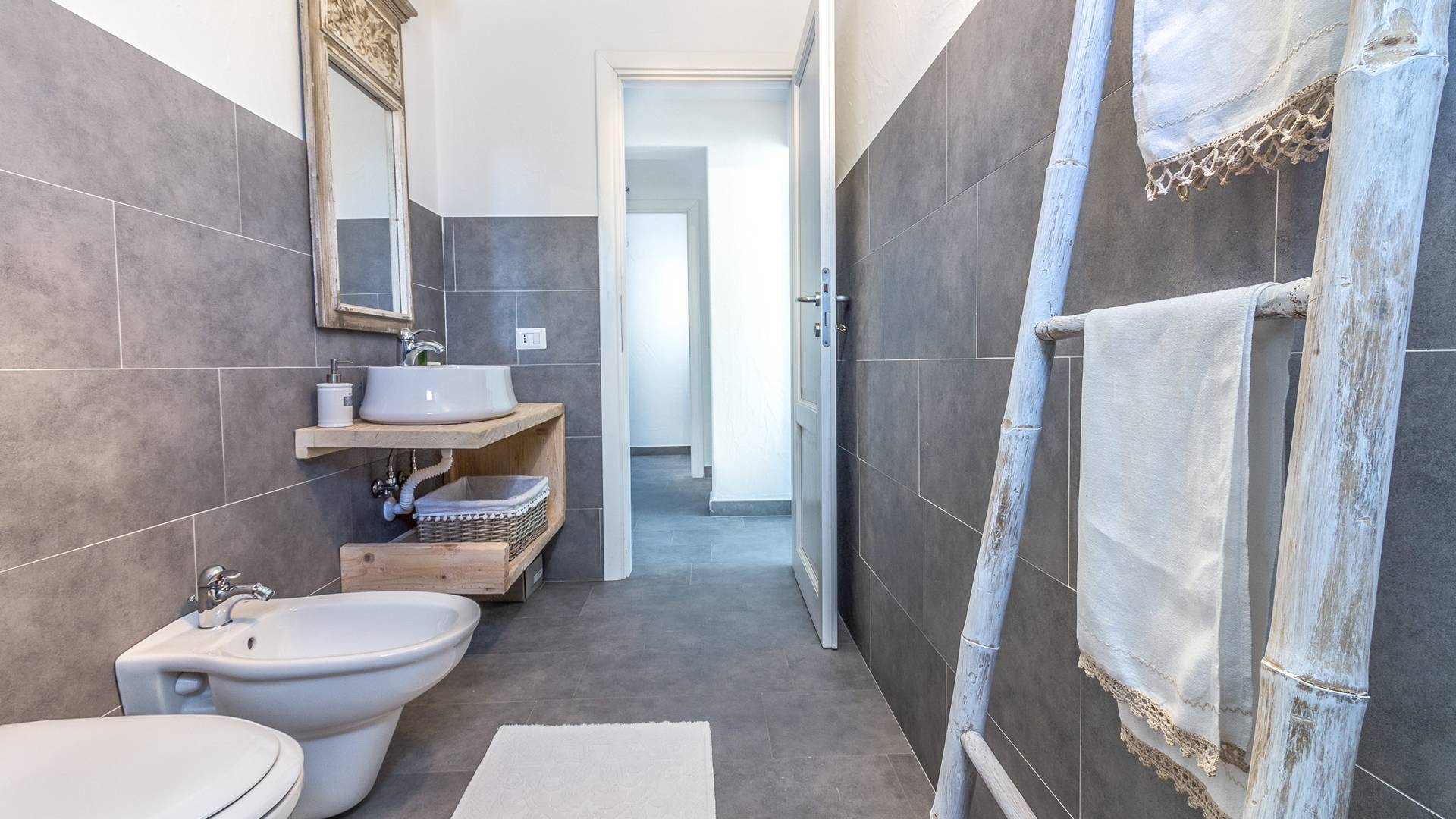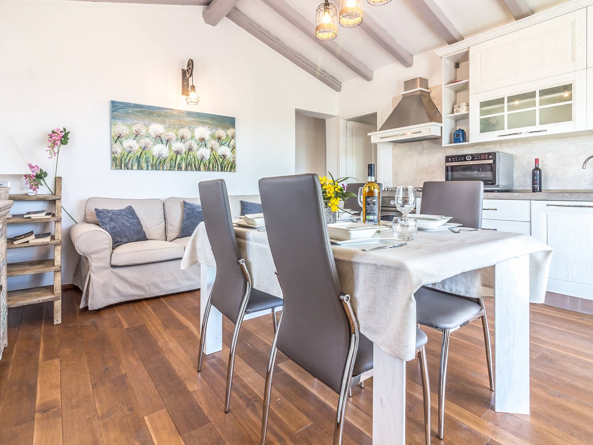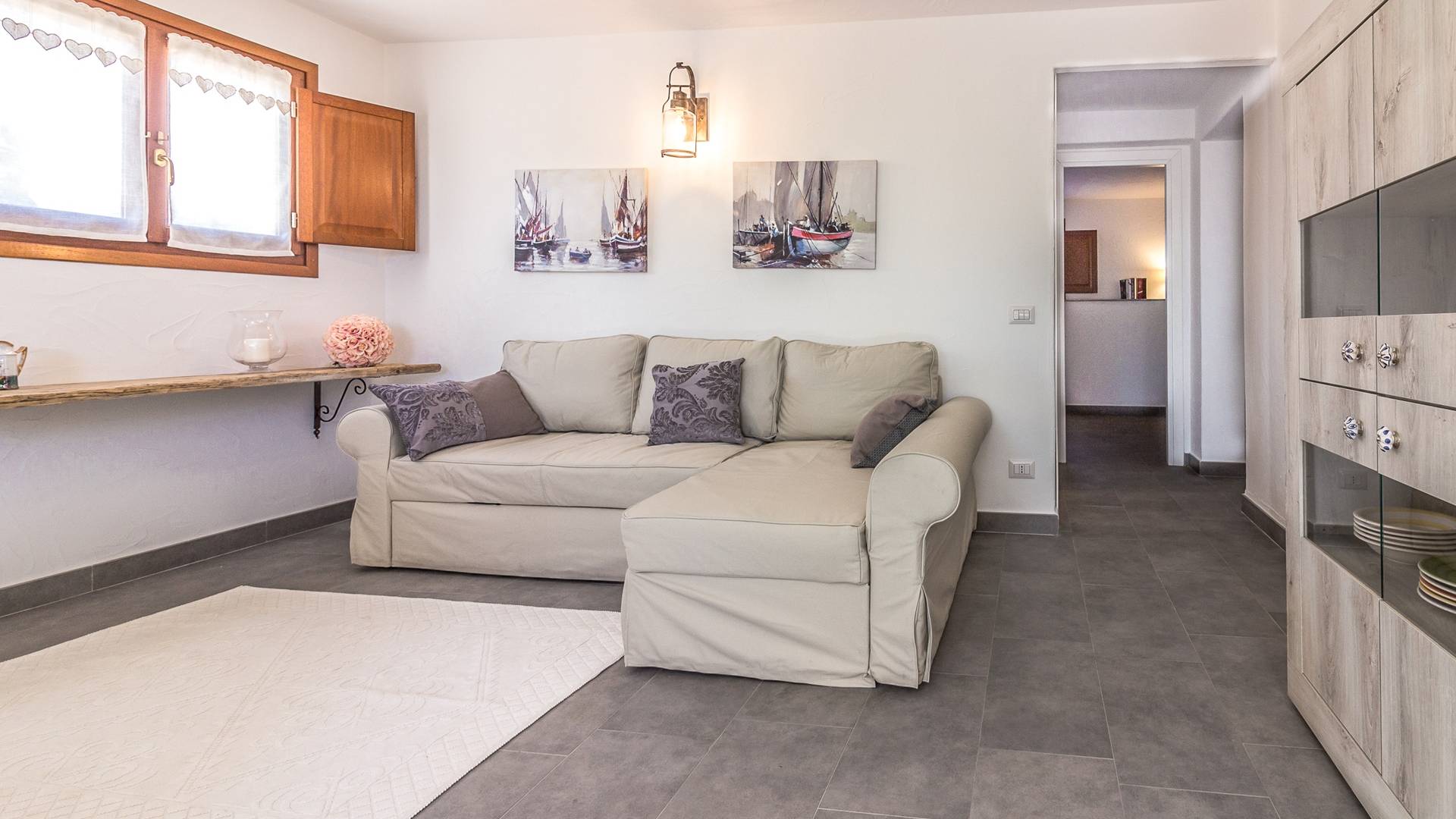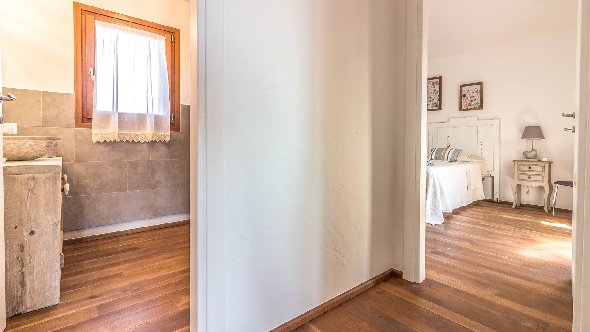 El gran patio exterior de la casa es espacioso y multifuncional con una gran mesa para cenar al aire libre pero también una zona de relax con sofás, sillones y chaise longues. La Villa también es muy acogedora por dentro. La sala de estar en el primer piso, con vigas y cerchas a la vista, es una joya de lujo y encanto. Los suelos de parqué oscuro y las paredes blancas son un matrimonio de elegancia en un espacio confortable adornado con muebles que recuerdan el encanto de la isla. La sala de estar en la planta baja también es particularmente luminosa y acogedora.