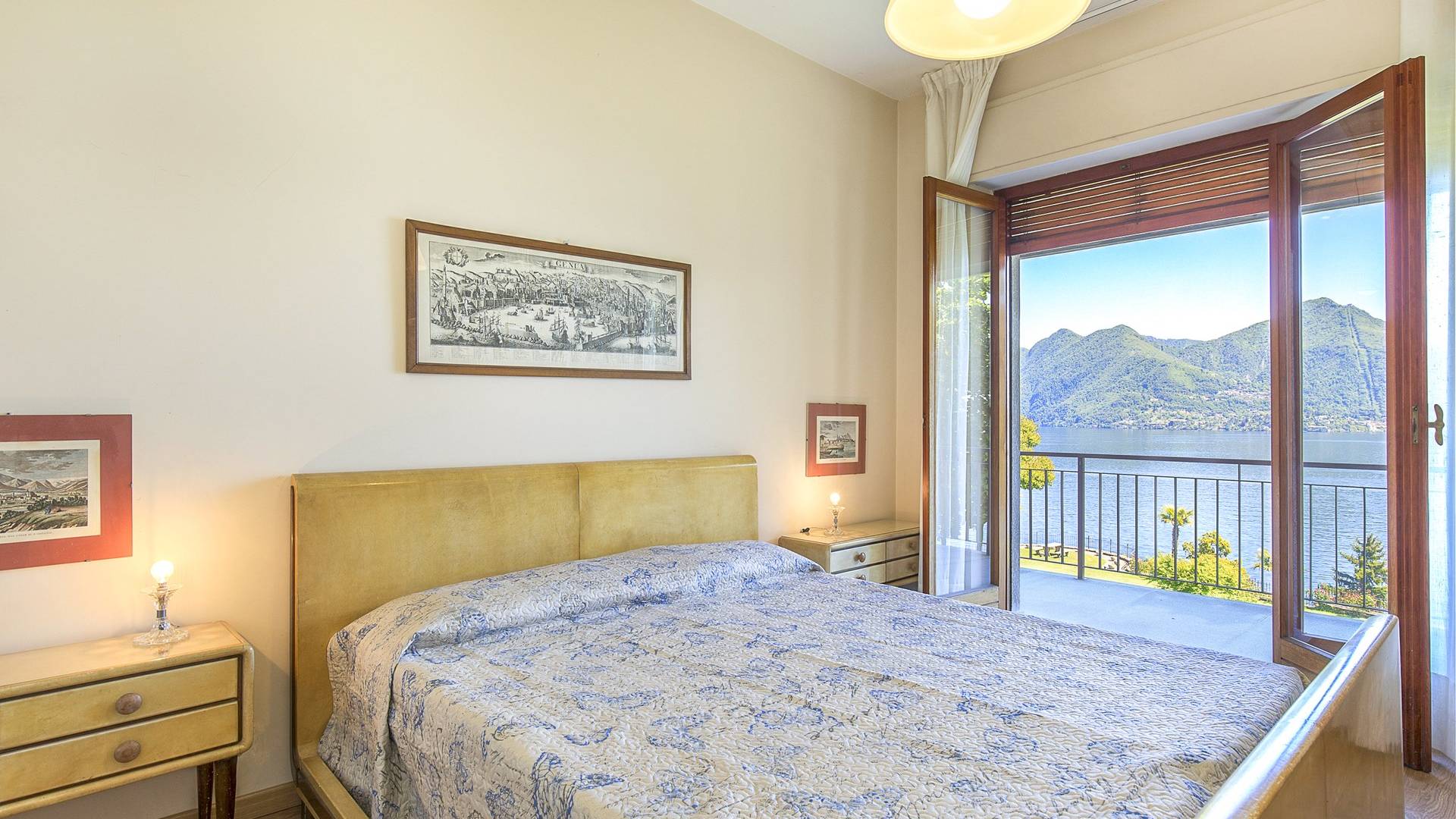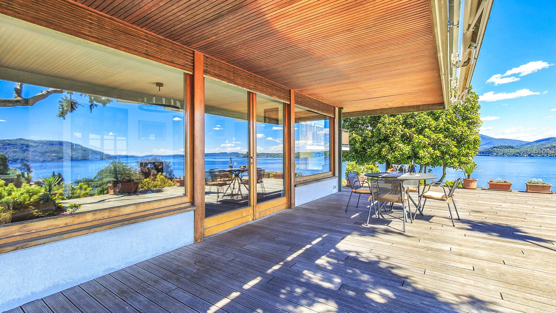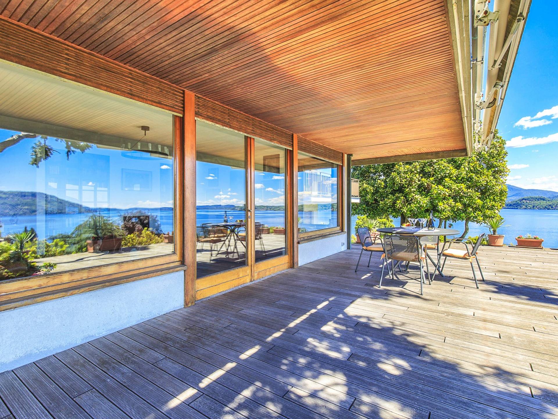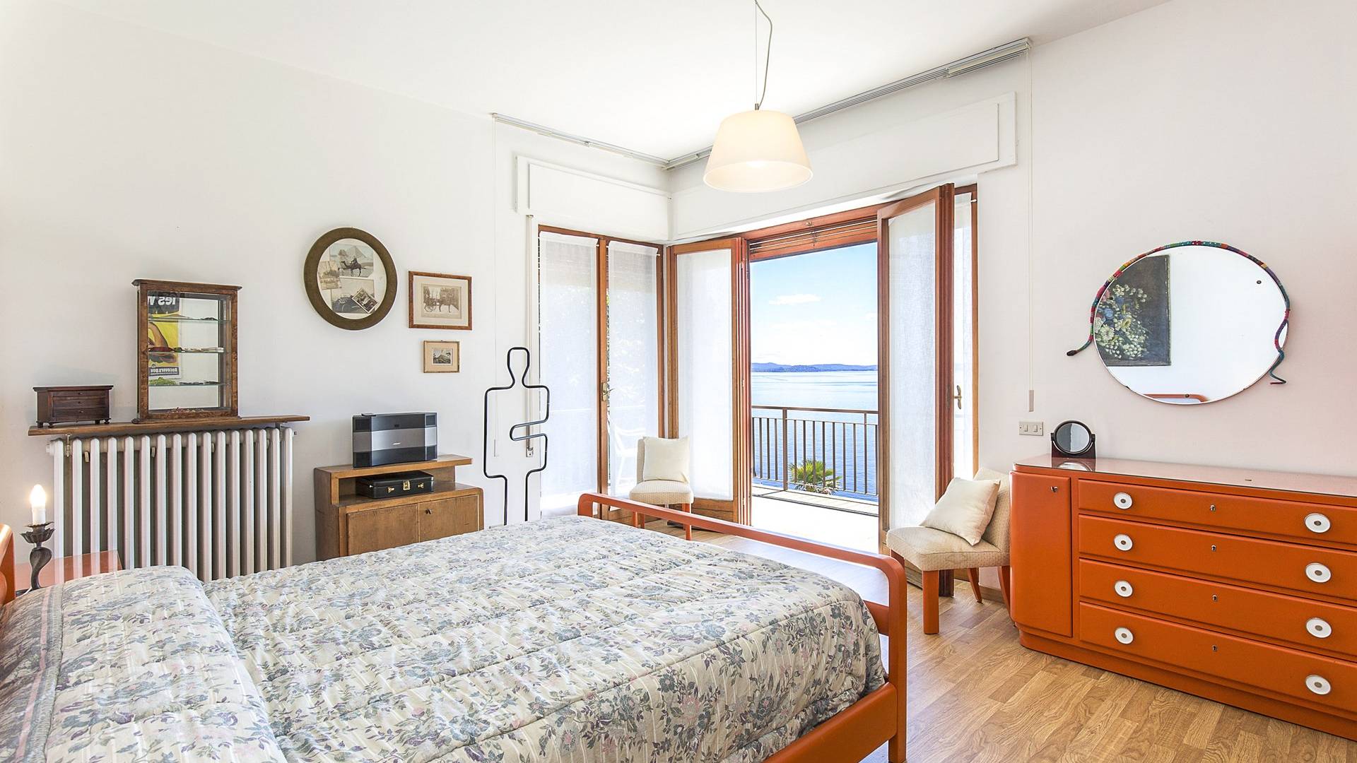 Subiendo 9 escalones se llega a la zona de noche con tres habitaciones dobles y dos baños (uno con bañera y otro con bañera de hidromasaje y mampara de ducha). Se puede añadir una cama supletoria plegable a uno de los dormitorios. Todos los dormitorios tienen acceso a un balcón compartido con vistas al jardín y al lago. La sala de estar se abre a una terraza cubierta que tiene un toldo retráctil y es perfecta para cenar al aire libre, tomar unos cócteles o simplemente charlar y relajarse mientras disfruta de las vistas del lago Maggiore. La villa se encuentra en un gran parque privado (8000 m²) con un césped muy bien cuidado, árboles frondosos, plantas con flores y arbustos.