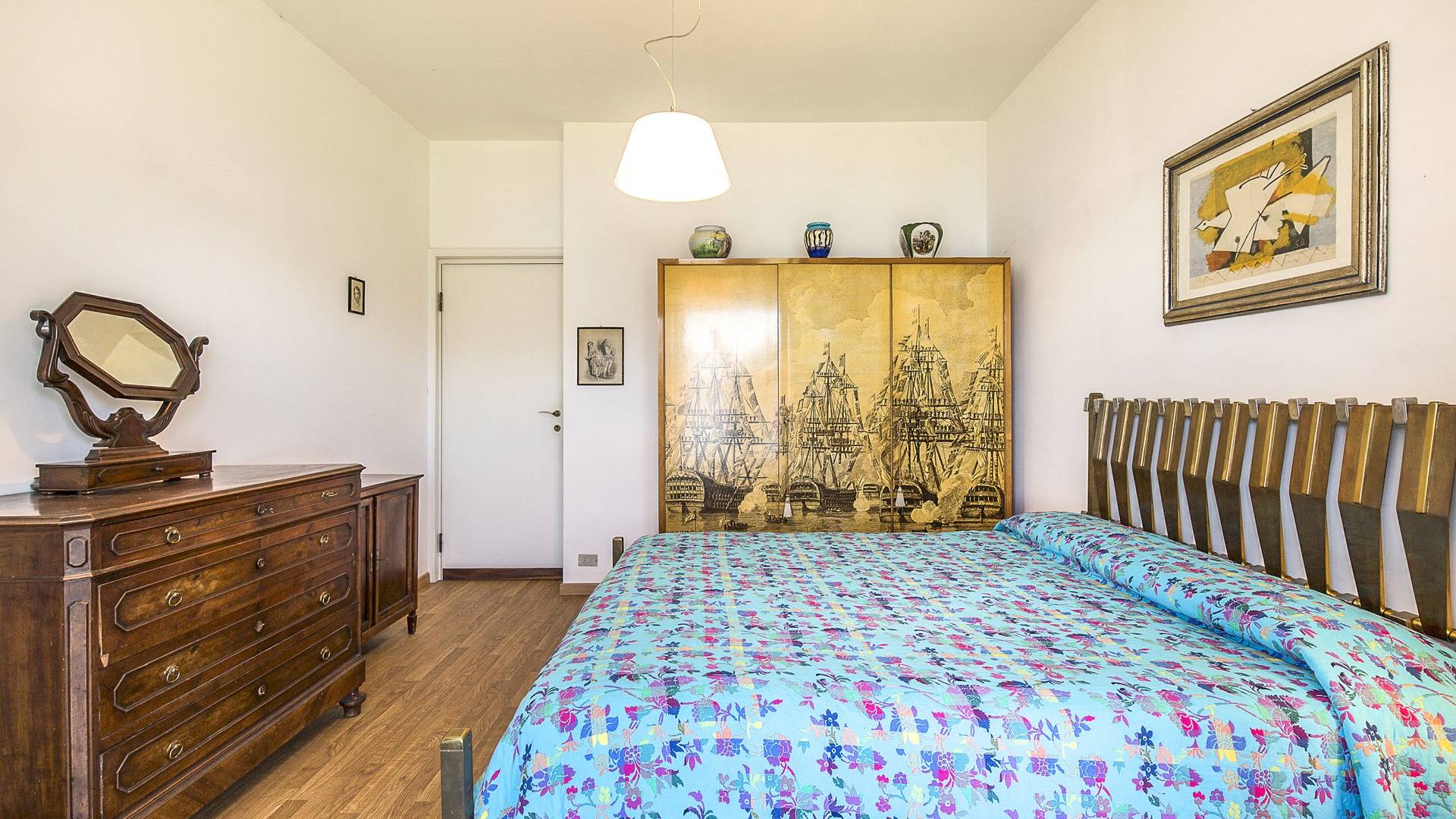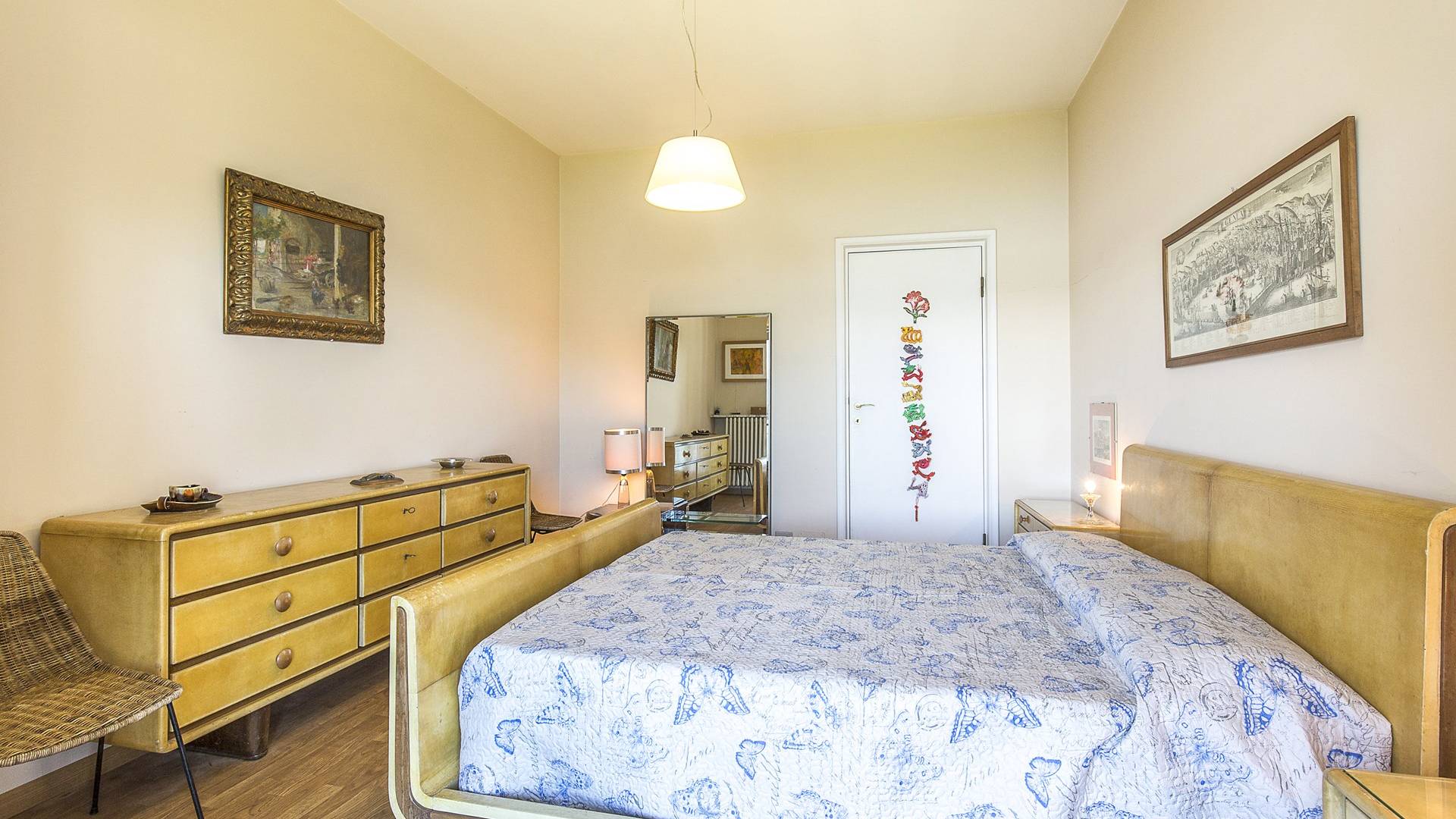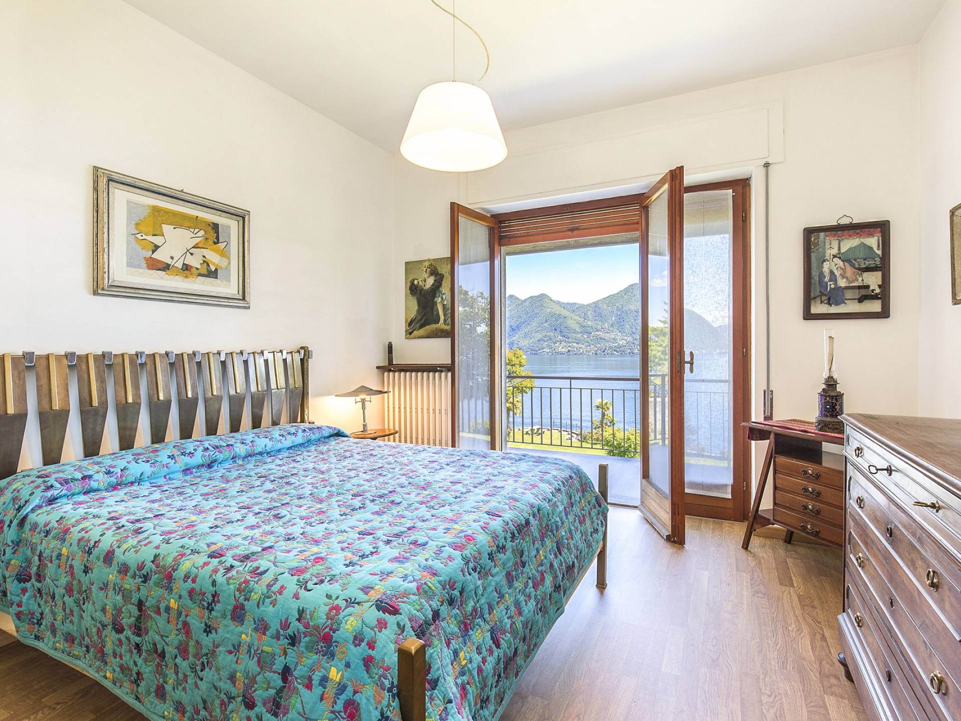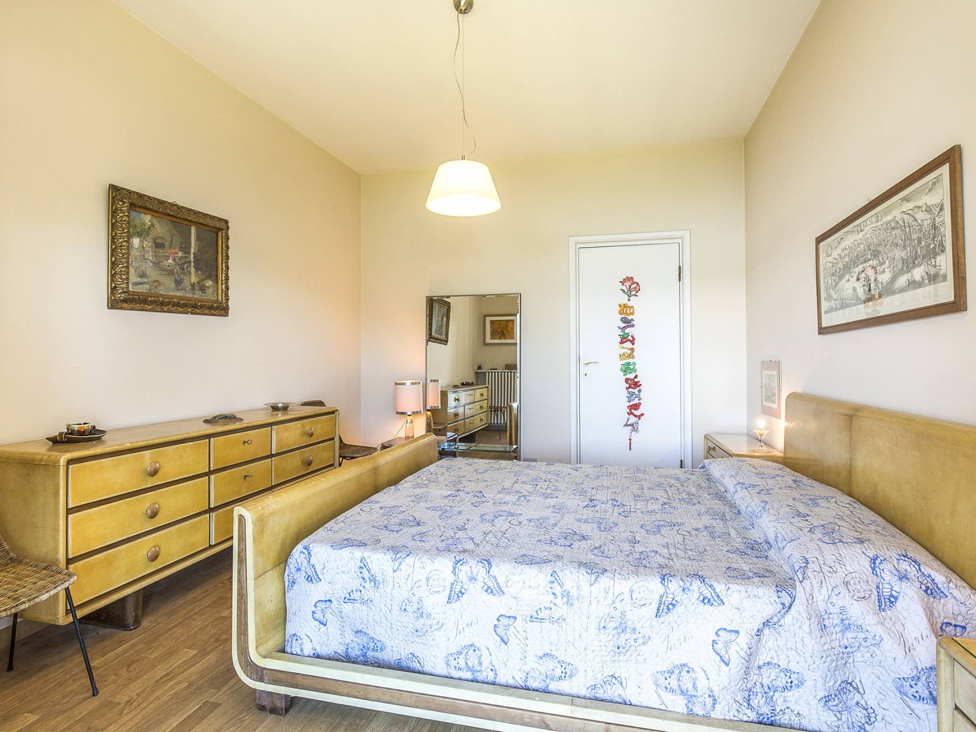 Subiendo 9 escalones se llega a la zona de noche con tres habitaciones dobles y dos baños (uno con bañera y otro con bañera de hidromasaje y mampara de ducha). Se puede añadir una cama supletoria plegable a uno de los dormitorios. Todos los dormitorios tienen acceso a un balcón compartido con vistas al jardín y al lago. La sala de estar se abre a una terraza cubierta que tiene un toldo retráctil y es perfecta para cenar al aire libre, tomar unos cócteles o simplemente charlar y relajarse mientras disfruta de las vistas del lago Maggiore. La villa se encuentra en un gran parque privado (8000 m²) con un césped muy bien cuidado, árboles frondosos, plantas con flores y arbustos.
