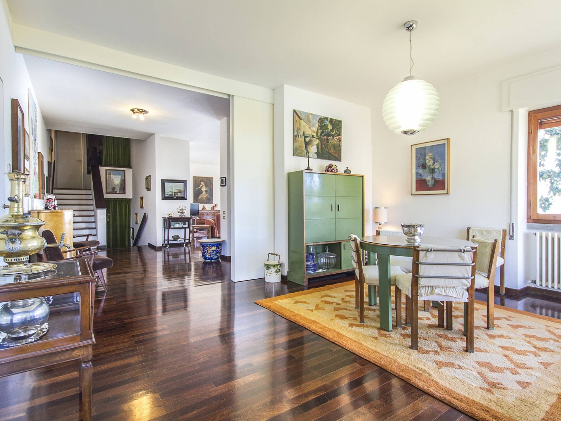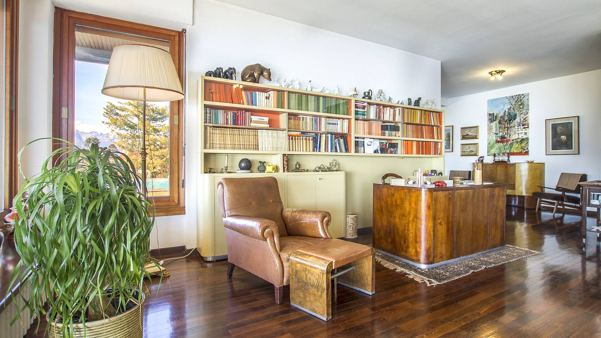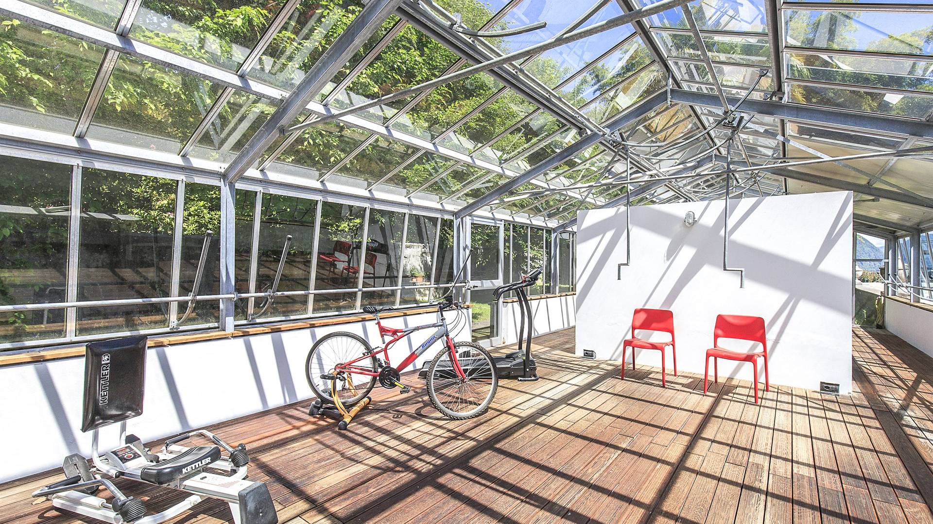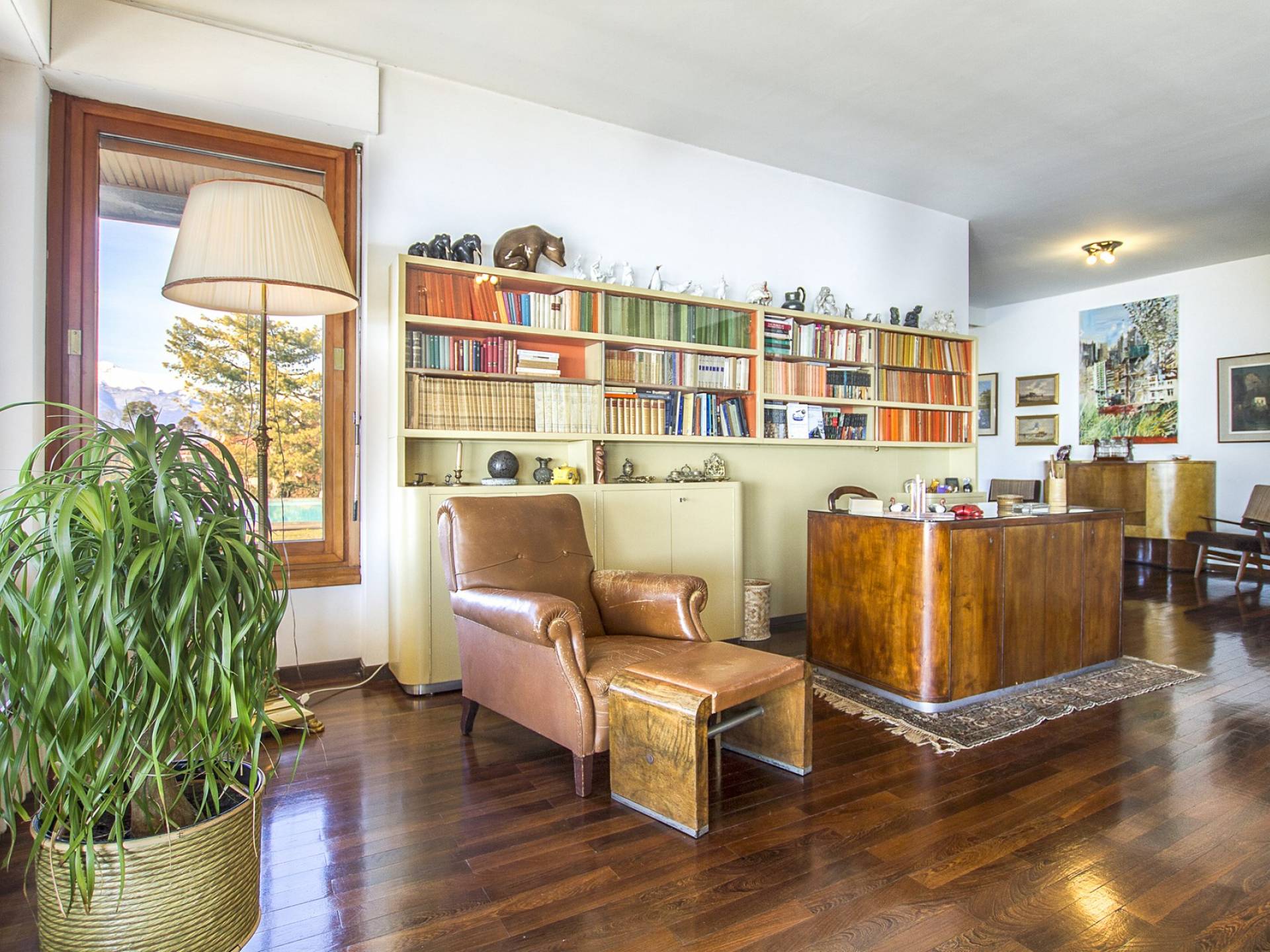 Subiendo 9 escalones se llega a la zona de noche con tres habitaciones dobles y dos baños (uno con bañera y otro con bañera de hidromasaje y mampara de ducha). Se puede añadir una cama supletoria plegable a uno de los dormitorios. Todos los dormitorios tienen acceso a un balcón compartido con vistas al jardín y al lago. La sala de estar se abre a una terraza cubierta que tiene un toldo retráctil y es perfecta para cenar al aire libre, tomar unos cócteles o simplemente charlar y relajarse mientras disfruta de las vistas del lago Maggiore. La villa se encuentra en un gran parque privado (8000 m²) con un césped muy bien cuidado, árboles frondosos, plantas con flores y arbustos.