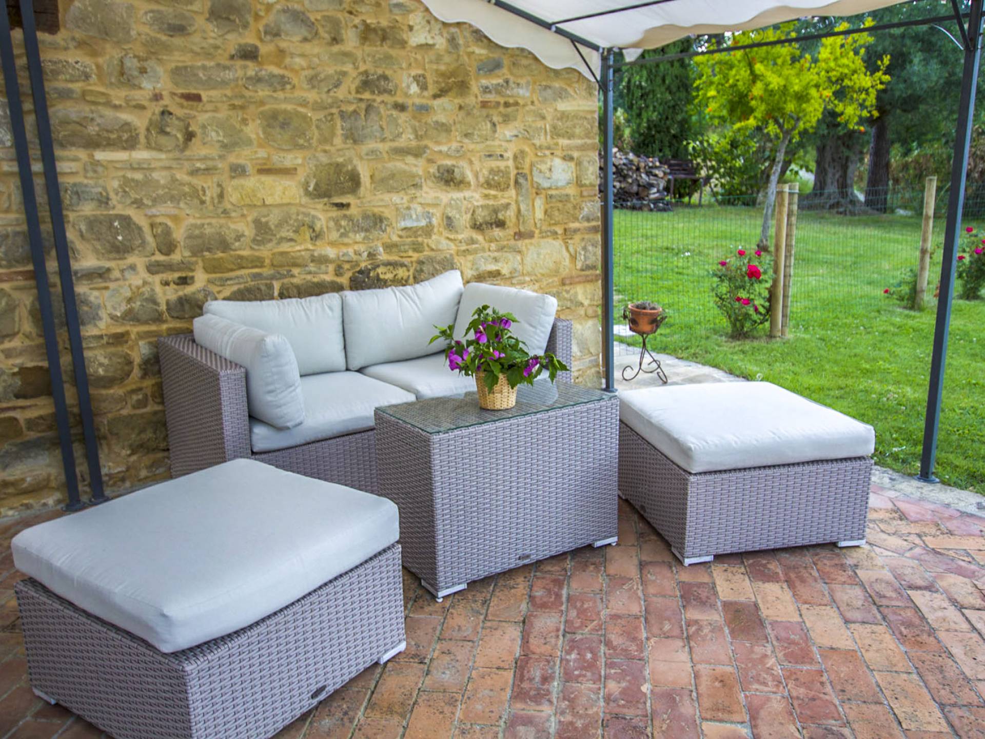 En el exterior de este maravilloso y acogedor lugar, en su amplio jardín, podrá relajarse en el solárium, disfrutar de la preciosa piscina completa con hidromasaje y utilizar la barbacoa para cenar bajo la pérgola.