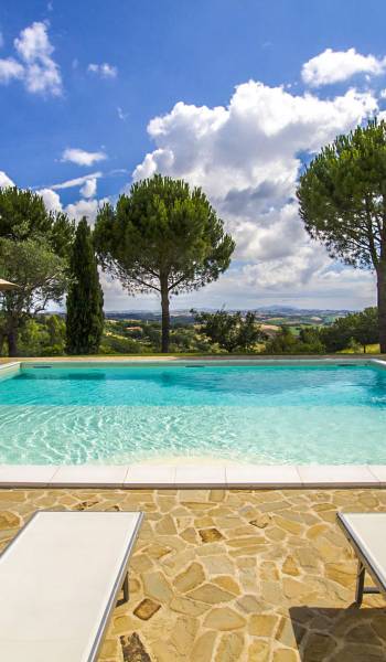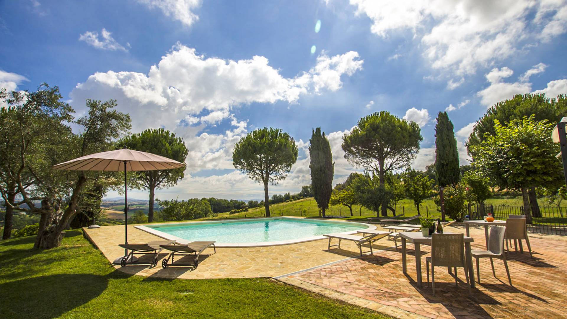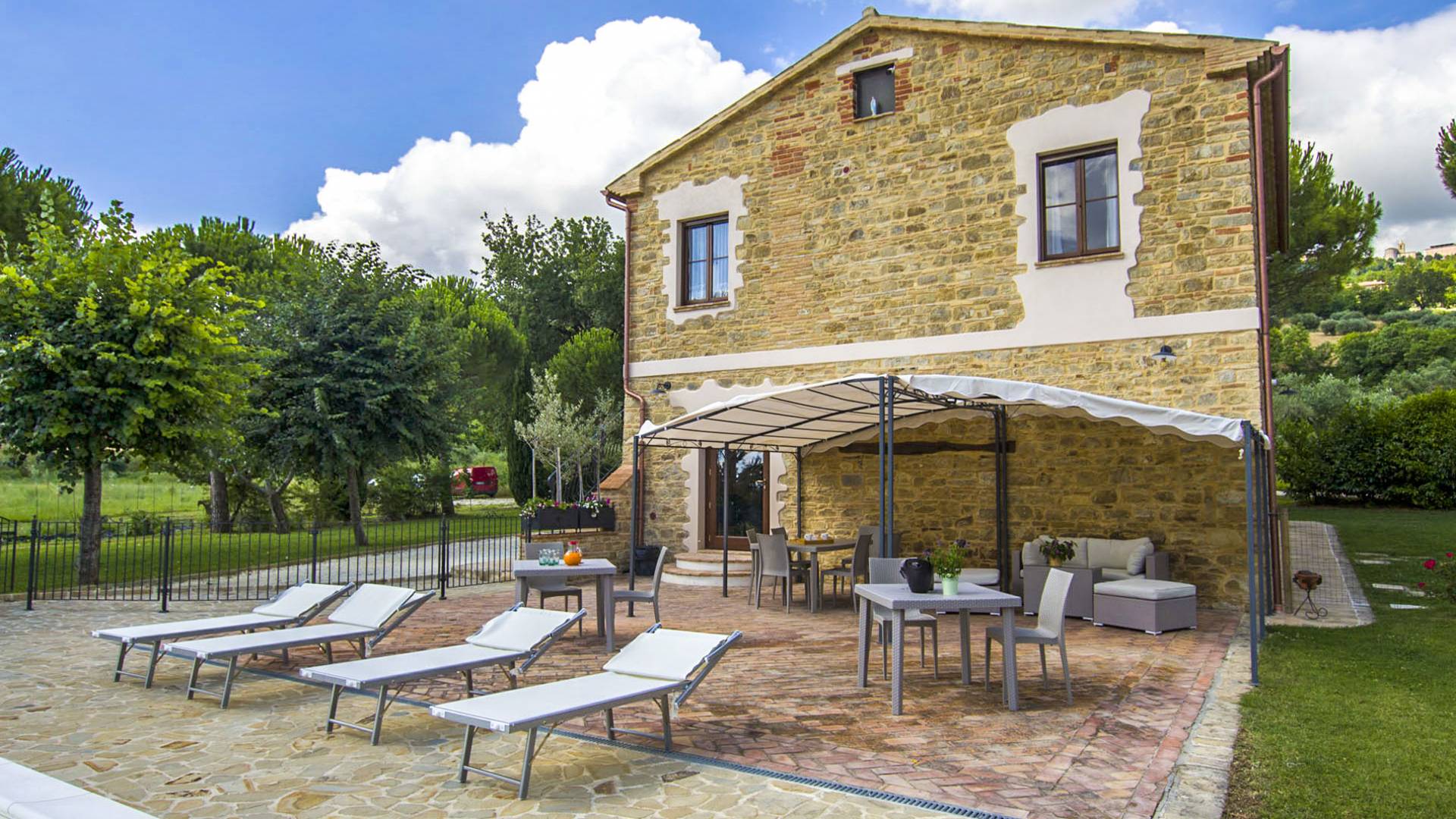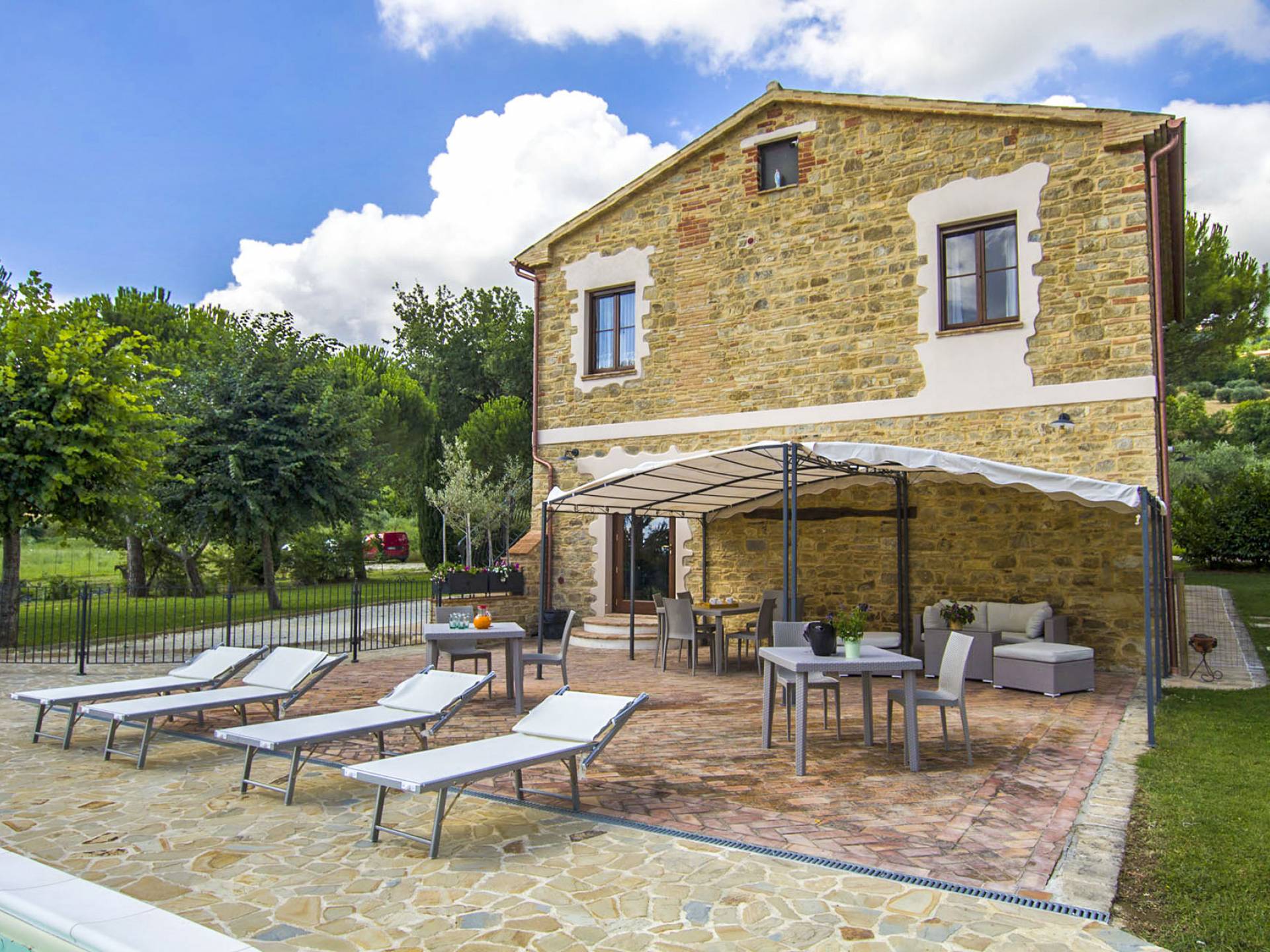 Villa Gioia The Marches es una villa de lujo en alquiler con 4 dormitorios y piscina privada. Villa Gioia ha sido restaurada en 2018 con la restauración de una casa de campo típica en el campo de Le Marche gracias al amor de los propietarios Lauro y Giusi por este lugar donde se puede respirar un aire de paz y serenidad, lejos del tráfico y con una vista del paisaje extraordinaria. que por un lado abraza las onduladas colinas de Le Marche dando una excelente vista al Monte Conero y por el otro tiene Cingoli, el "Balcón de las Marcas", como si lo vigilara.