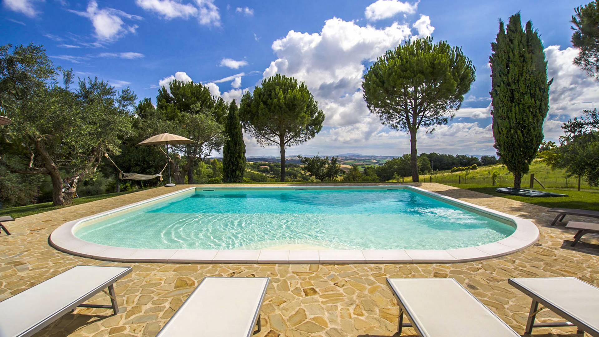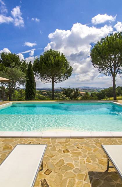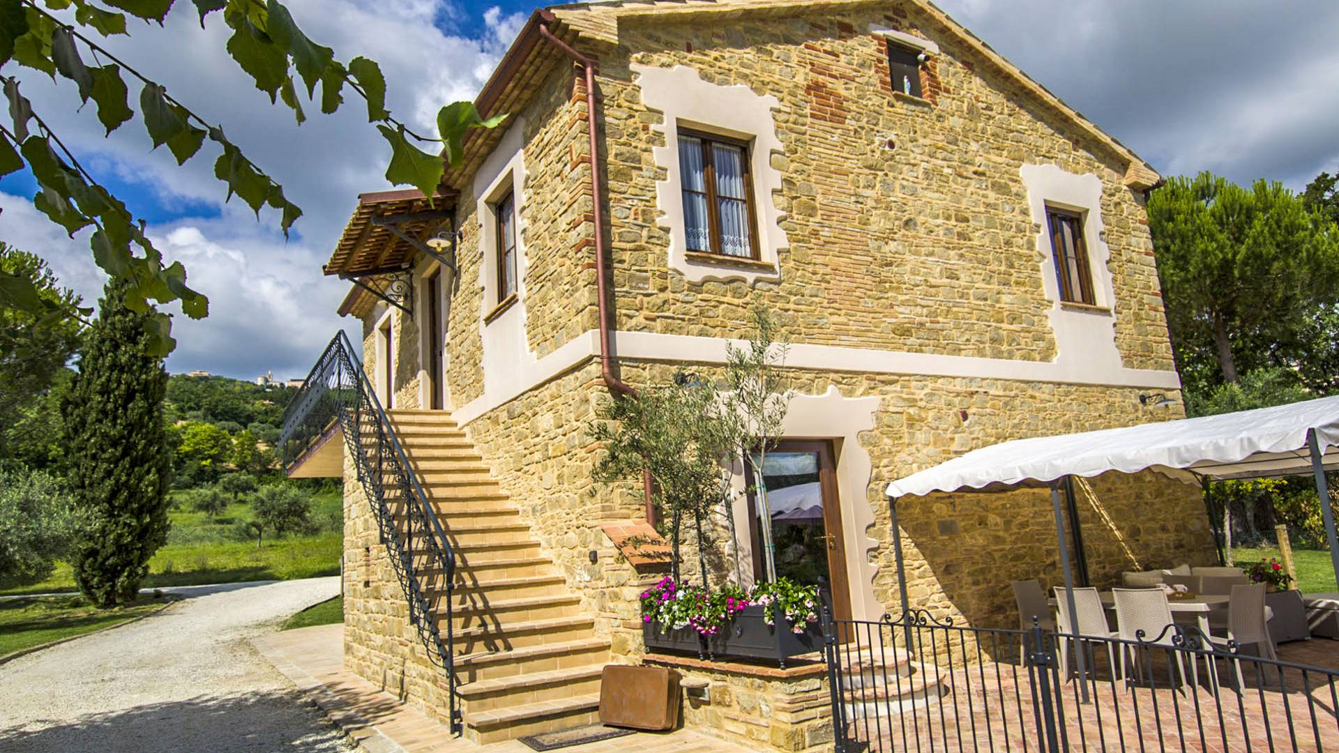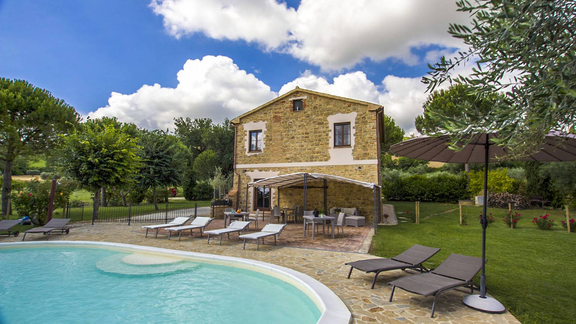 Villa Gioia The Marches es una villa de lujo en alquiler con 4 dormitorios y piscina privada. Villa Gioia ha sido restaurada en 2018 con la restauración de una casa de campo típica en el campo de Le Marche gracias al amor de los propietarios Lauro y Giusi por este lugar donde se puede respirar un aire de paz y serenidad, lejos del tráfico y con una vista del paisaje extraordinaria. que por un lado abraza las onduladas colinas de Le Marche dando una excelente vista al Monte Conero y por el otro tiene Cingoli, el "Balcón de las Marcas", como si lo vigilara.