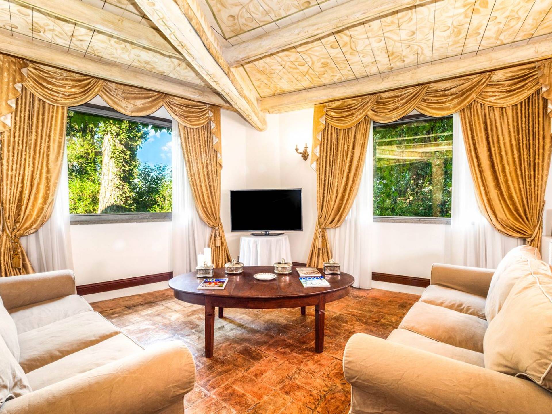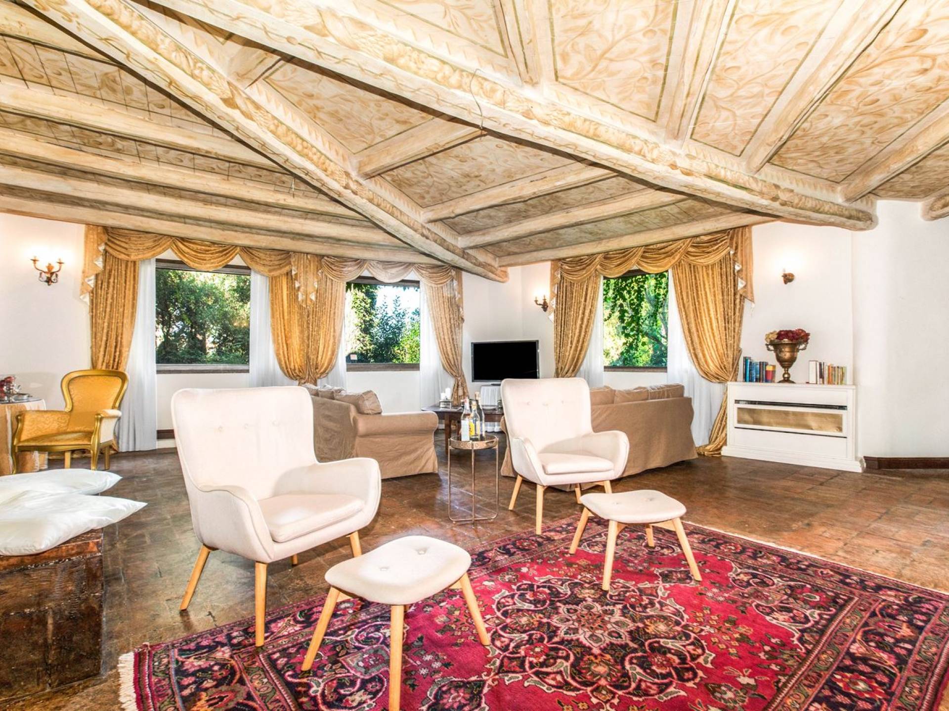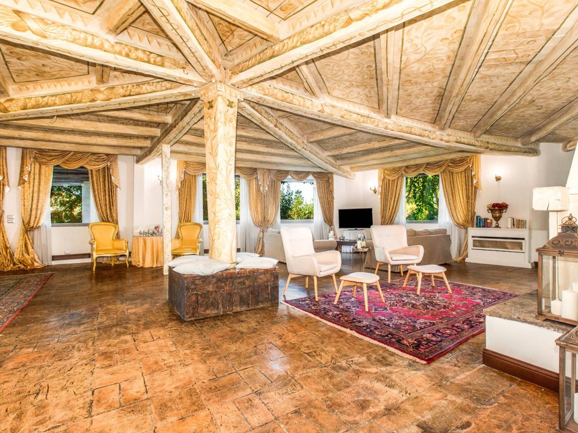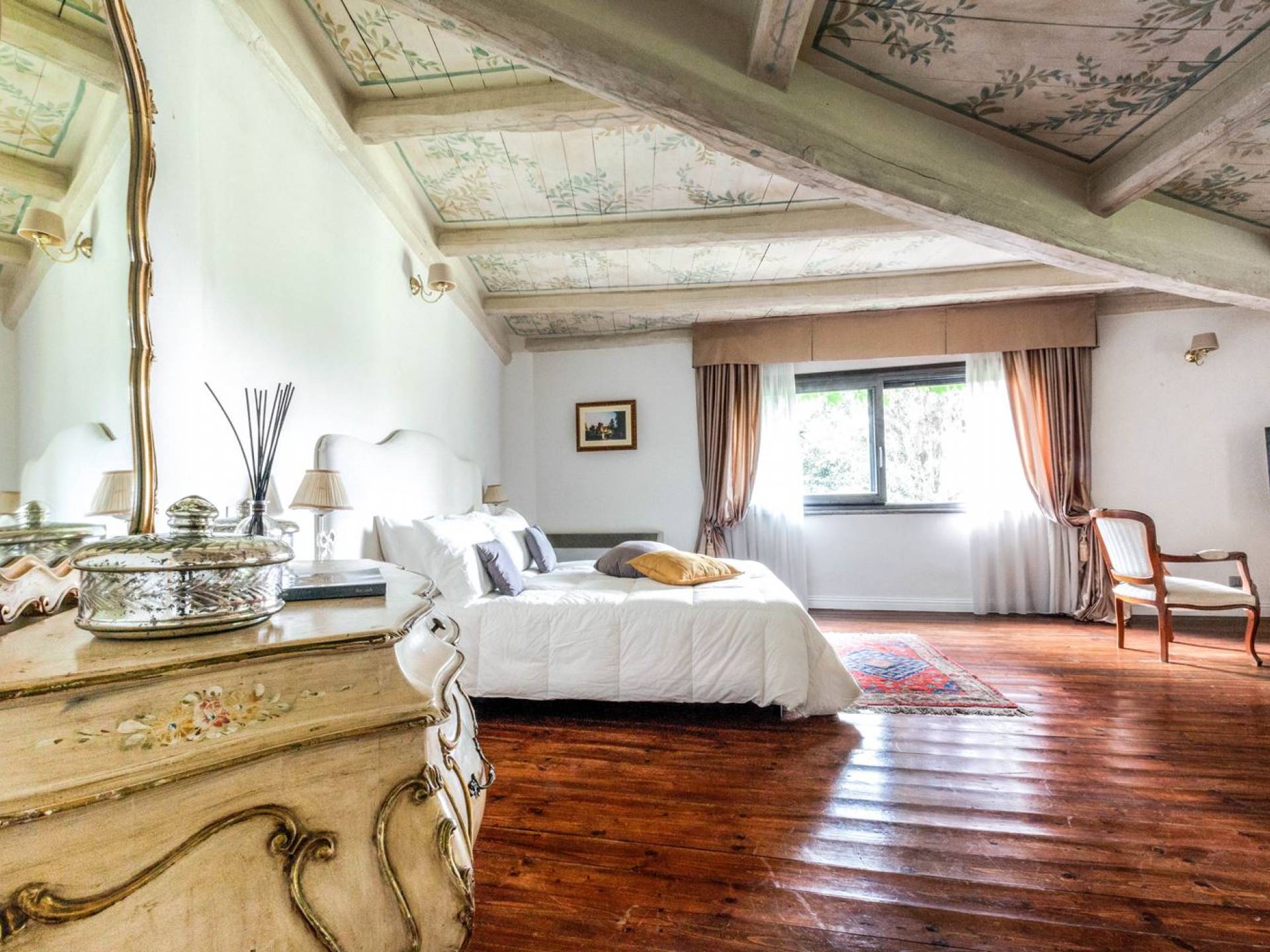 Villa delle Fontane Roma es una villa de lujo en alquiler con 4 dormitorios. La villa se encuentra en Roma dentro de la propiedad del Castillo de Torcrescenza. Se divide en 3 plantas y tiene n. 4 habitaciones dobles con baño privado más n. 2 baños adicionales en las áreas principales. También hay una sala de estar, un comedor con cocina independiente y un patio al aire libre. La villa está inmersa en un parque que permite a sus huéspedes disfrutar de unas vacaciones relajantes en uno de los lugares más encantadores de Italia.