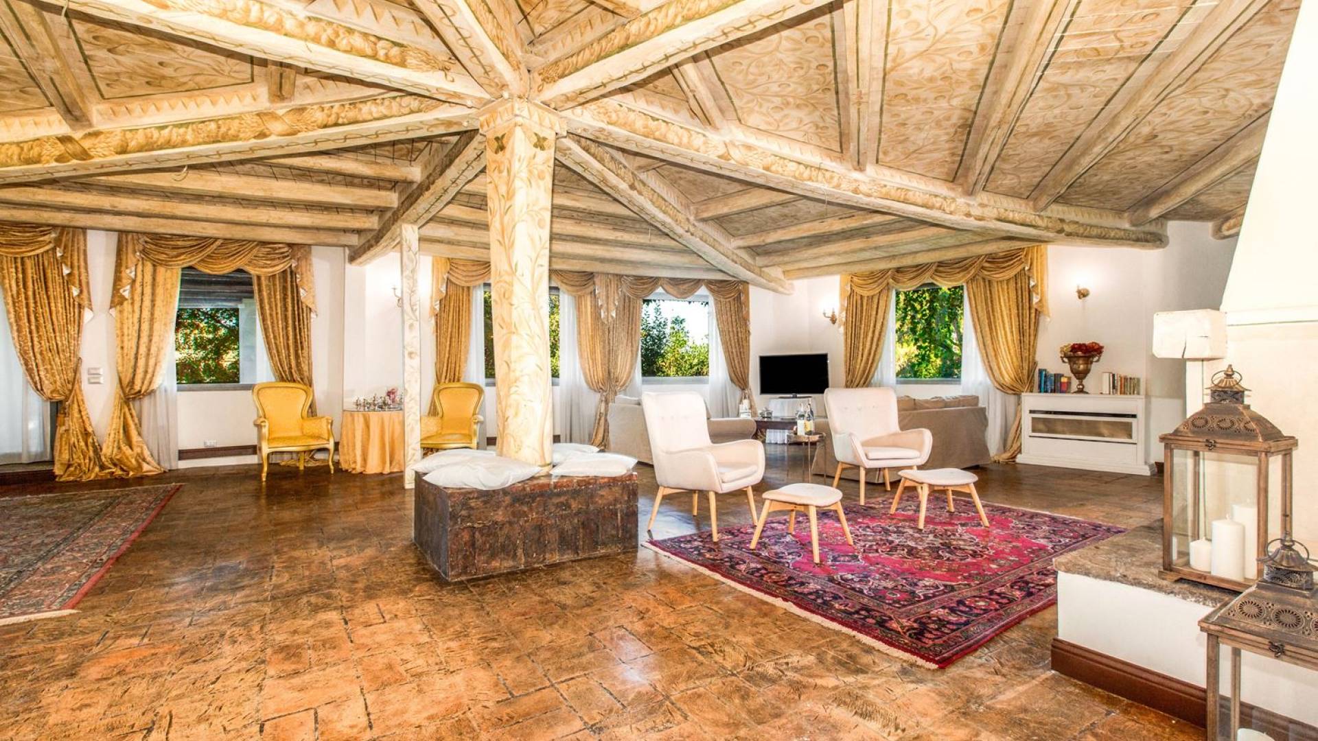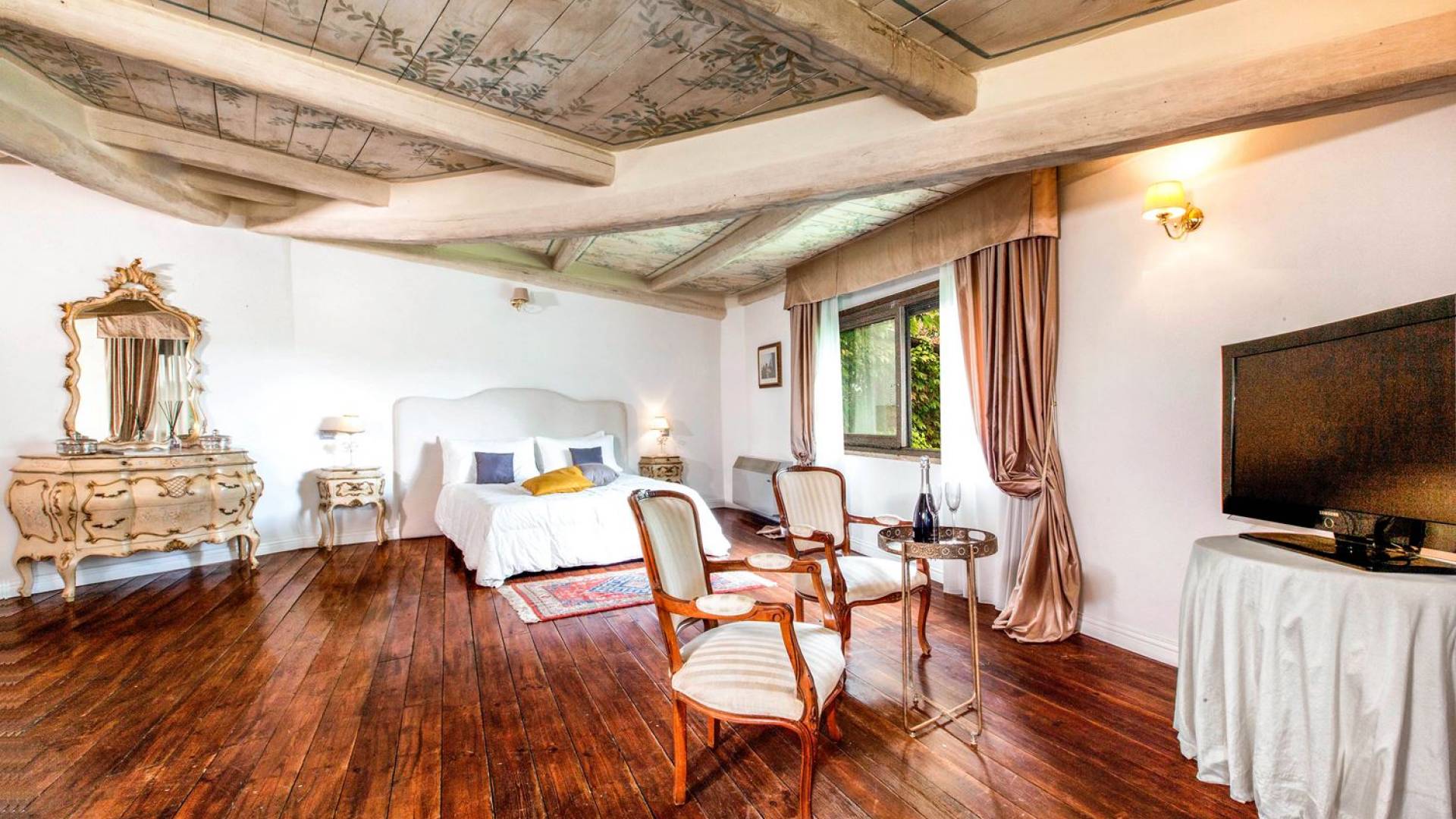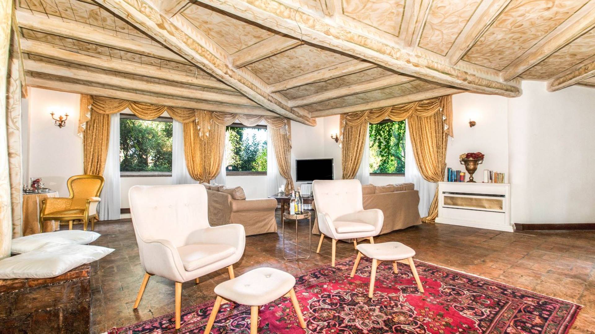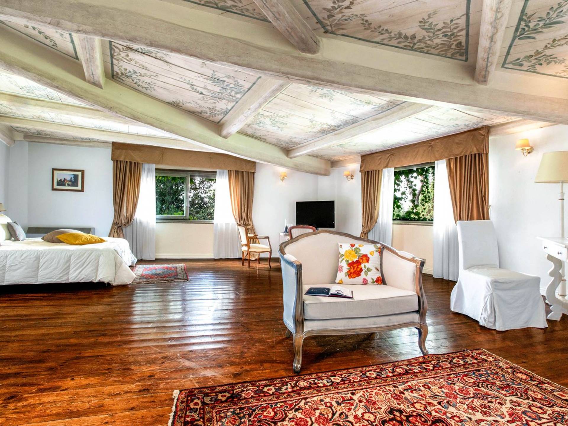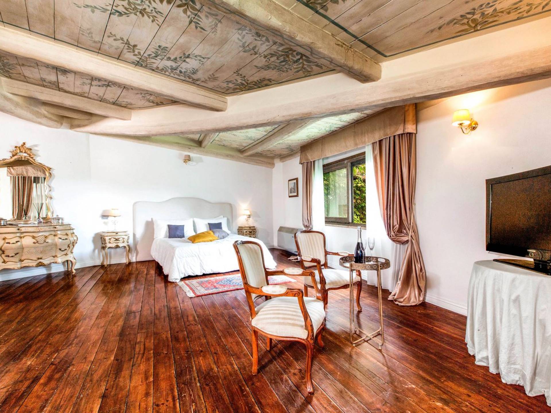 Villa delle Fontane Roma es una villa de lujo en alquiler con 4 dormitorios. La villa se encuentra en Roma dentro de la propiedad del Castillo de Torcrescenza. Se divide en 3 plantas y tiene n. 4 habitaciones dobles con baño privado más n. 2 baños adicionales en las áreas principales. También hay una sala de estar, un comedor con cocina independiente y un patio al aire libre. La villa está inmersa en un parque que permite a sus huéspedes disfrutar de unas vacaciones relajantes en uno de los lugares más encantadores de Italia.