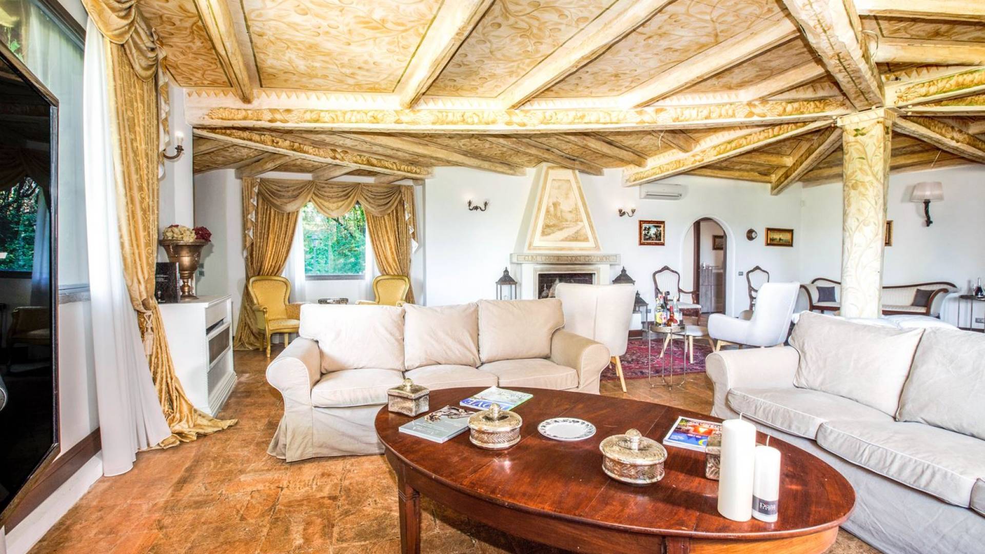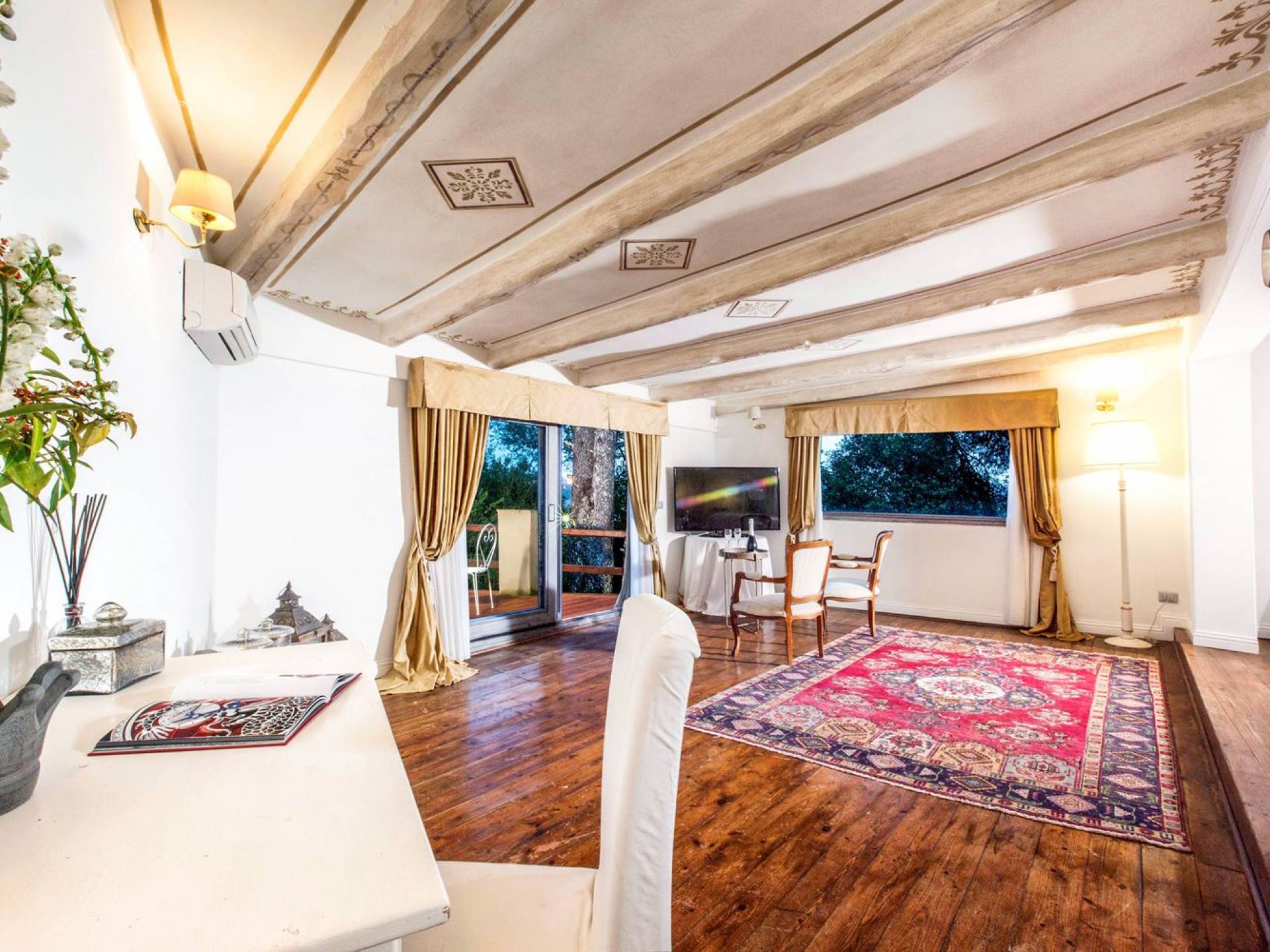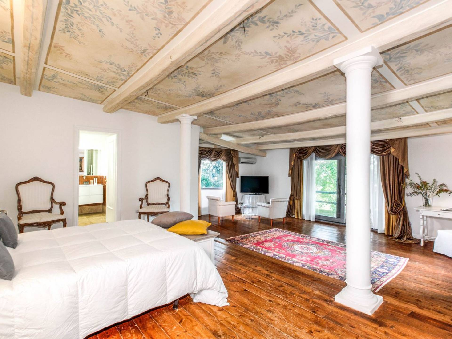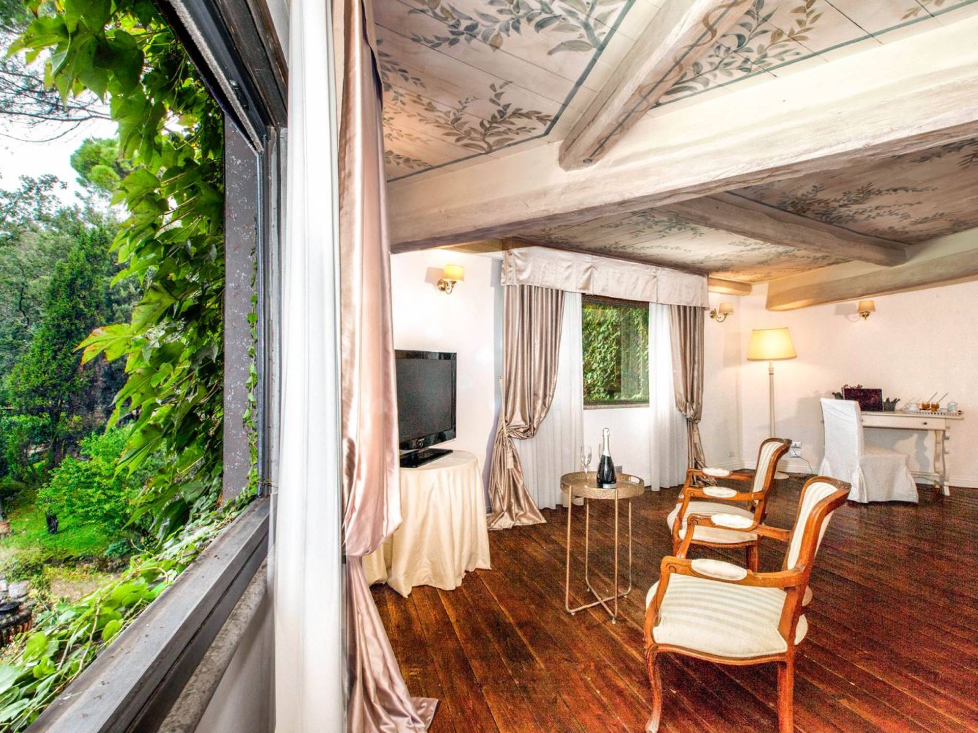 Villa delle Fontane Roma es una villa de lujo en alquiler con 4 dormitorios. La villa se encuentra en Roma dentro de la propiedad del Castillo de Torcrescenza. Se divide en 3 plantas y tiene n. 4 habitaciones dobles con baño privado más n. 2 baños adicionales en las áreas principales. También hay una sala de estar, un comedor con cocina independiente y un patio al aire libre. La villa está inmersa en un parque que permite a sus huéspedes disfrutar de unas vacaciones relajantes en uno de los lugares más encantadores de Italia.