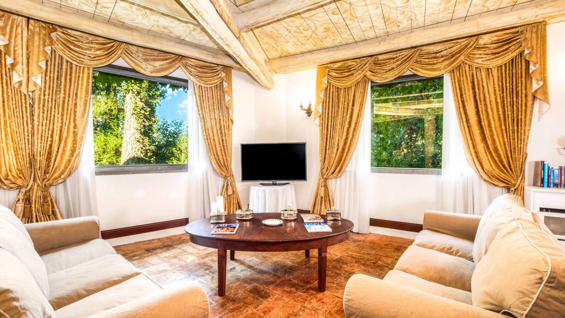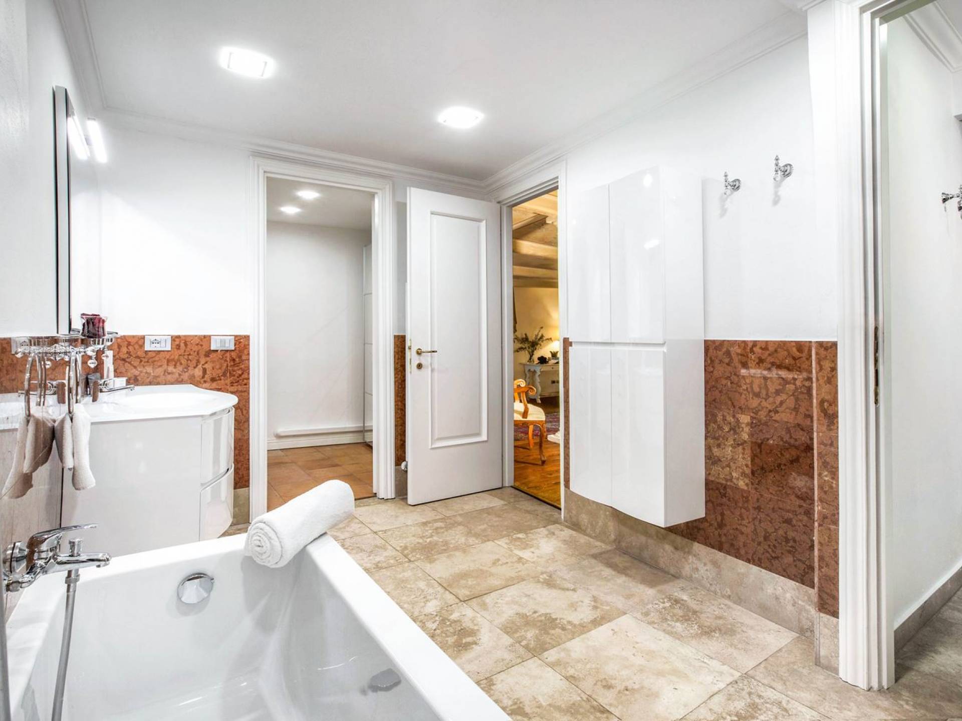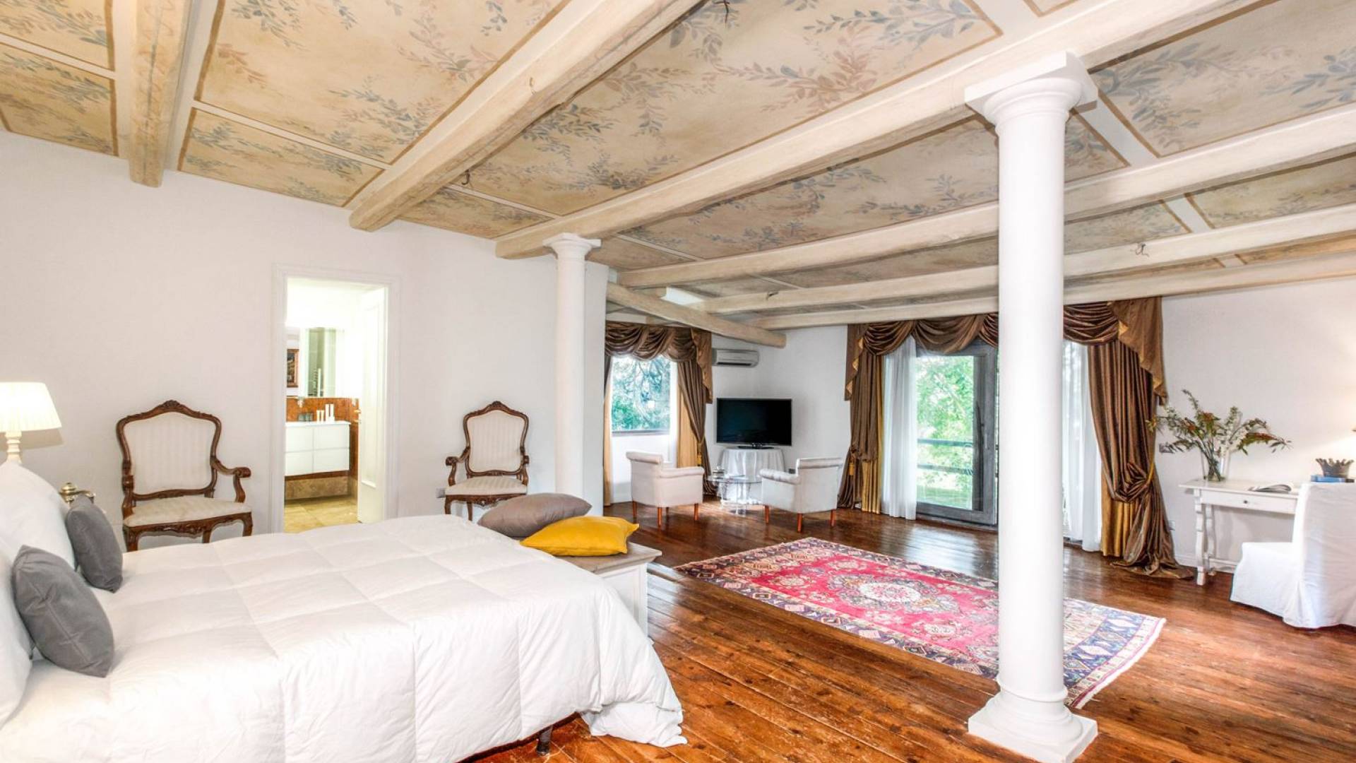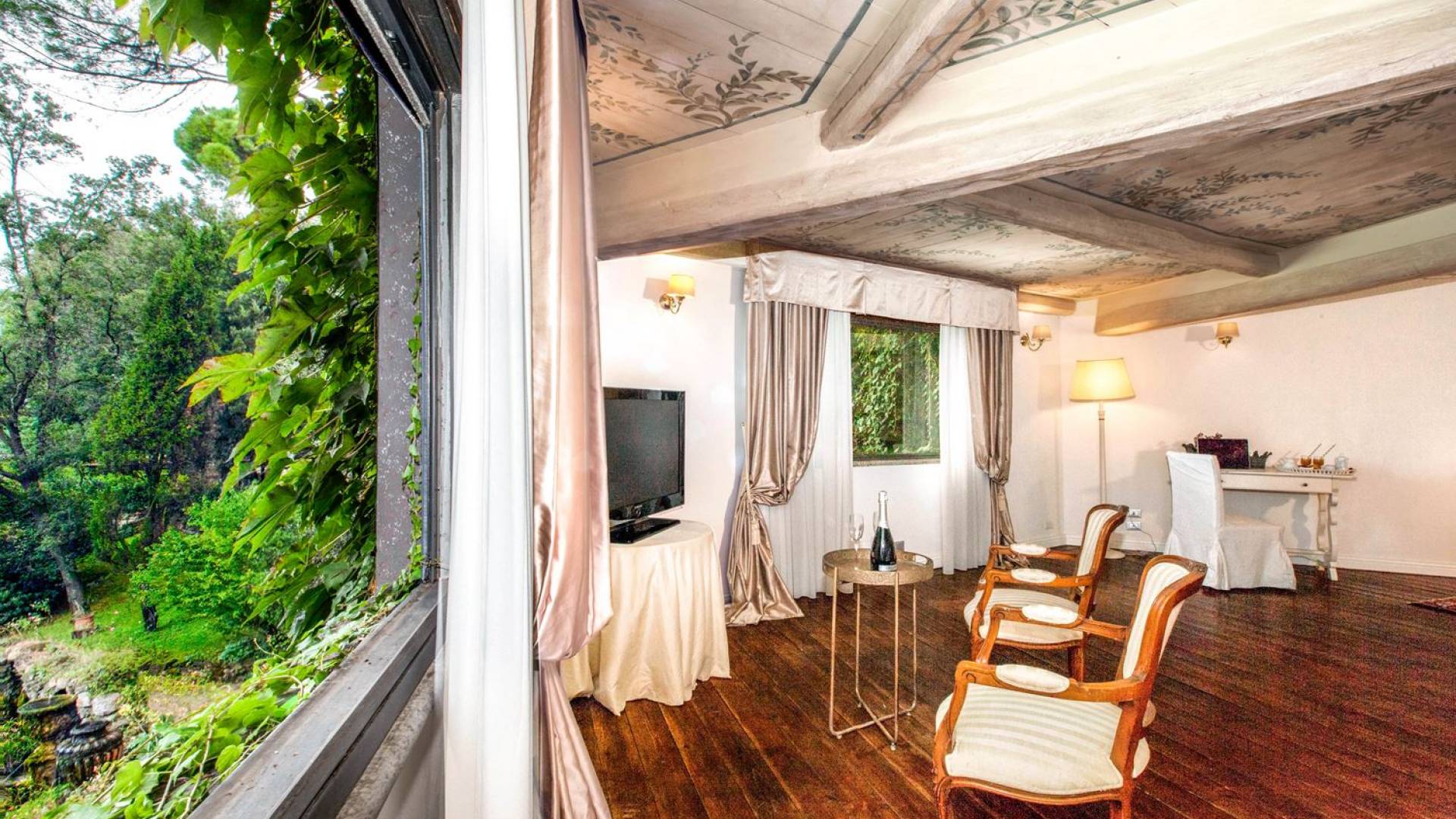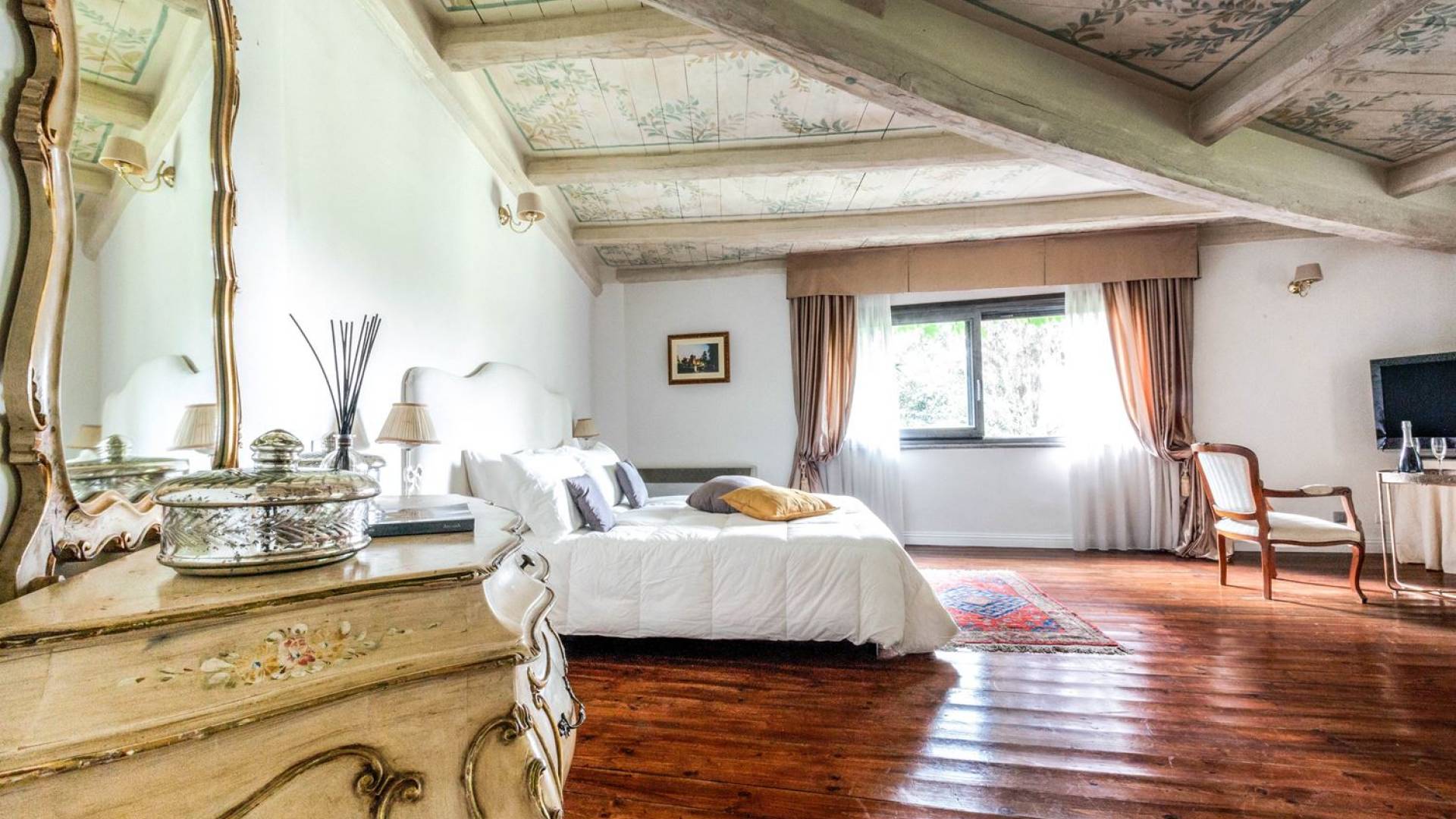 Villa delle Fontane Roma es una villa de lujo en alquiler con 4 dormitorios. La villa se encuentra en Roma dentro de la propiedad del Castillo de Torcrescenza. Se divide en 3 plantas y tiene n. 4 habitaciones dobles con baño privado más n. 2 baños adicionales en las áreas principales. También hay una sala de estar, un comedor con cocina independiente y un patio al aire libre. La villa está inmersa en un parque que permite a sus huéspedes disfrutar de unas vacaciones relajantes en uno de los lugares más encantadores de Italia.
