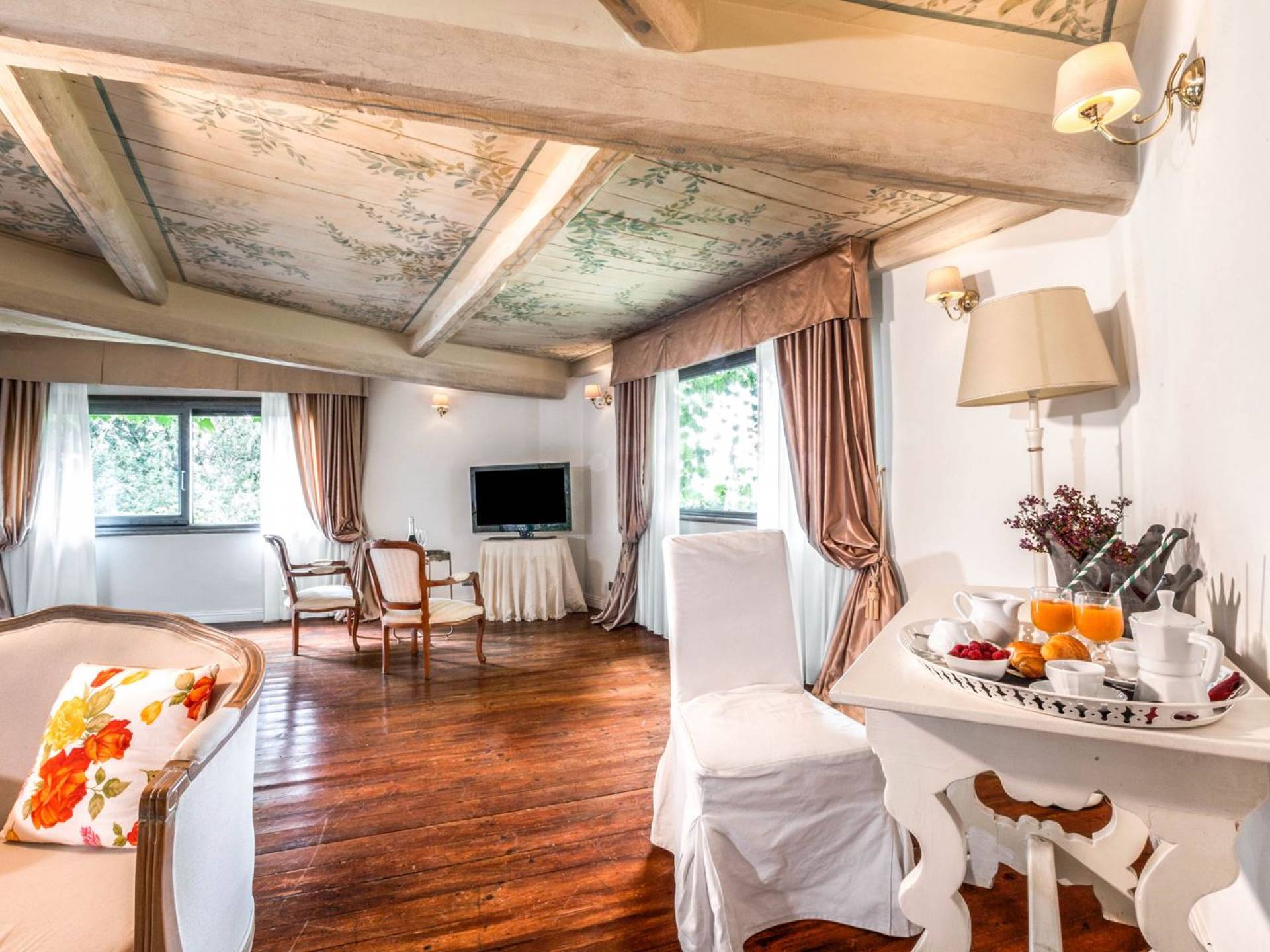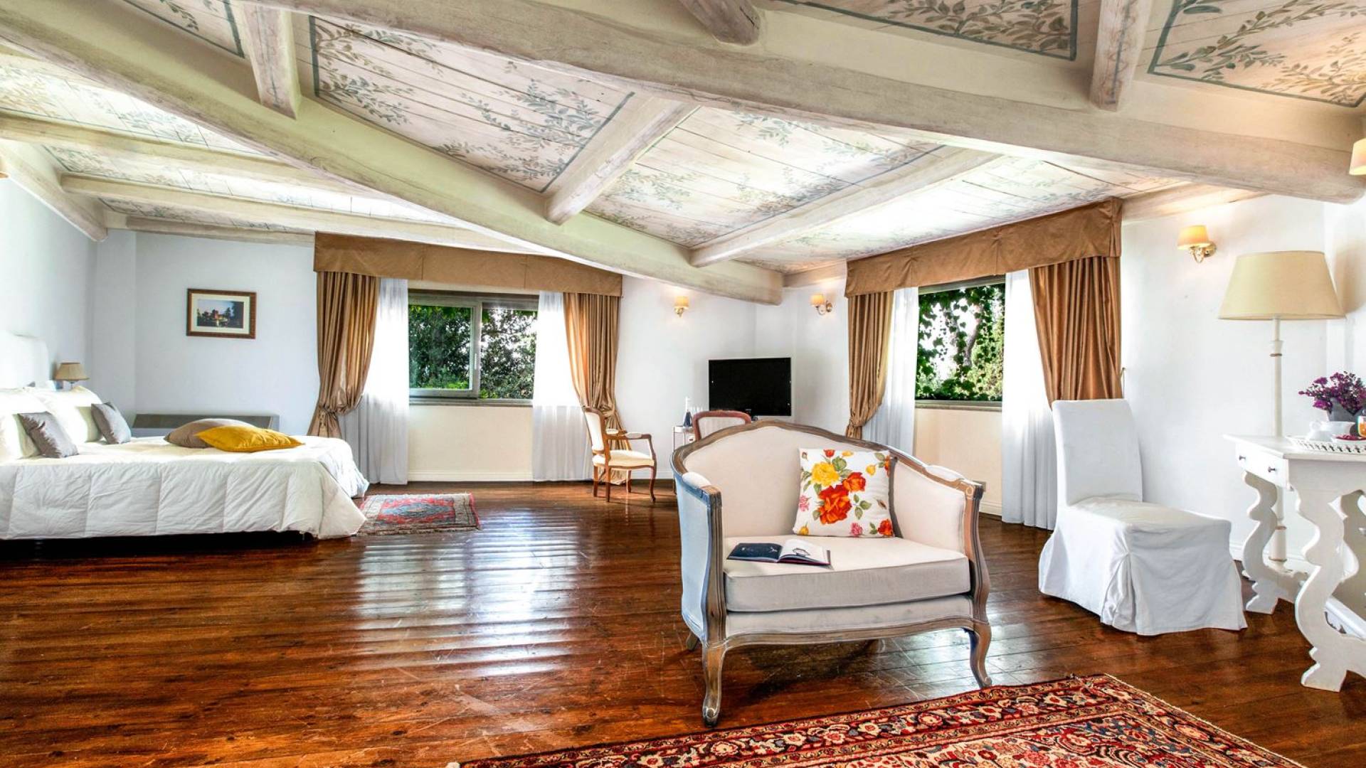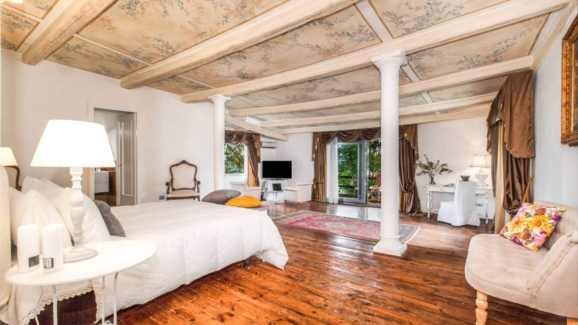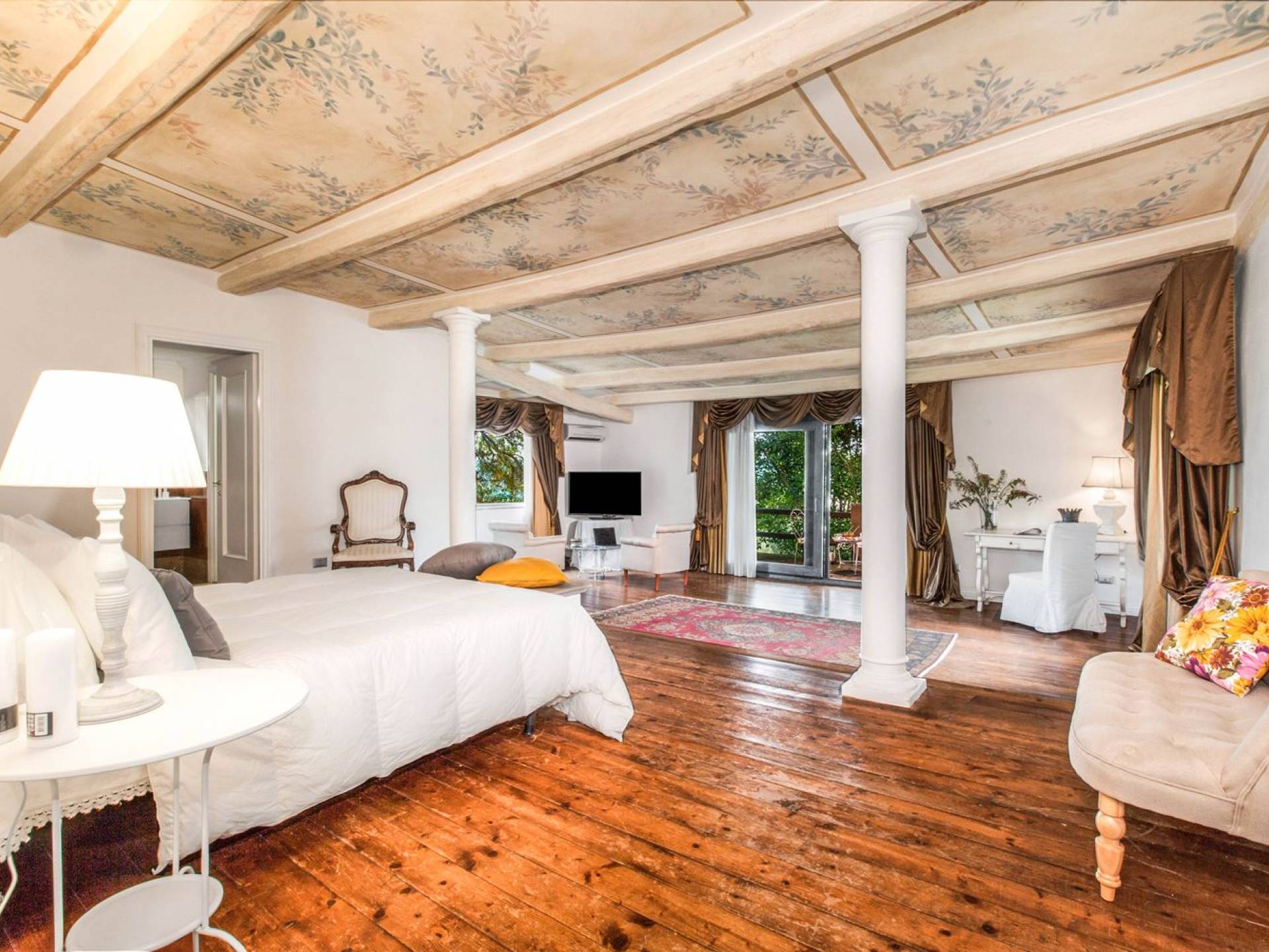 Villa delle Fontane Roma es una villa de lujo en alquiler con 4 dormitorios. La villa se encuentra en Roma dentro de la propiedad del Castillo de Torcrescenza. Se divide en 3 plantas y tiene n. 4 habitaciones dobles con baño privado más n. 2 baños adicionales en las áreas principales. También hay una sala de estar, un comedor con cocina independiente y un patio al aire libre. La villa está inmersa en un parque que permite a sus huéspedes disfrutar de unas vacaciones relajantes en uno de los lugares más encantadores de Italia.