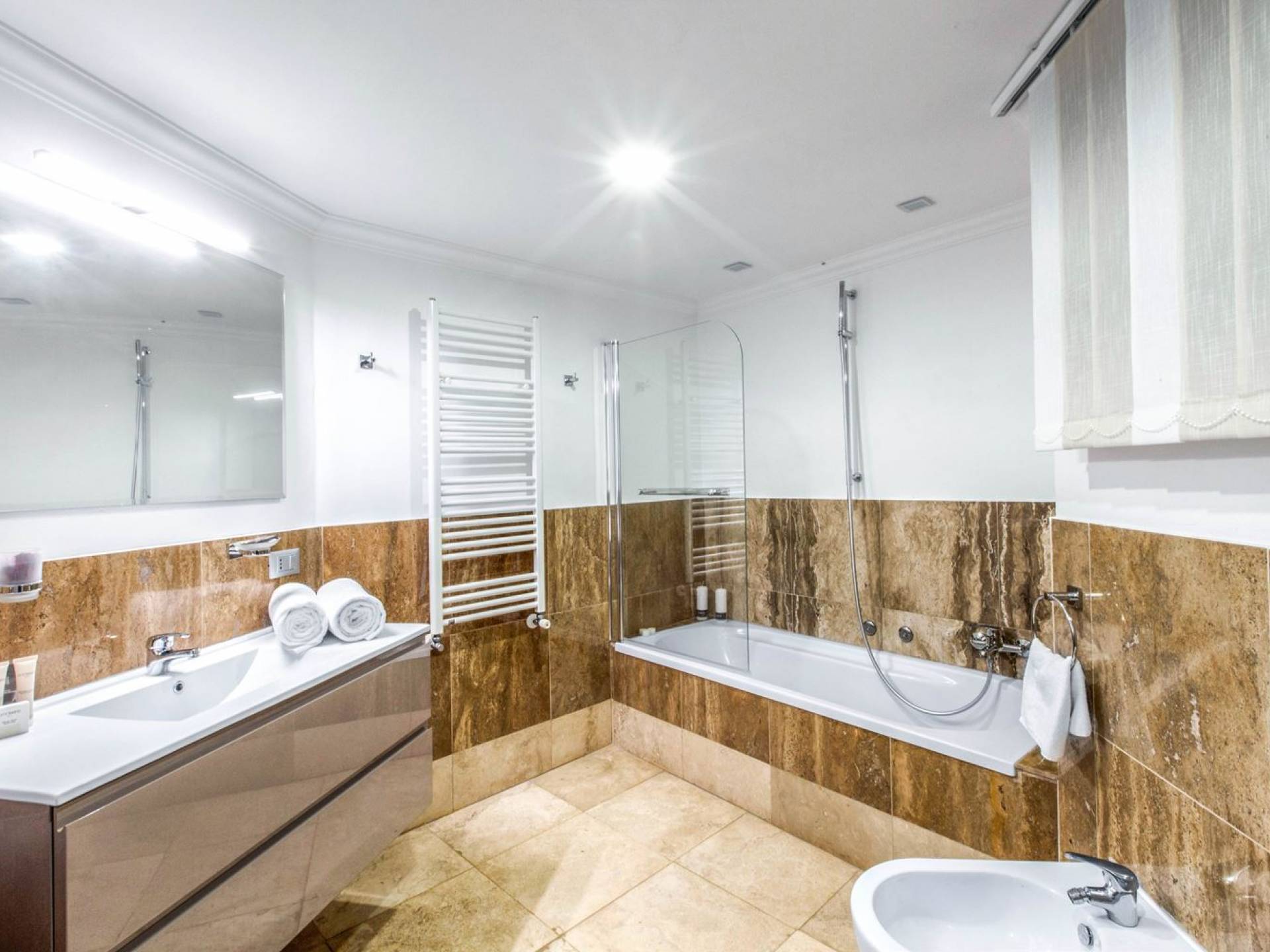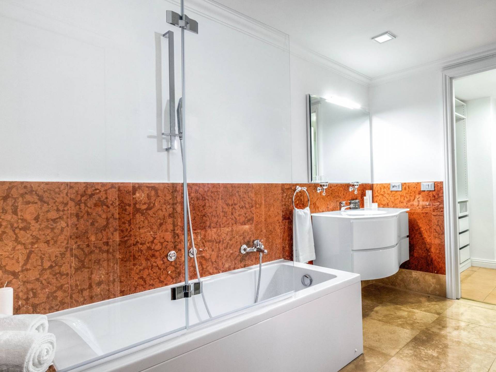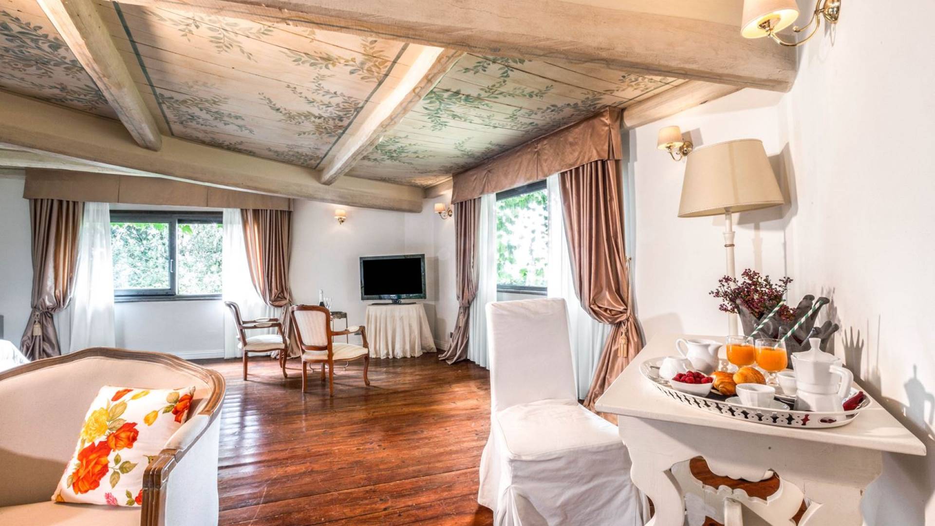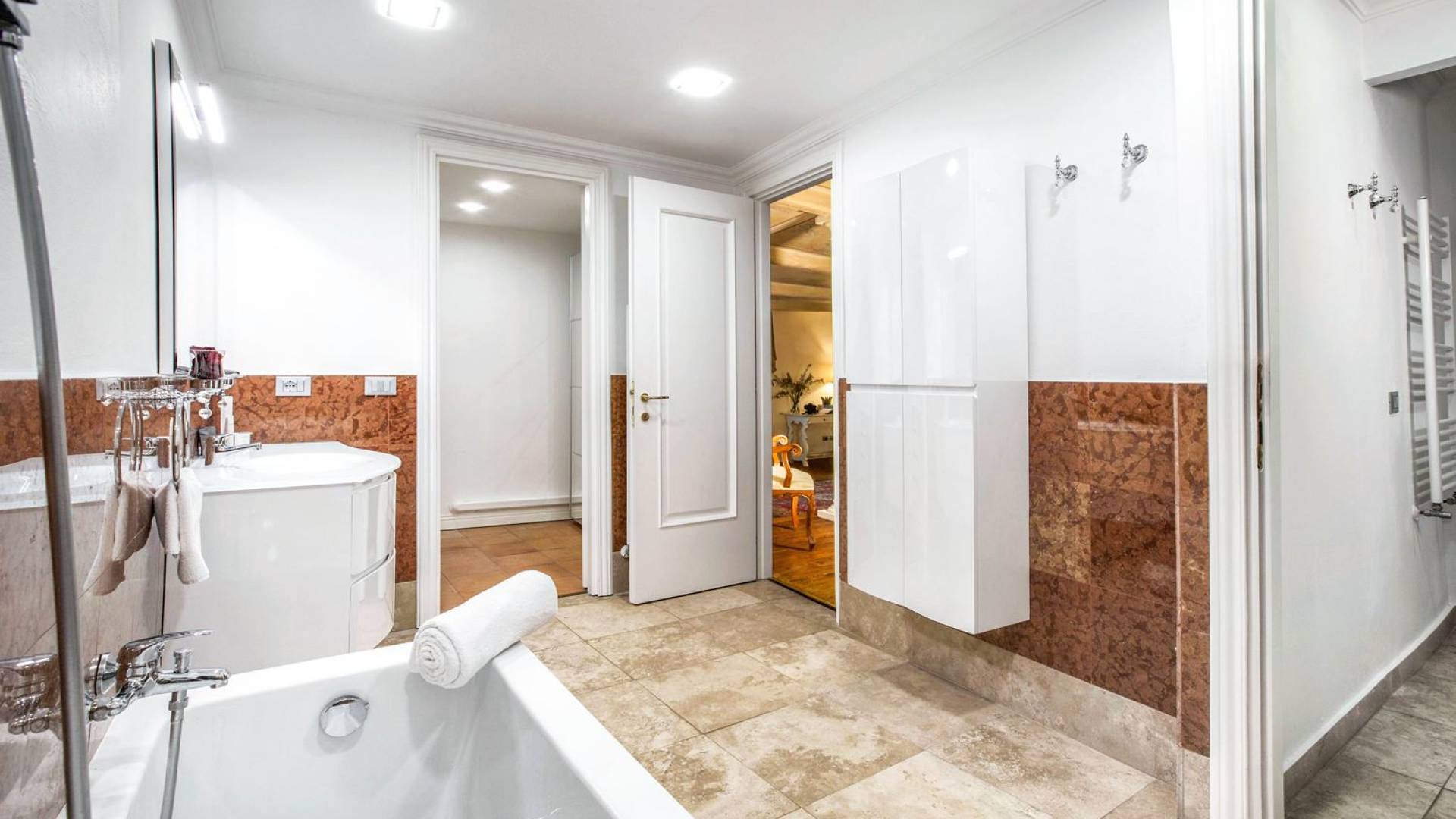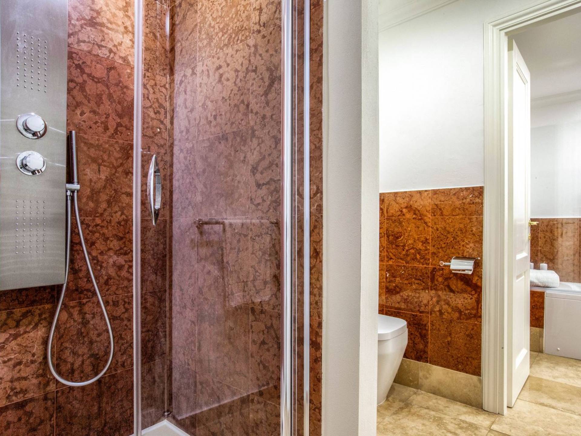 Villa delle Fontane Roma es una villa de lujo en alquiler con 4 dormitorios. La villa se encuentra en Roma dentro de la propiedad del Castillo de Torcrescenza. Se divide en 3 plantas y tiene n. 4 habitaciones dobles con baño privado más n. 2 baños adicionales en las áreas principales. También hay una sala de estar, un comedor con cocina independiente y un patio al aire libre. La villa está inmersa en un parque que permite a sus huéspedes disfrutar de unas vacaciones relajantes en uno de los lugares más encantadores de Italia.