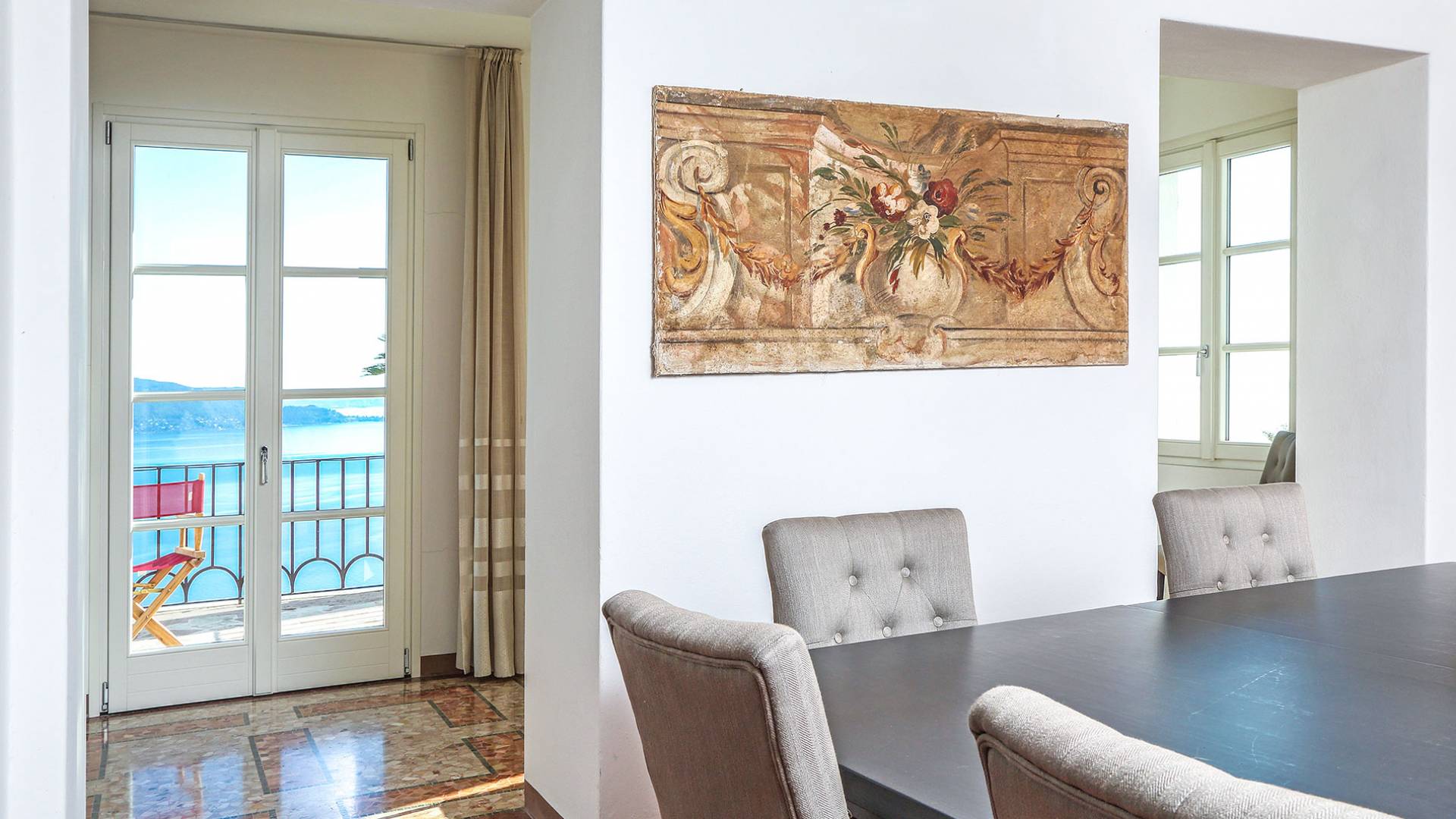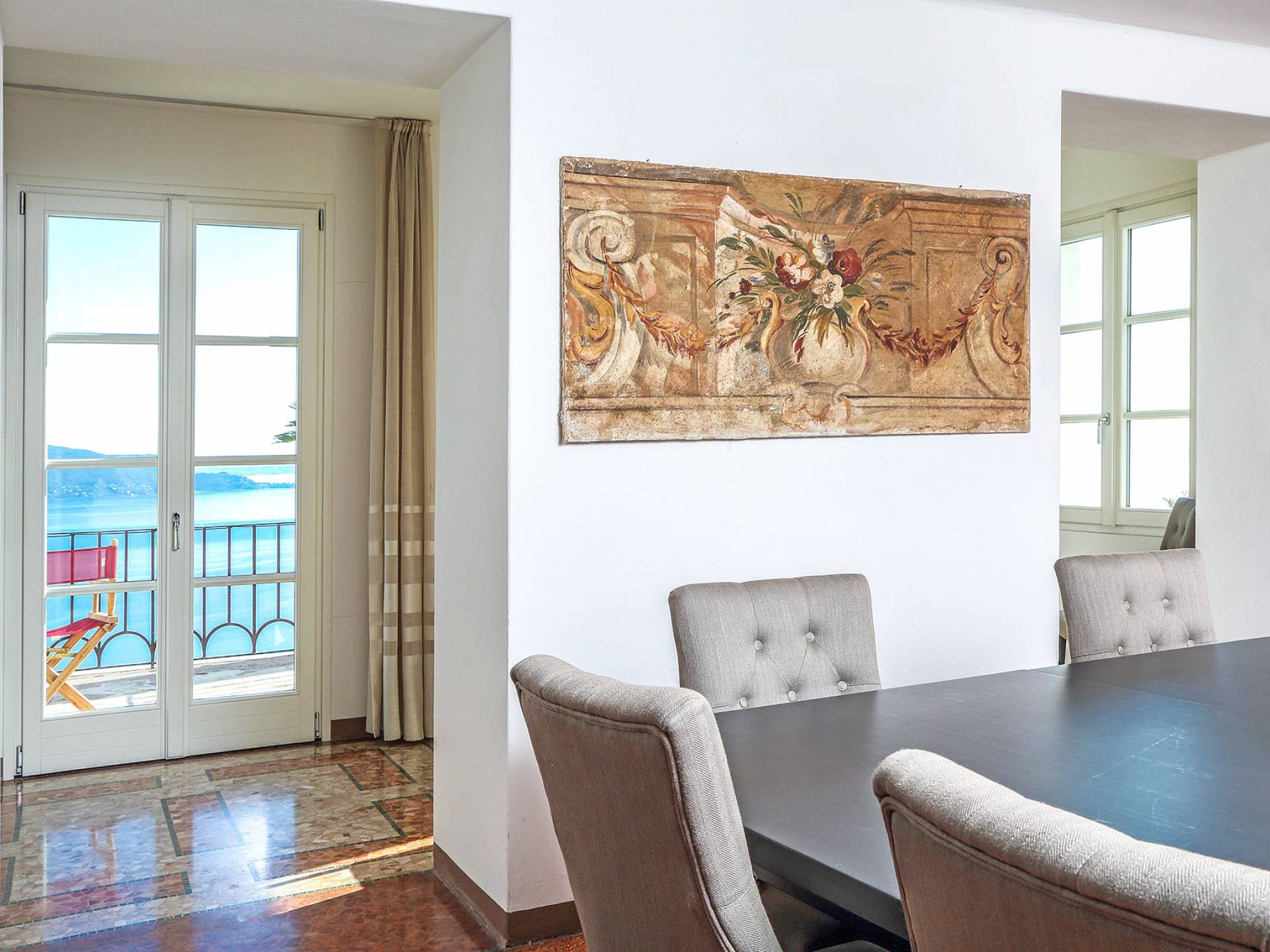 La sala de estar consta de una luminosa sala de estar panorámica con piano, una sala de billar y un comedor con elegantes y originales pisos venecianos y chimeneas históricas. Toda la villa tiene aire acondicionado.