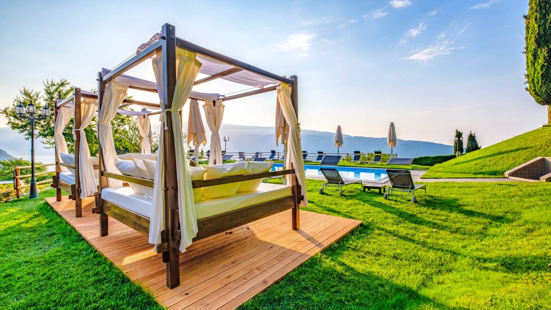 Tranquilidad y encanto. Panoramas celestiales y muebles refinados. Notas suaves de consuelo para grabar en la “partitura” de tu corazón. En síntesis, la estancia en las 19 habitaciones de Villa Sostaga y en la Dépendance Meridiana garantiza el descanso ideal después de unos días extraordinarios a orillas del maravilloso lago de Garda. Espacio, luminosidad, silencio, intimidad, relax, encanto sin fin. Todo junto, sin renunciar a nada.