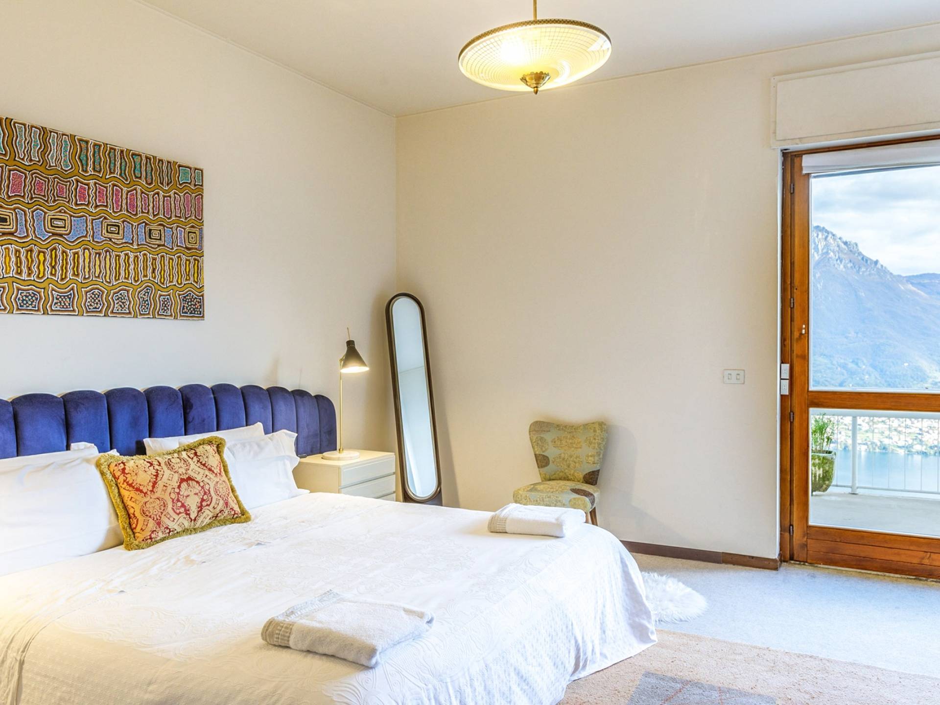 Desde el vestíbulo de entrada, ingresará a la cautivadora sala de estar con grandes ventanales con vista al lago, un relajante salón alrededor de la chimenea, una mesa de comedor y acceso a la terraza panorámica frente al lago. Cocina totalmente equipada con isla central y acceso a la terraza del jardín trasero y barbacoa. También en esta planta hay dos dormitorios con una cama doble (que se puede separar en dos individuales), cada uno con baño privado. Bajando a la planta inferior se encuentra el segundo salón y sala de estar con una pequeña cocina y otra terraza con impresionantes vistas al lago. Hay 4 dormitorios y 3 baños en este piso: dos dormitorios con cama doble (se puede separar en dos individuales) con baño privado, un dormitorio con cama doble (se puede separar en dos individuales), un dormitorio con cama doble normal. Baño compartido.