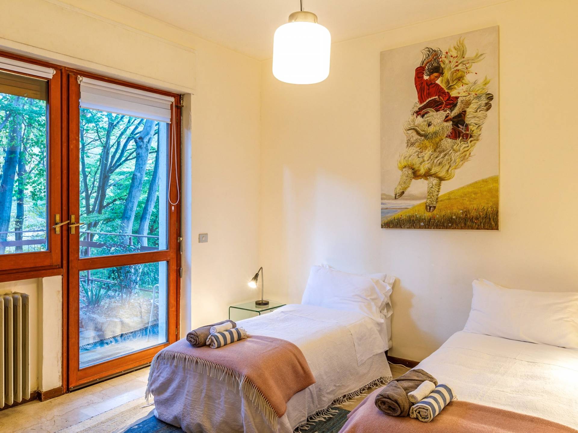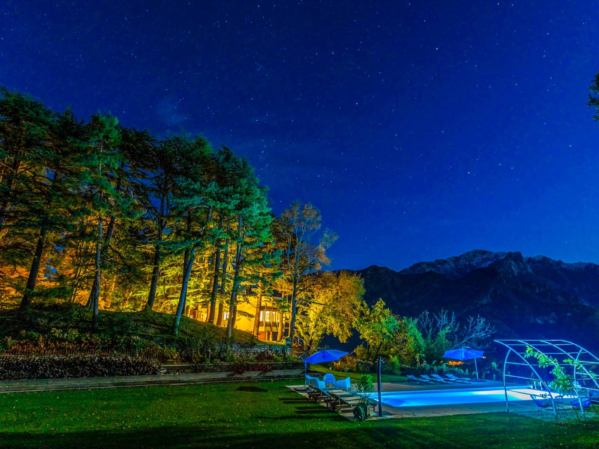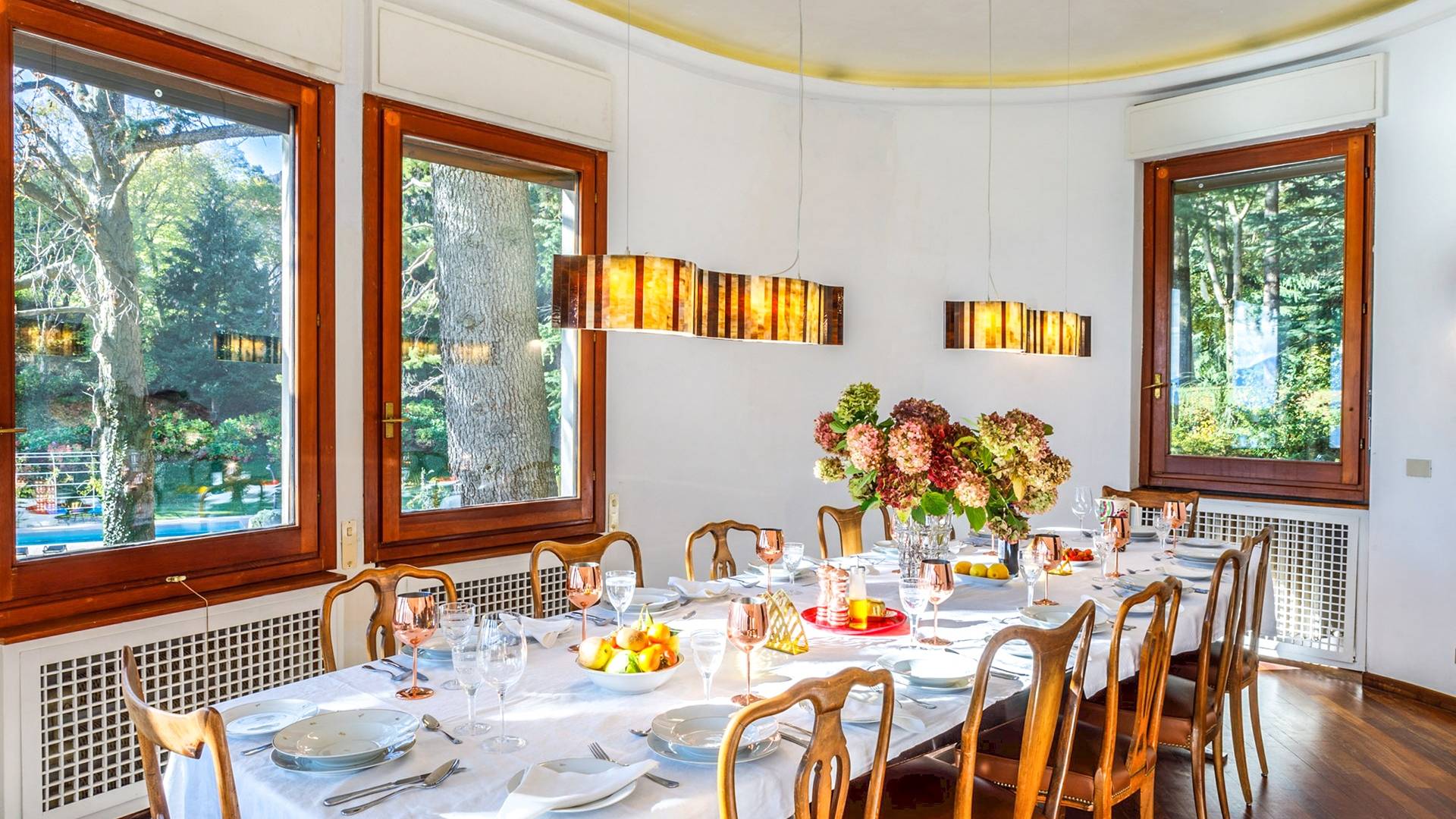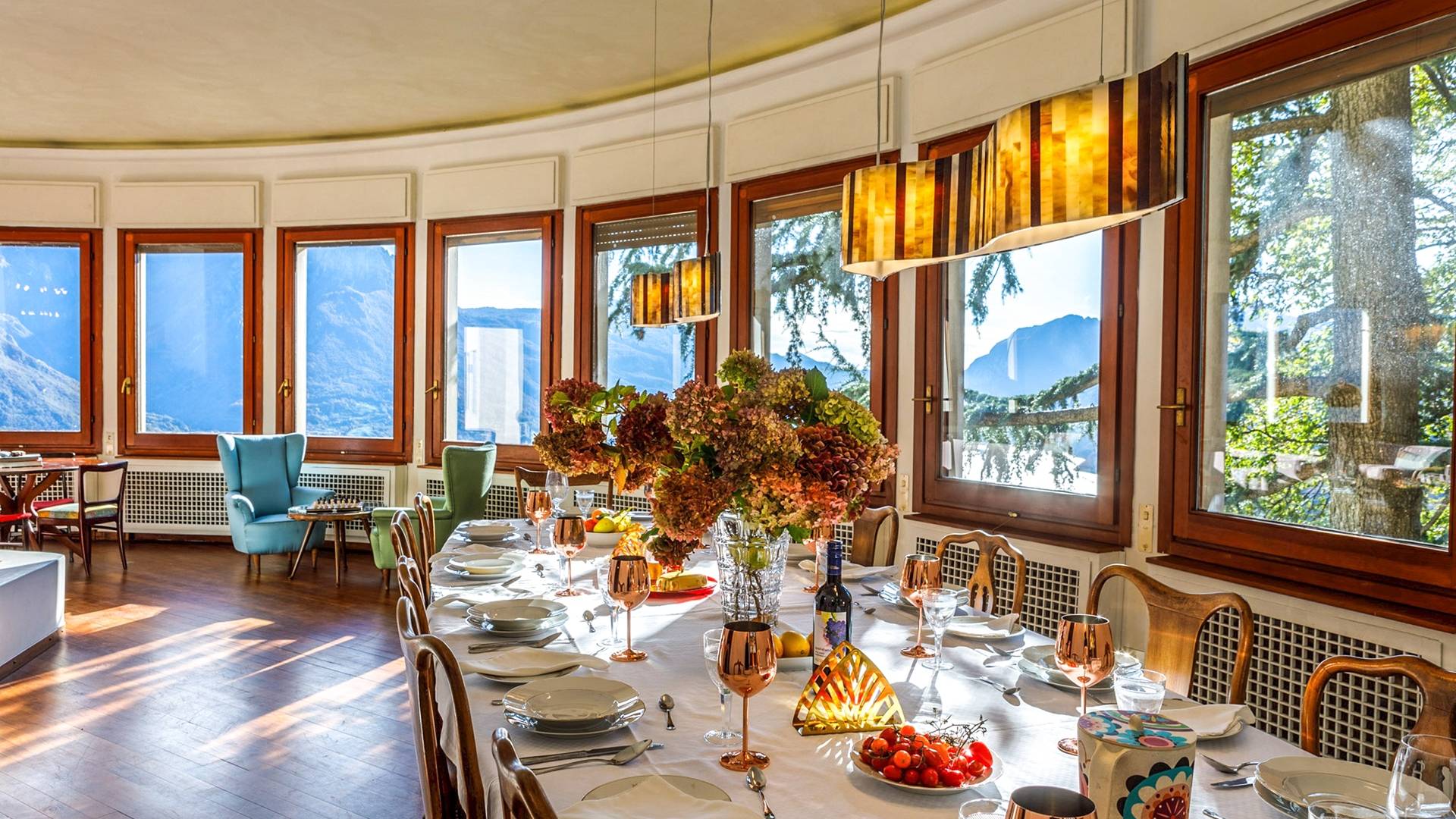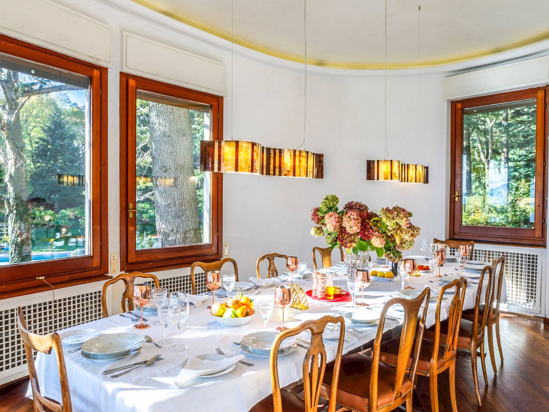 La Villa Barbara se extiende a lo largo de tres acres de hermosos bosques y jardines, e impresionantes vistas de 180 grados del lago de Como y las montañas circundantes. Con una piscina infinita, una piscina para niños, un jacuzzi, una sauna, una cancha de bochas, varias zonas de estar al aire libre y áreas para comer, hay un amplio espacio para trabajar, jugar, descansar, recargar energías y reiniciar.