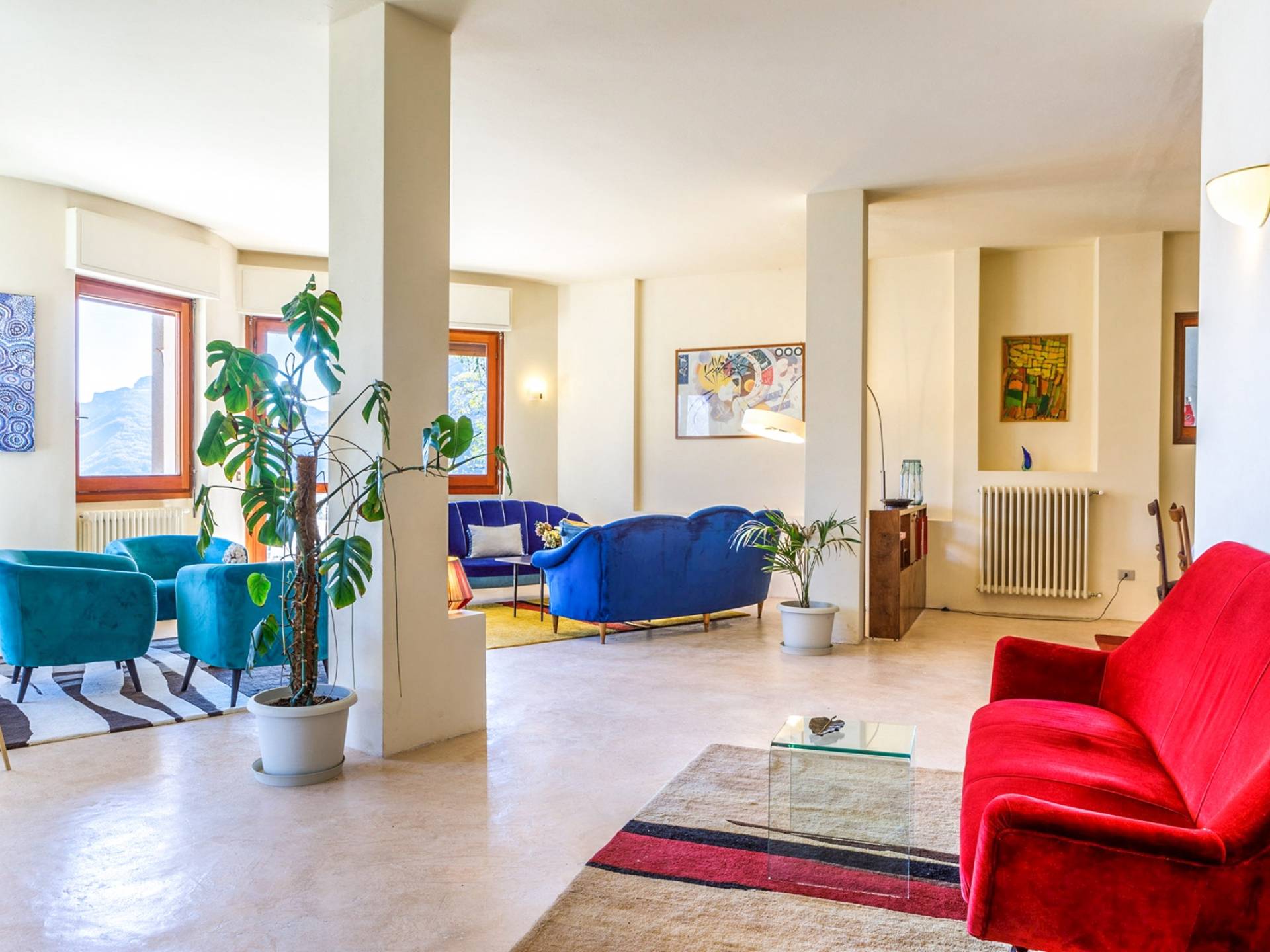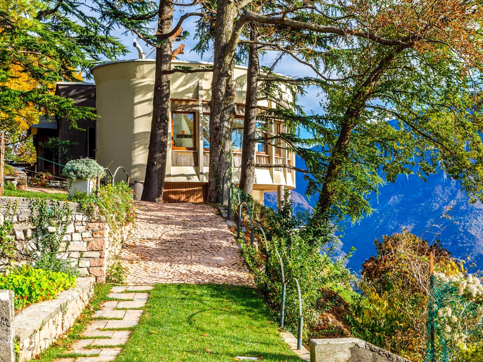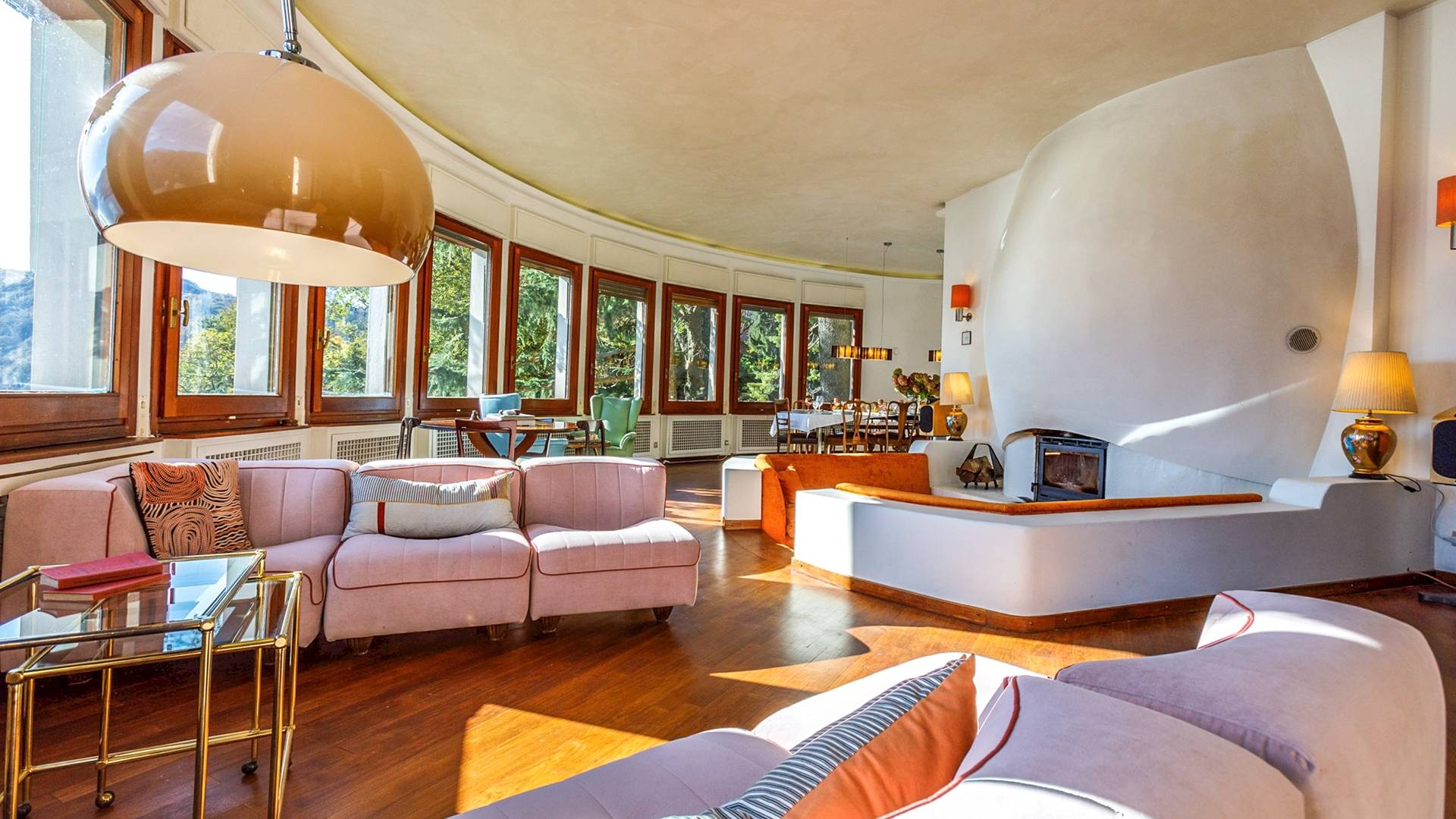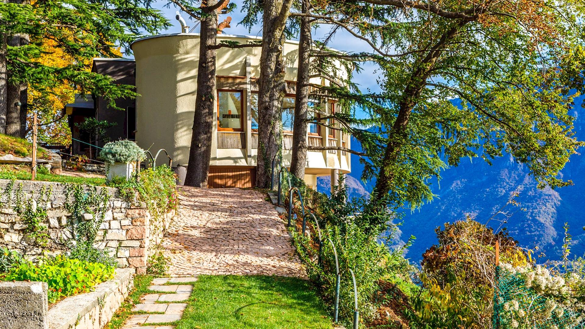 Villa escénica y llamativa con piscina e impresionantes vistas al lago, ubicada en un bosque privado en Civenna en el lago de Como. Villa Barbara es una elegante villa de mediados de siglo, privada y profundamente tranquila, pero muy cerca de Bellagio, el punto turístico del lago de Como. Esta villa (400 m²) presenta una fachada curva única y moderna, inspirada en un famoso arquitecto italiano, y está construida sobre una colina con entrada desde el último piso, con capacidad para 12 personas en 6 habitaciones
