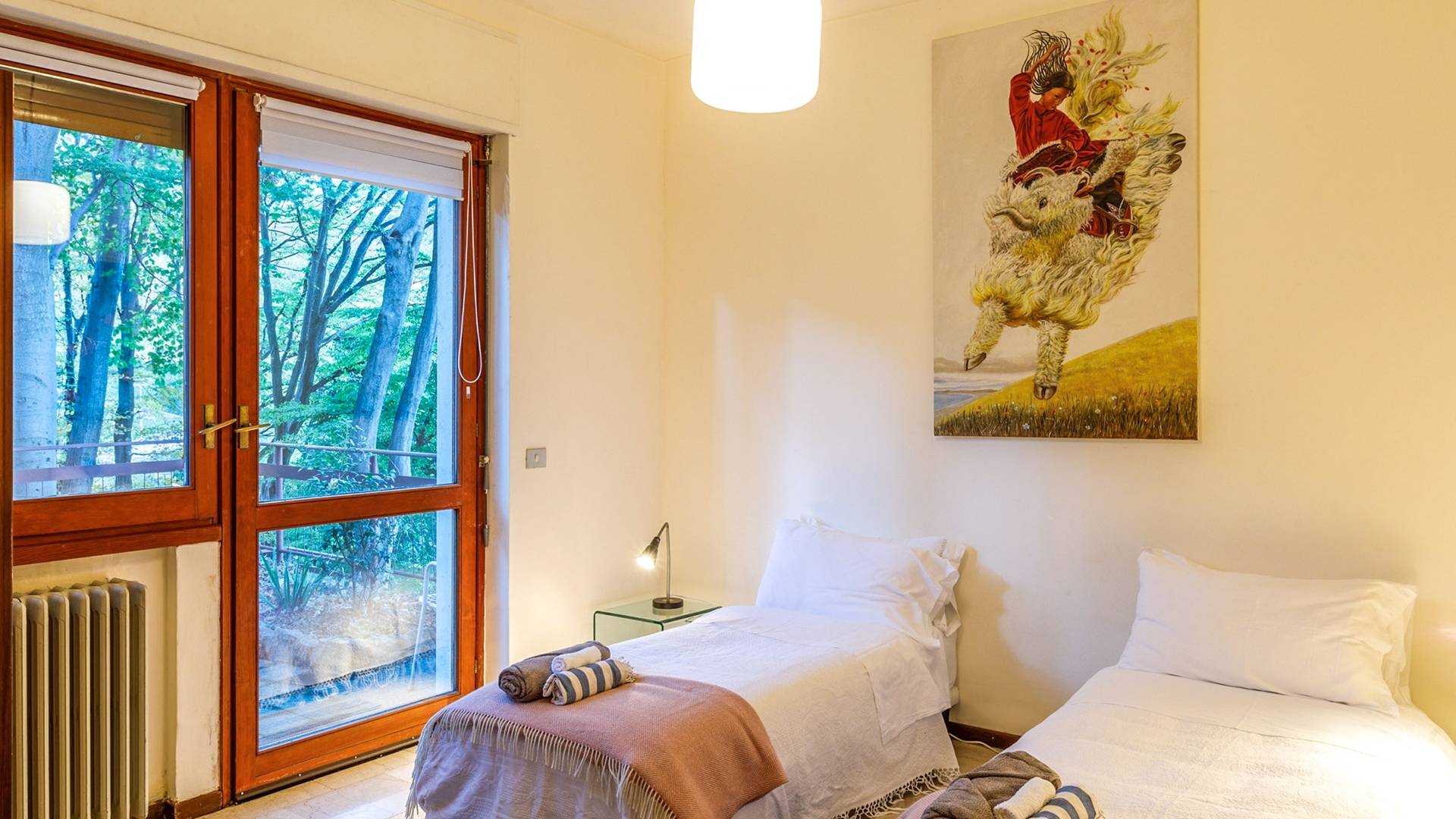 La villa está ubicada en una calle privada en Civenna, un pueblo tranquilo ubicado en las colinas sobre Bellagio, a solo 15 minutos en automóvil (9 km) de distancia. Conocida como la perla del lago de Como, Bellagio es un pequeño pueblo pintoresco con un hermoso paseo junto al lago y muchas cafeterías, restaurantes y tiendas de artesanía. Con una ubicación ideal en el centro del lago, es la base perfecta para explorar la zona fácilmente en ferry hacia Varenna, Menaggio y todas las demás partes hermosas y mágicas del lago de Como.
