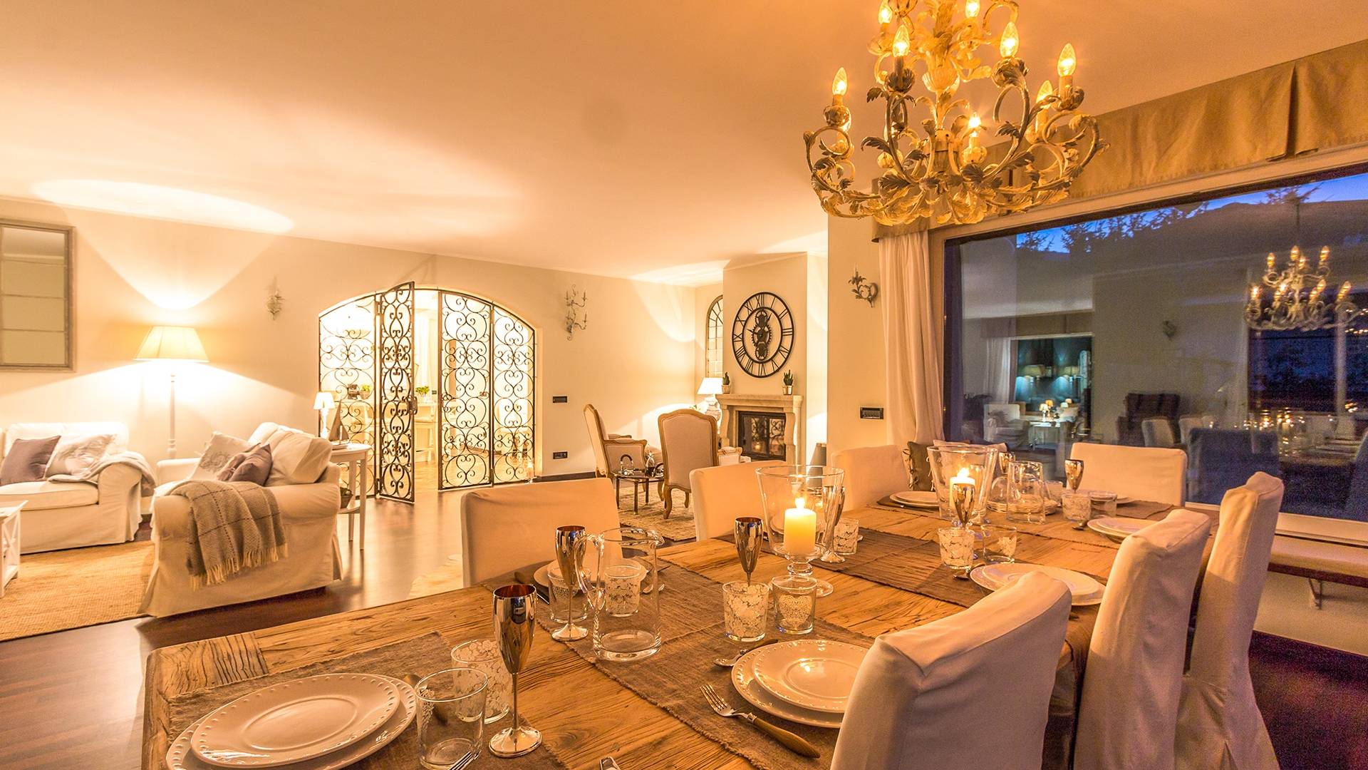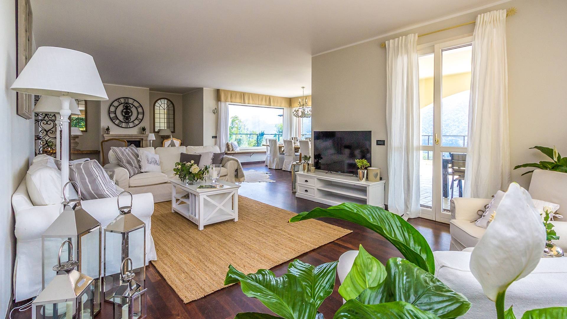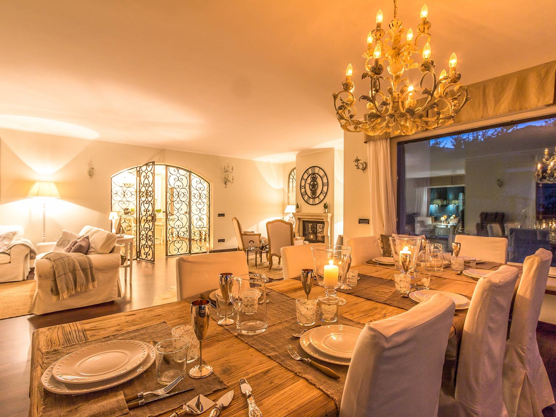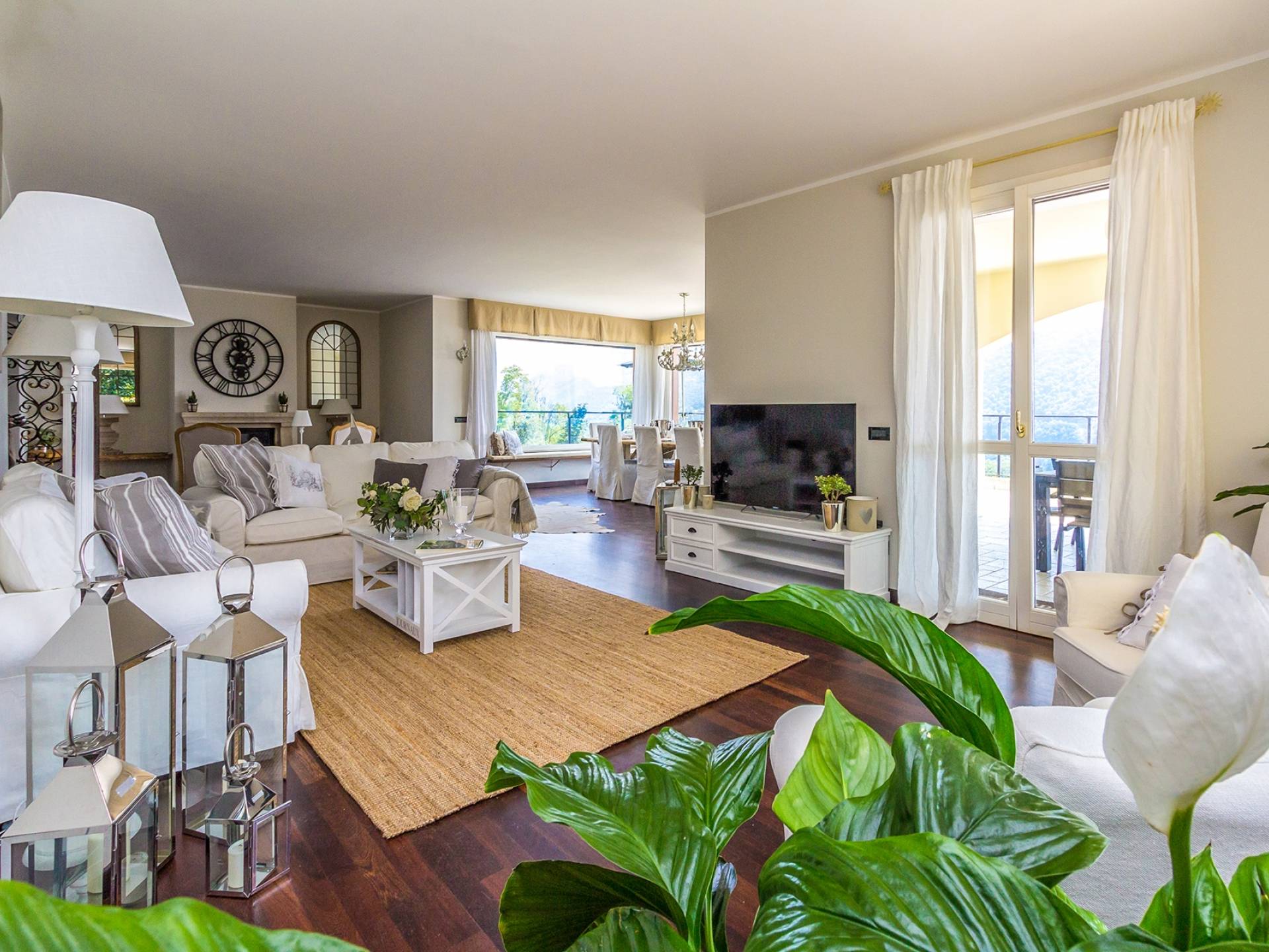 Muy habitable con su elegante sala de estar con sofás y cortinas blancas y parquet en el piso y amplias aberturas al exterior, un comedor formal perfectamente insertado en la sala de estar, una cocina completamente amueblada; ofrece relajación y tranquilidad pero también la oportunidad de pasar días en compañía, o solo, en las amplias terrazas que, en el exterior, asoman sugerentes vistas que cambian con los cambios de estación y se transforman del amanecer al atardecer.