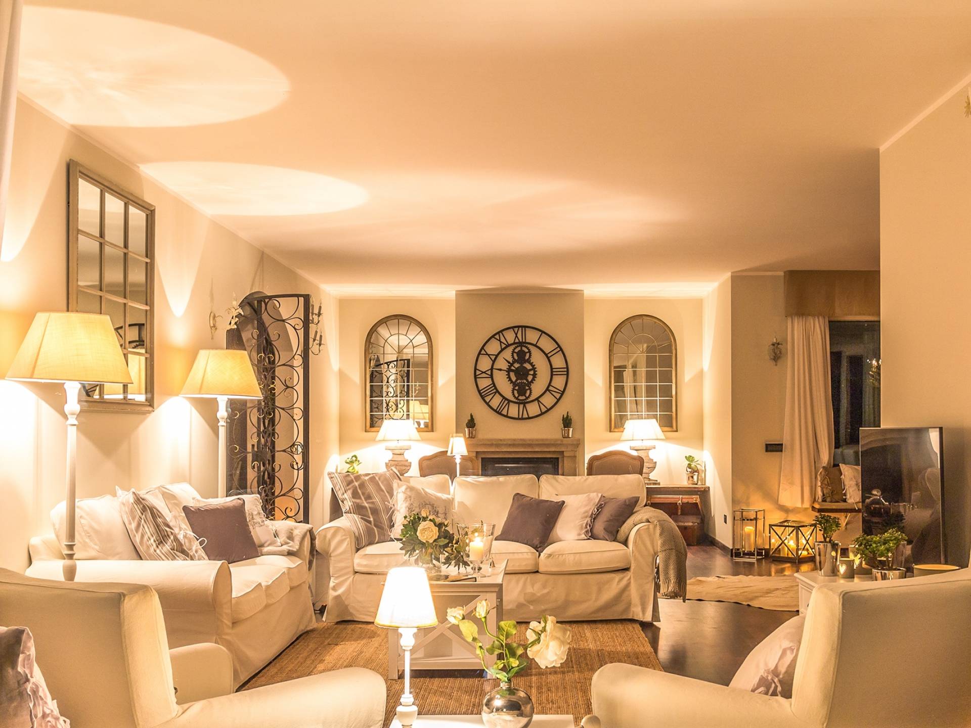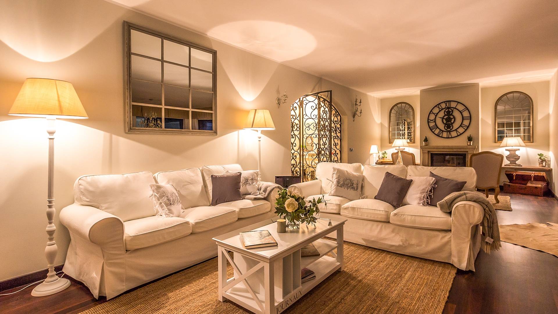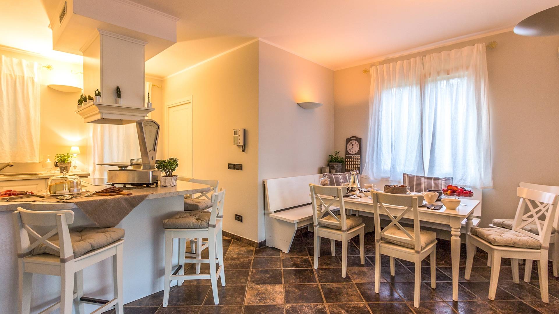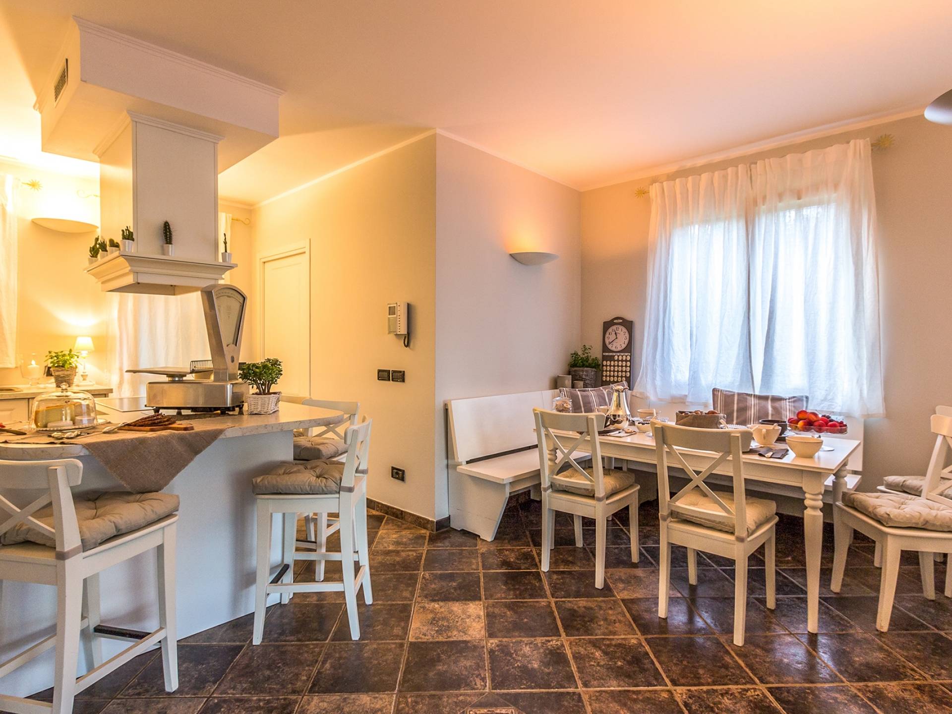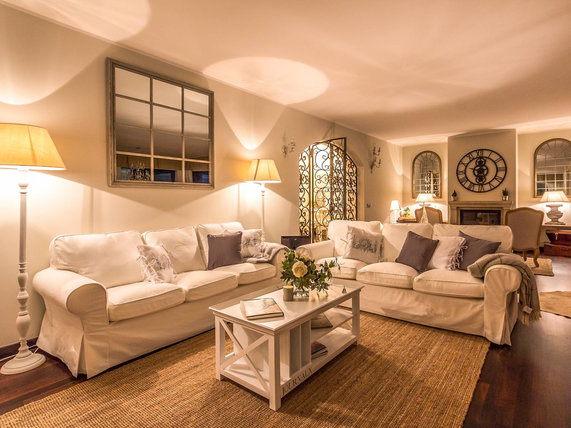 Muy habitable con su elegante sala de estar con sofás y cortinas blancas y parquet en el piso y amplias aberturas al exterior, un comedor formal perfectamente insertado en la sala de estar, una cocina completamente amueblada; ofrece relajación y tranquilidad pero también la oportunidad de pasar días en compañía, o solo, en las amplias terrazas que, en el exterior, asoman sugerentes vistas que cambian con los cambios de estación y se transforman del amanecer al atardecer.