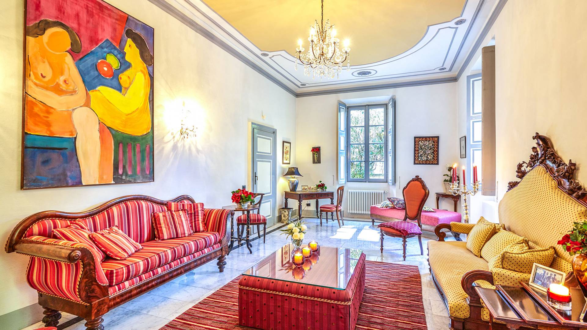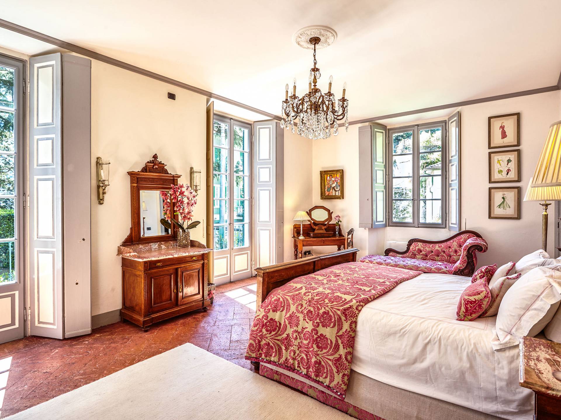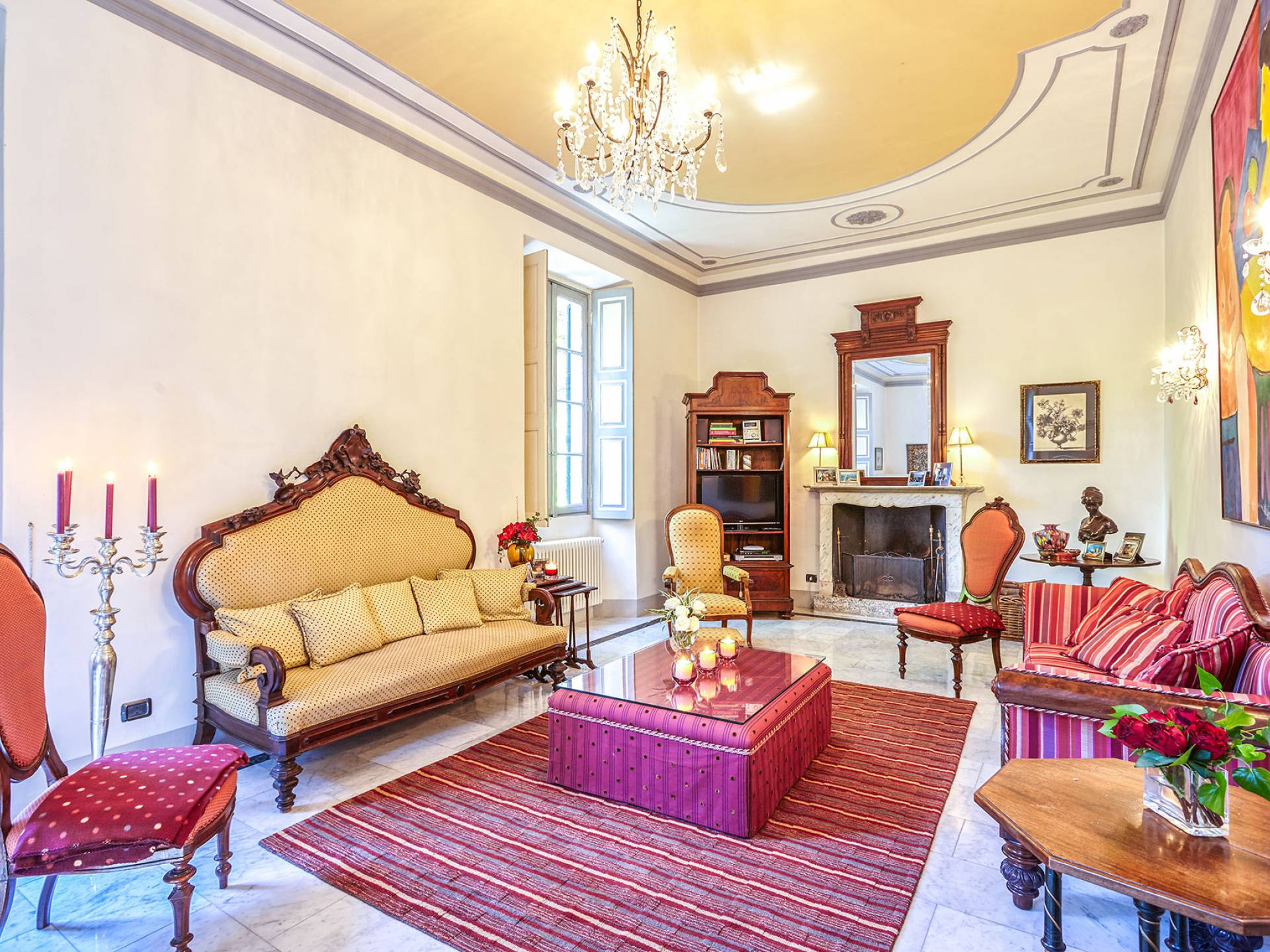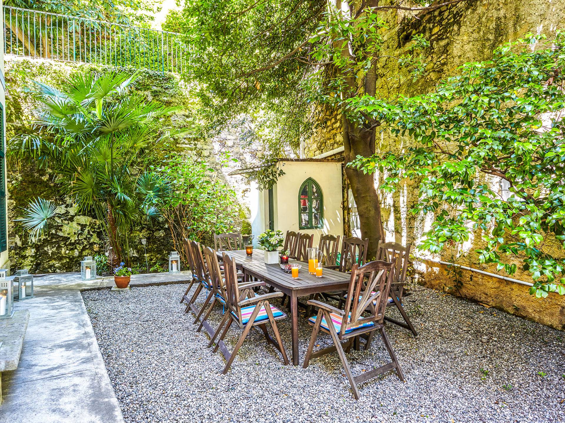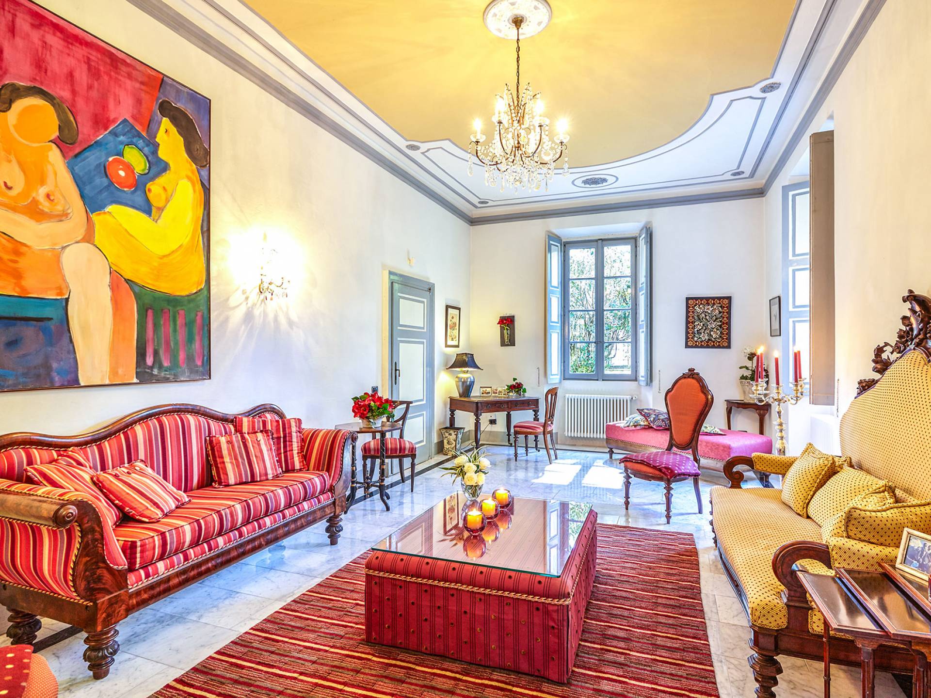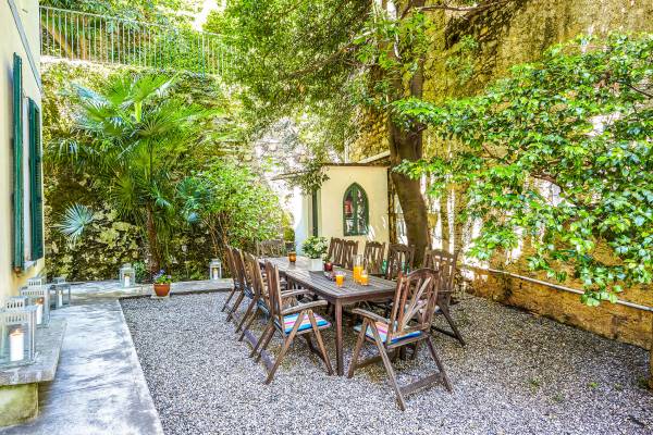 La villa histórica que data de finales del siglo XIX incluye 6 dormitorios y 4 baños y puede alojar cómodamente hasta 11 personas. Los espacios se han restaurado con mucho gusto manteniendo el encanto único de la villa, donde los elegantes muebles de época se mezclan a la perfección con acabados modernos de alta calidad. La planta baja consta de un gran hall de entrada, un gran salón con techos decorados y suelos de mármol, un comedor con capacidad para 12 personas, una cocina moderna con todas las comodidades y un baño.