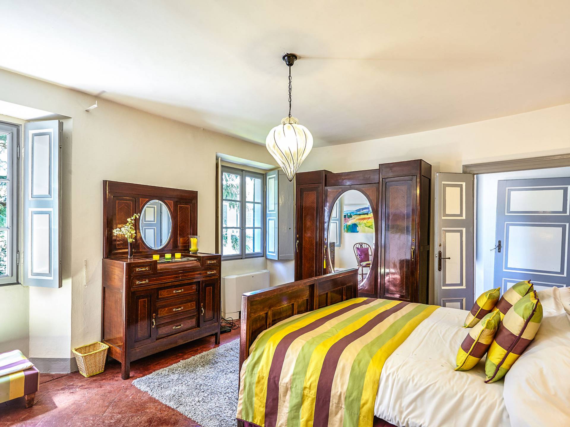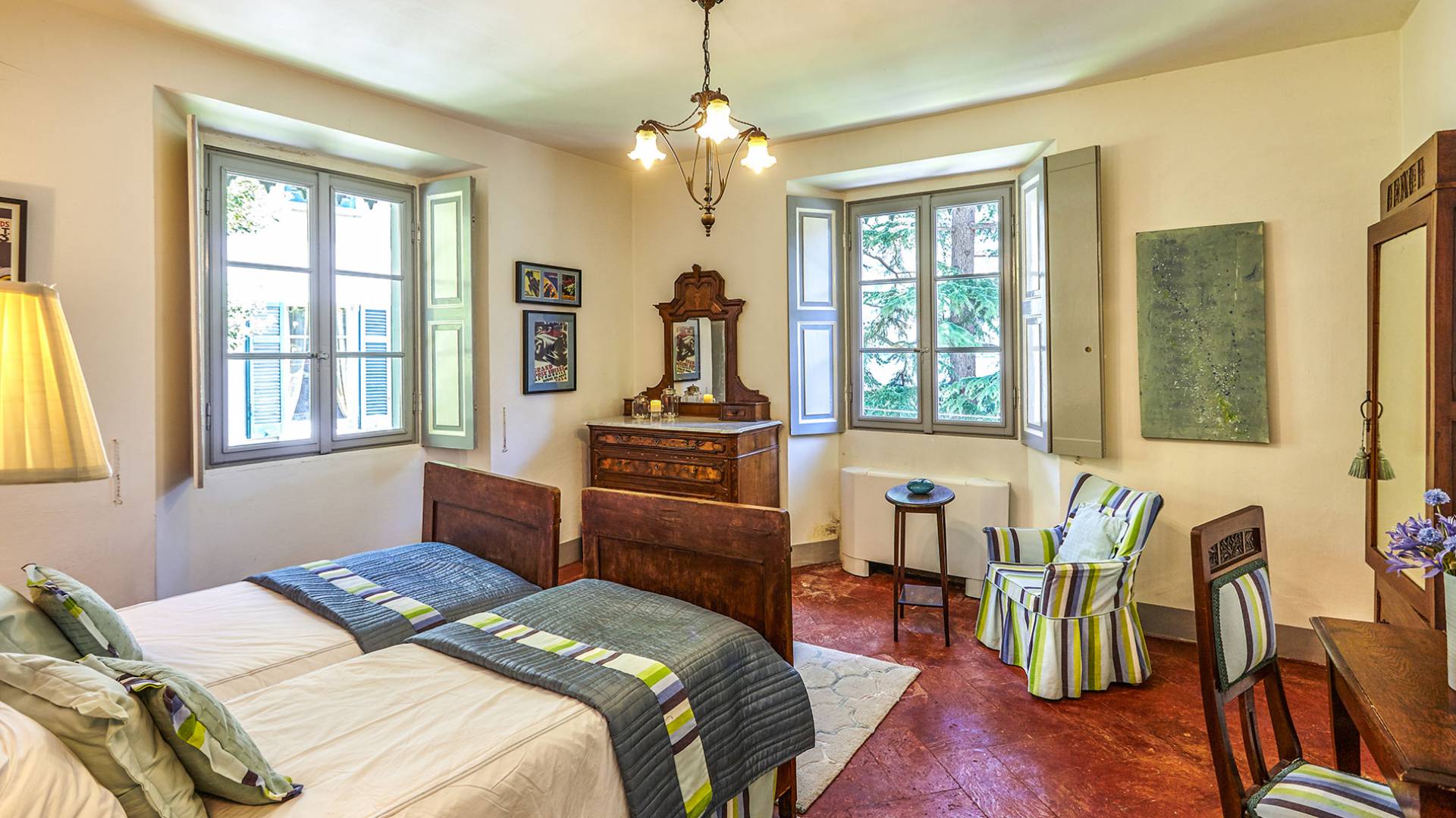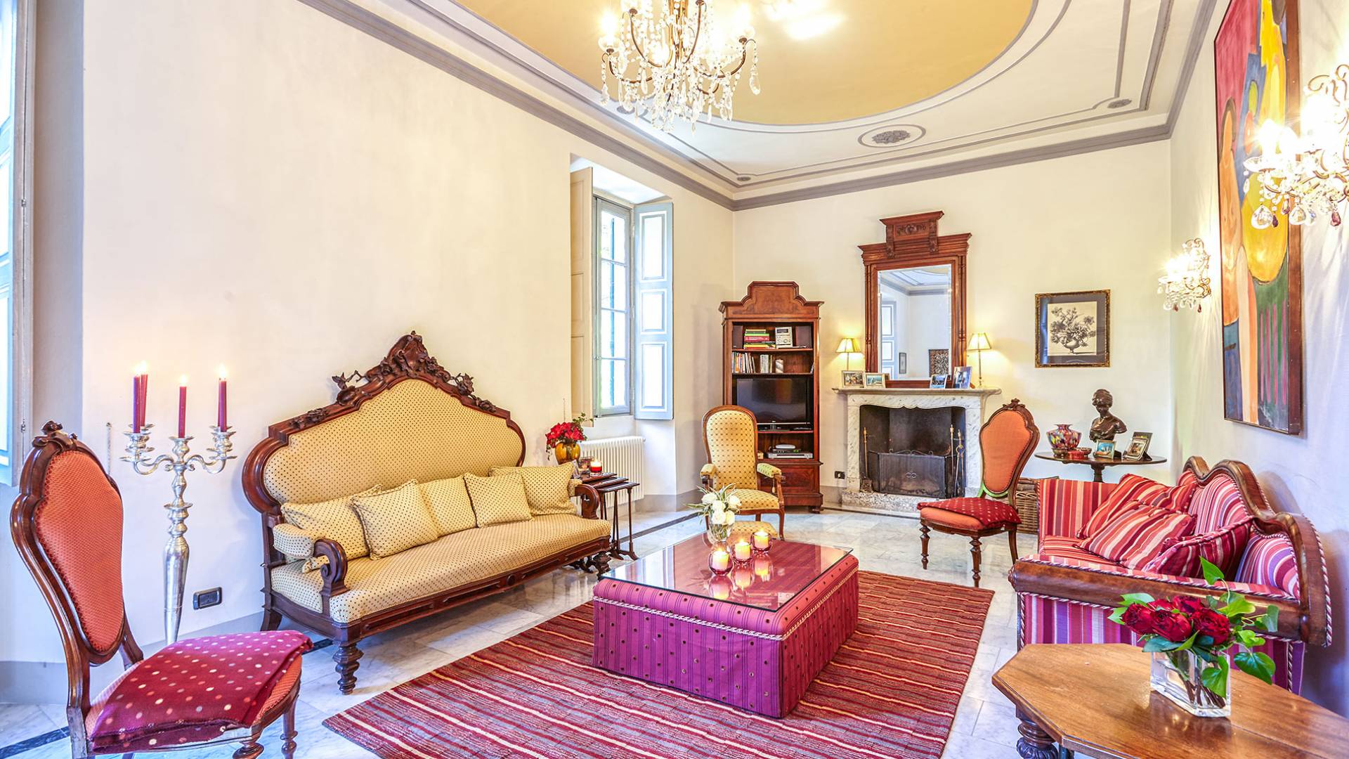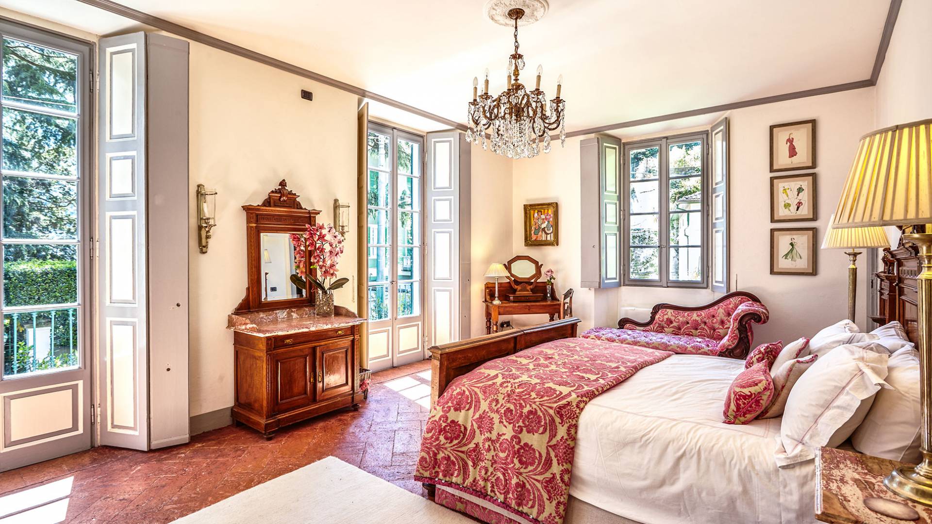 La villa histórica que data de finales del siglo XIX incluye 6 dormitorios y 4 baños y puede alojar cómodamente hasta 11 personas. Los espacios se han restaurado con mucho gusto manteniendo el encanto único de la villa, donde los elegantes muebles de época se mezclan a la perfección con acabados modernos de alta calidad. La planta baja consta de un gran hall de entrada, un gran salón con techos decorados y suelos de mármol, un comedor con capacidad para 12 personas, una cocina moderna con todas las comodidades y un baño.