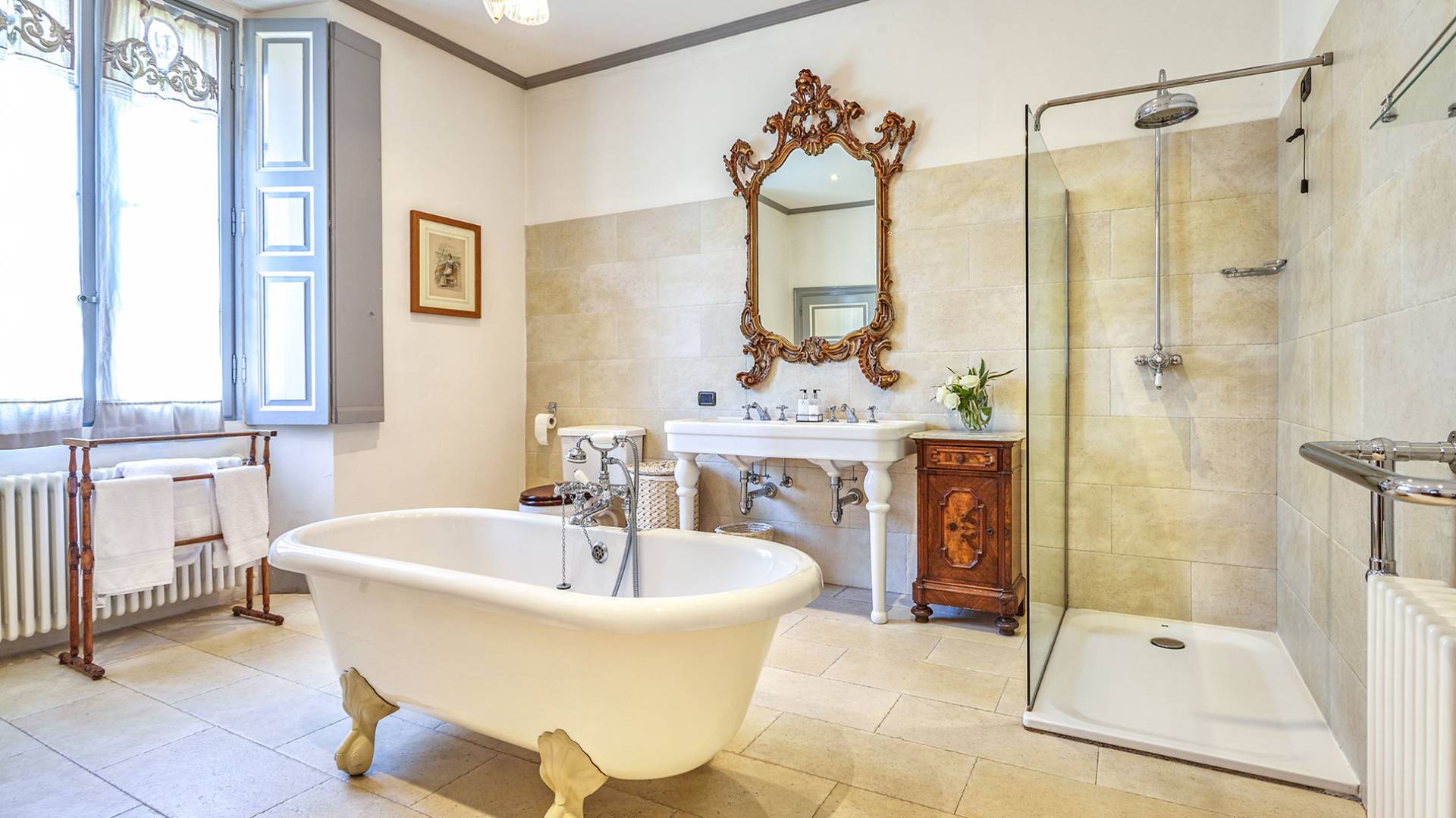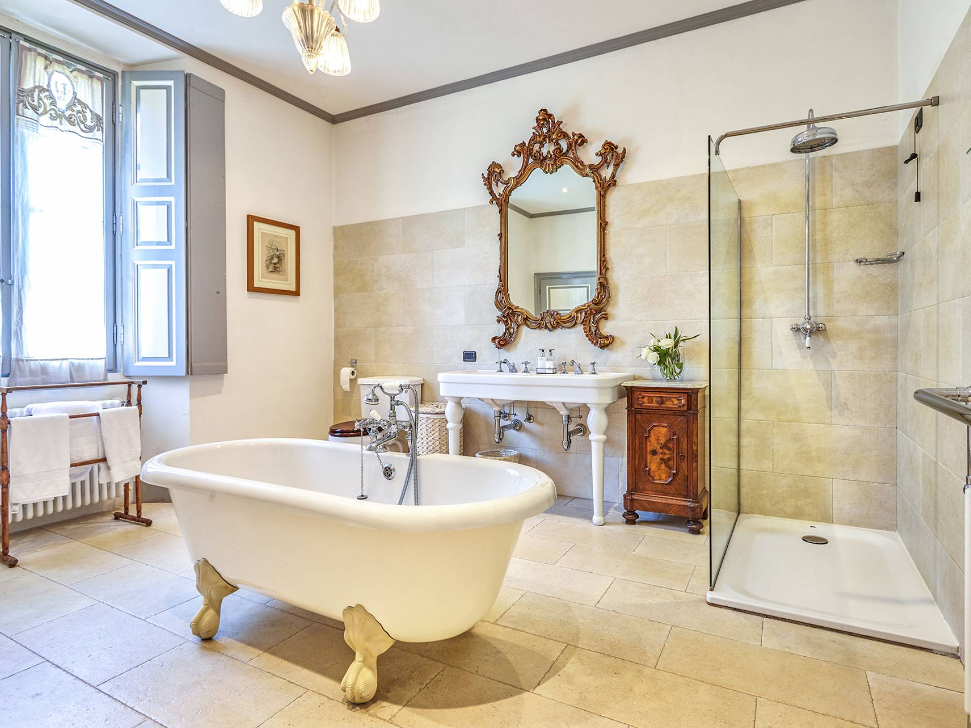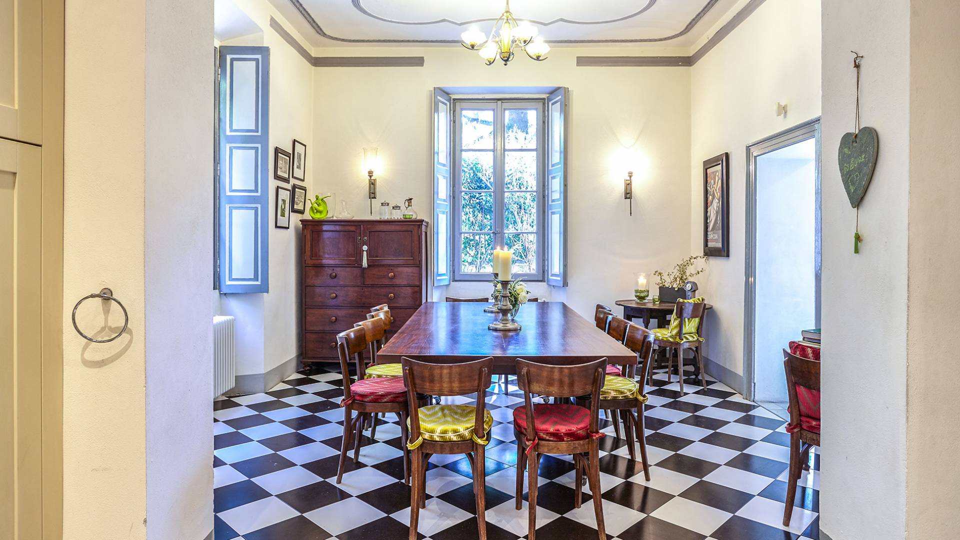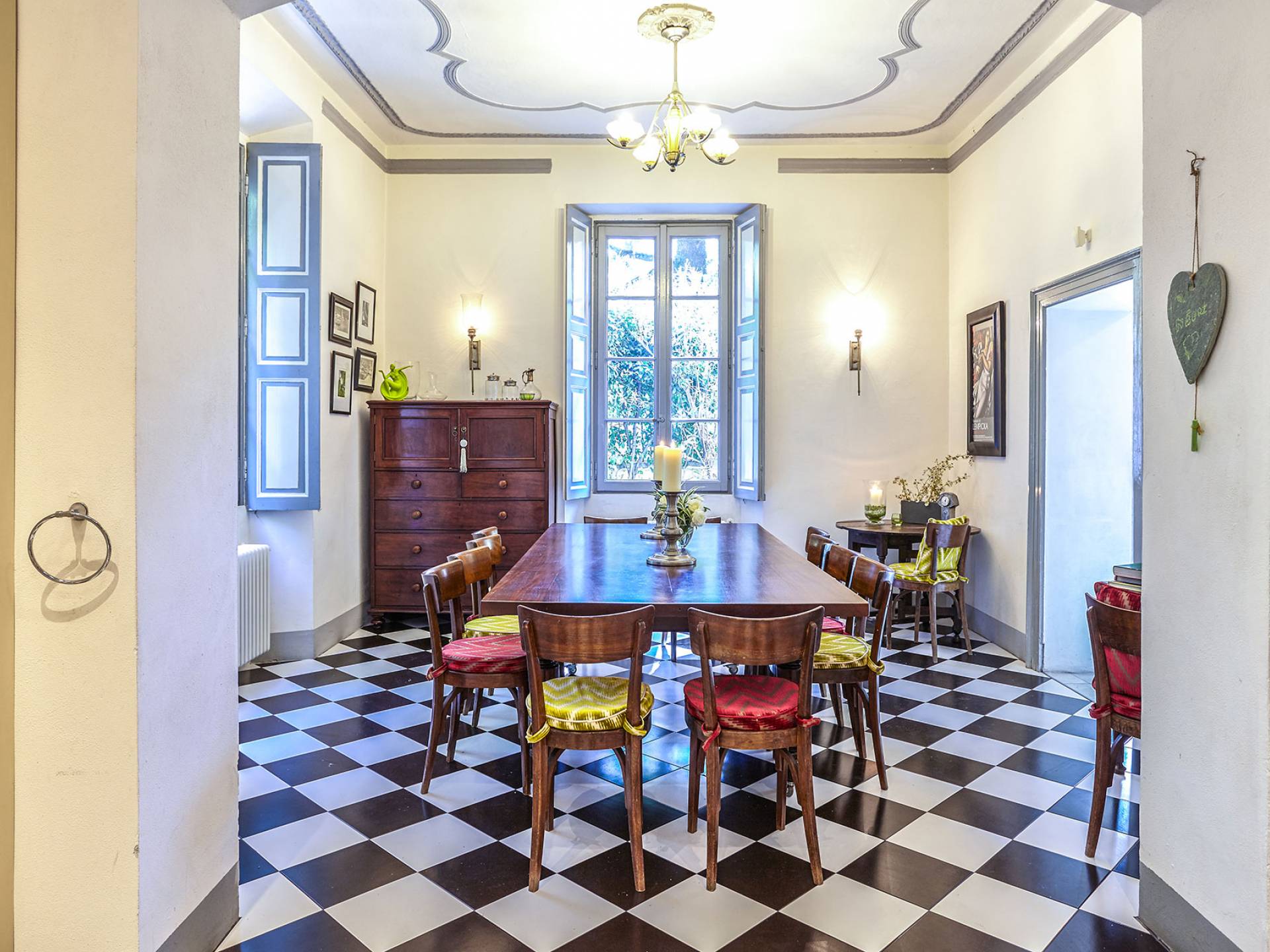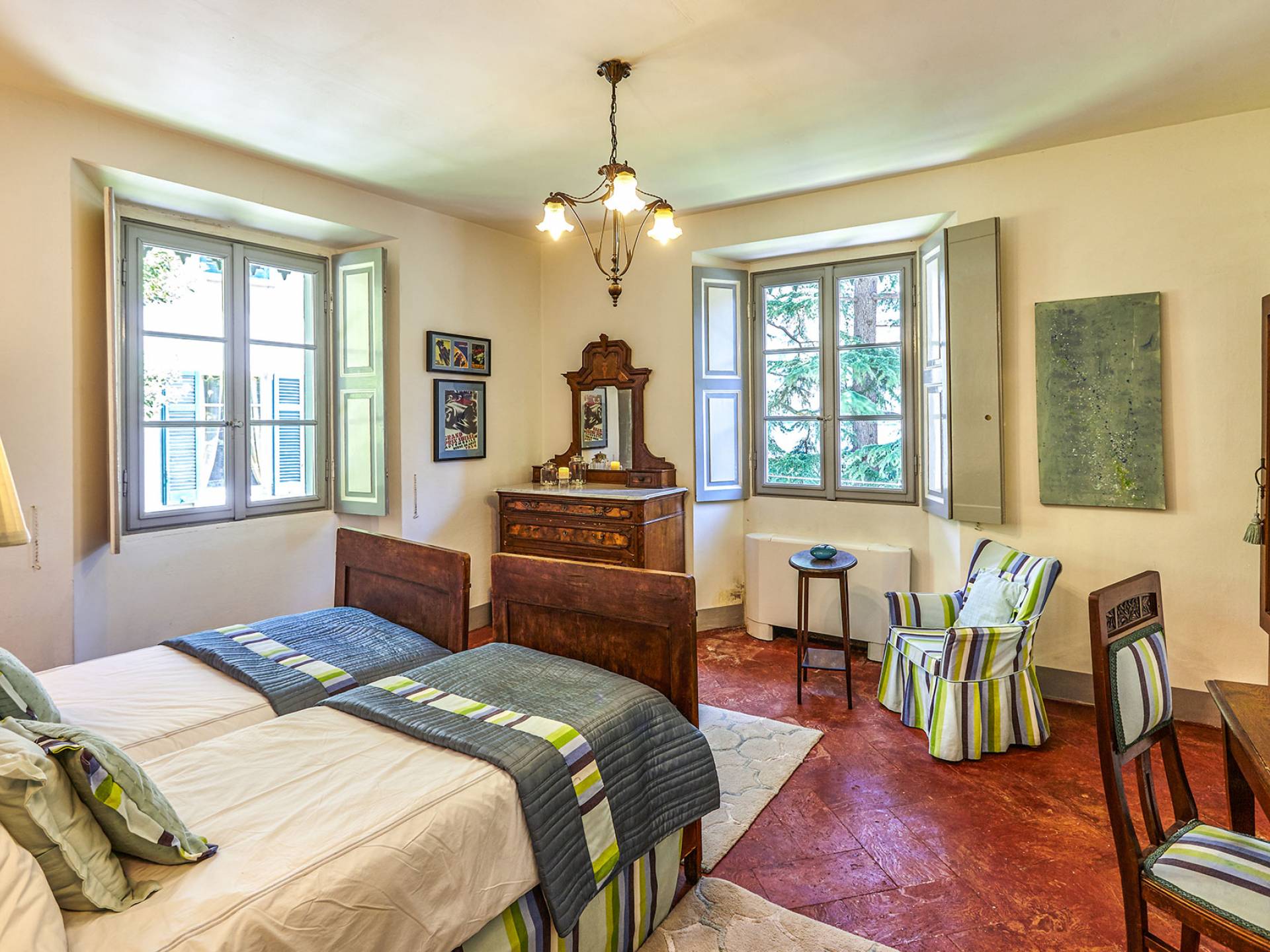 La villa histórica que data de finales del siglo XIX incluye 6 dormitorios y 4 baños y puede alojar cómodamente hasta 11 personas. Los espacios se han restaurado con mucho gusto manteniendo el encanto único de la villa, donde los elegantes muebles de época se mezclan a la perfección con acabados modernos de alta calidad. La planta baja consta de un gran hall de entrada, un gran salón con techos decorados y suelos de mármol, un comedor con capacidad para 12 personas, una cocina moderna con todas las comodidades y un baño.