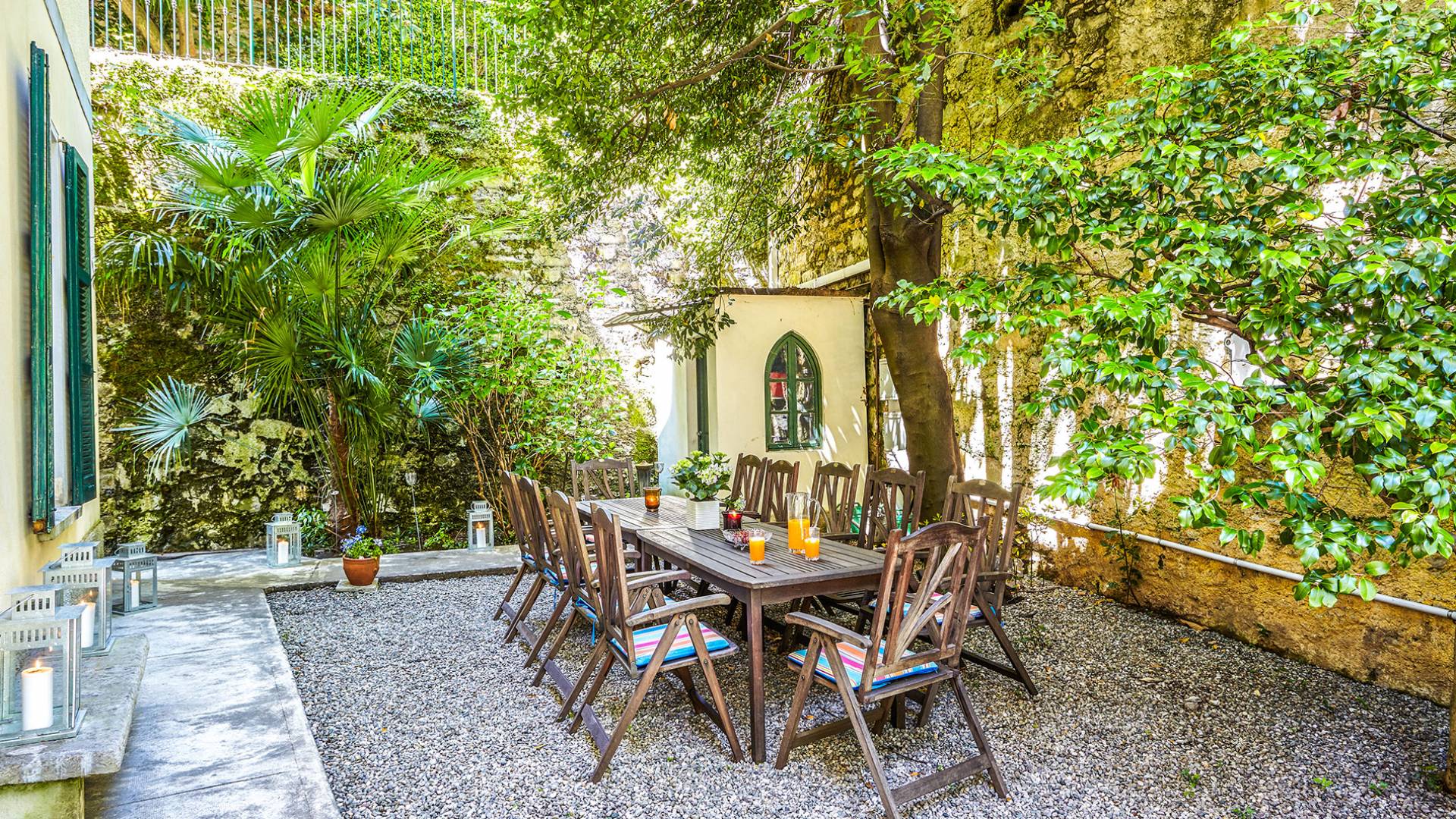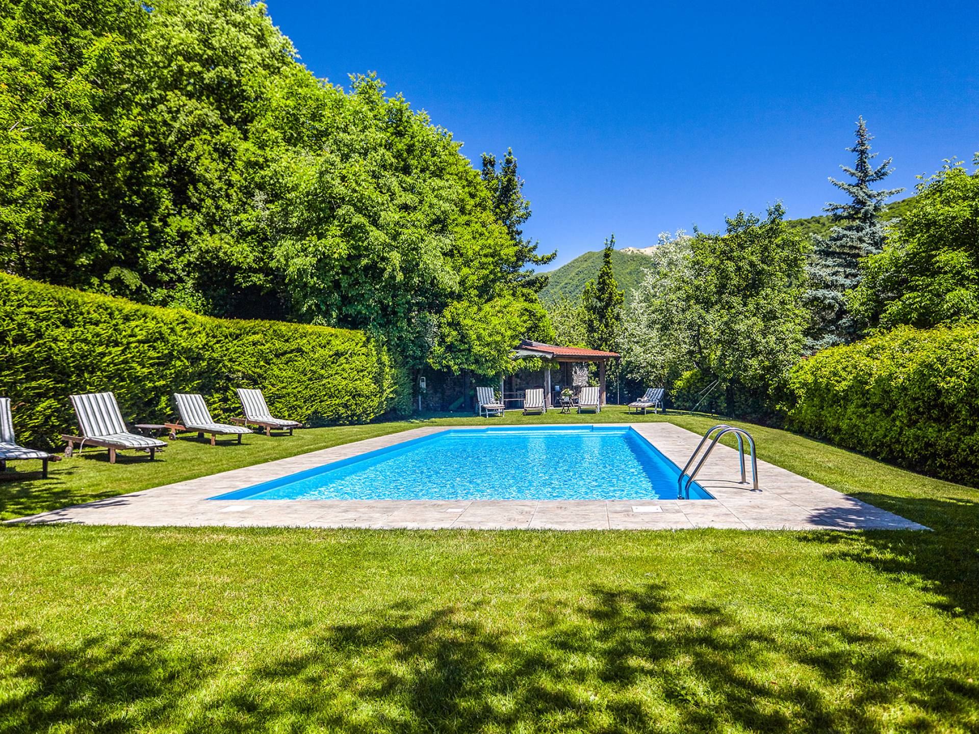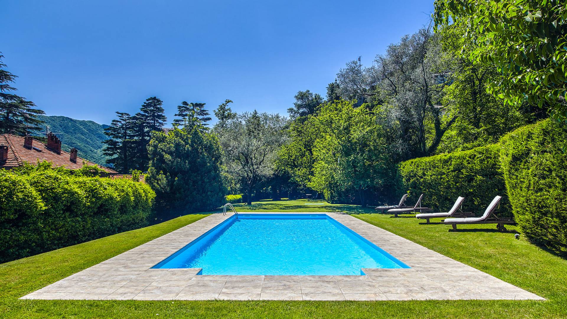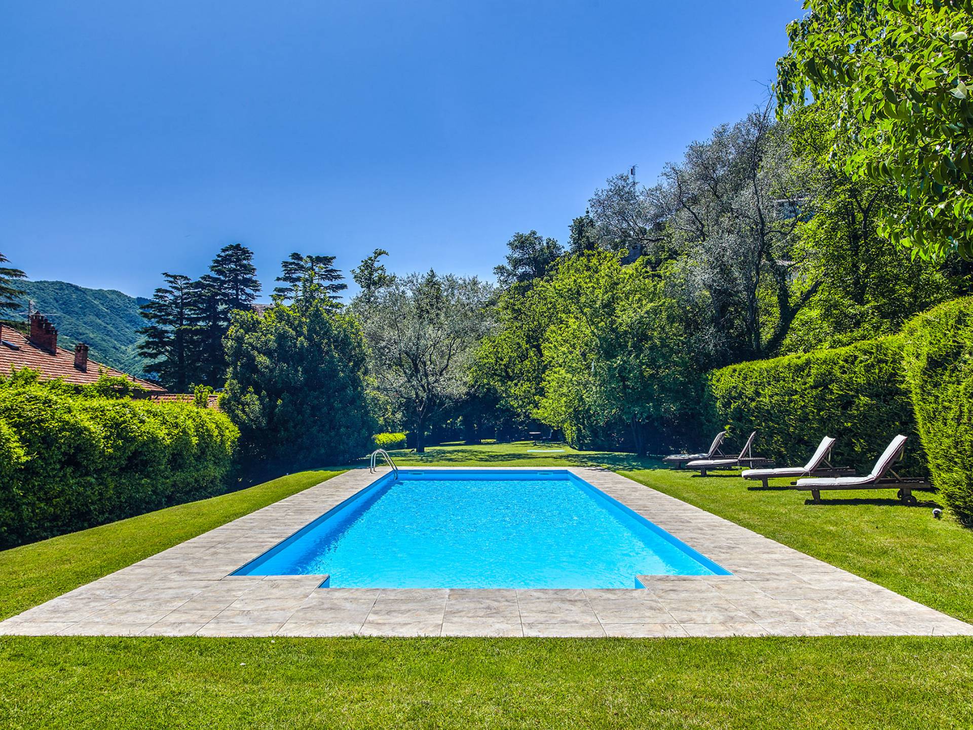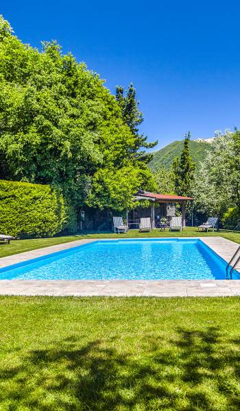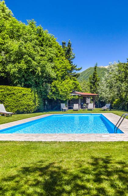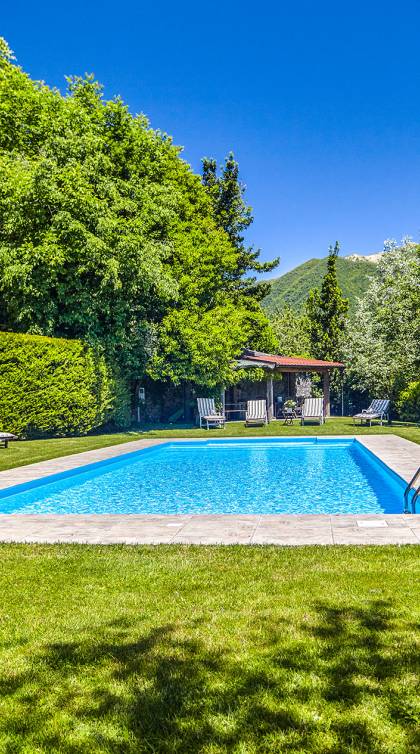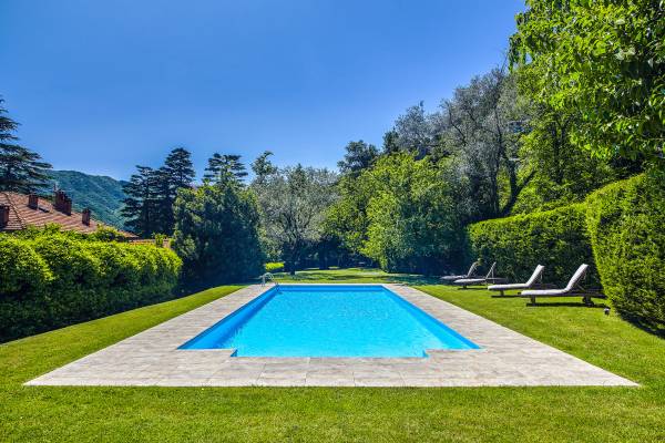 Villa Negri Lake Como cuenta con impresionantes jardines y terrenos que ofrecen total privacidad y aislamiento, lo cual es una rareza en esta parte particular del lago. El césped grande y muy bien cuidado donde se encuentra la hermosa piscina con vistas al lago es una verdadera joya donde los huéspedes pueden pasar horas y horas tomando el sol junto a la piscina o disfrutando de una cena al aire libre en los numerosos lugares para cenar al aire libre que se encuentran dentro de los terrenos del propiedad.