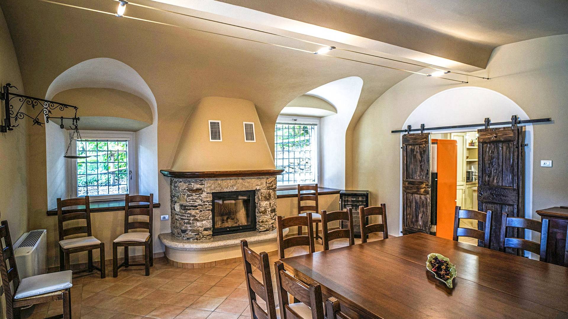 El espacioso salón común (75 m²) con una gran mesa de comedor, cocina, muebles elegantes, TV vía satélite, reproductor de DVD y acceso inalámbrico a Internet es el lugar ideal para celebrar reuniones de negocios y fiestas privadas para familiares y amigos. . Se pueden organizar degustaciones de excelentes vinos italianos en su bodega privada. En el exterior encontrará un hermoso patio interior con una fuente y una gran terraza con una mesa y tumbonas para que pueda tomar el sol y quedar hipnotizado por la espléndida vista sobre el lago. Alrededor de la villa hay un gran parque verde (8000 m²) con barbacoa y mesas.