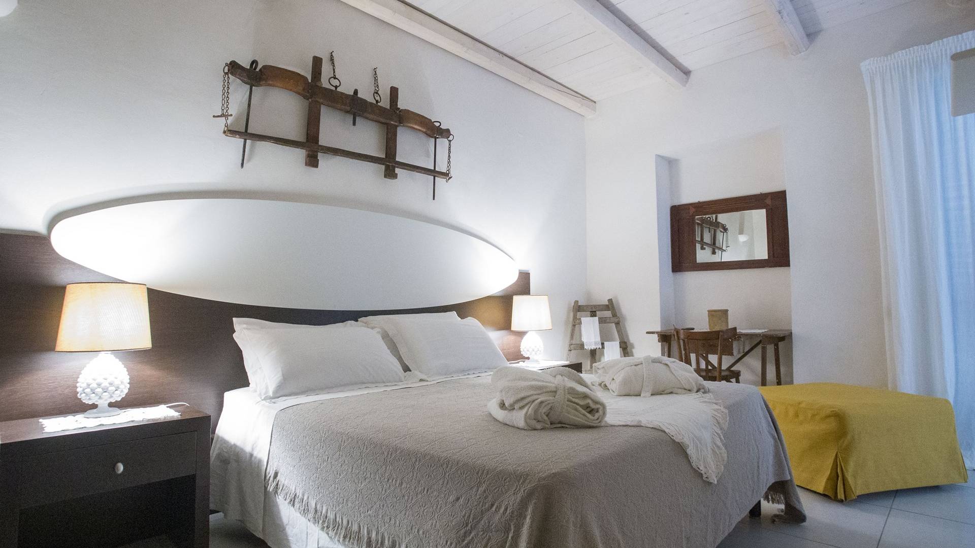 En el interior, las antiguas caballerizas de la casa, que antes daban a un patio donde se trabajaban los productos típicos de la tierra y la ganadería, se han convertido ahora en un lugar refinado y agradable. Aquí sentirás en el aire los aromas de tomillo, enebro y romero, las mismas hierbas aromáticas que dan nombre a habitaciones acogedoras y muy espaciosas, todas equipadas con todas las comodidades. Las habitaciones, que también son accesibles para sillas de ruedas, incluyen una cocina con nevera. En general, la estructura puede acomodar hasta 16 invitados.