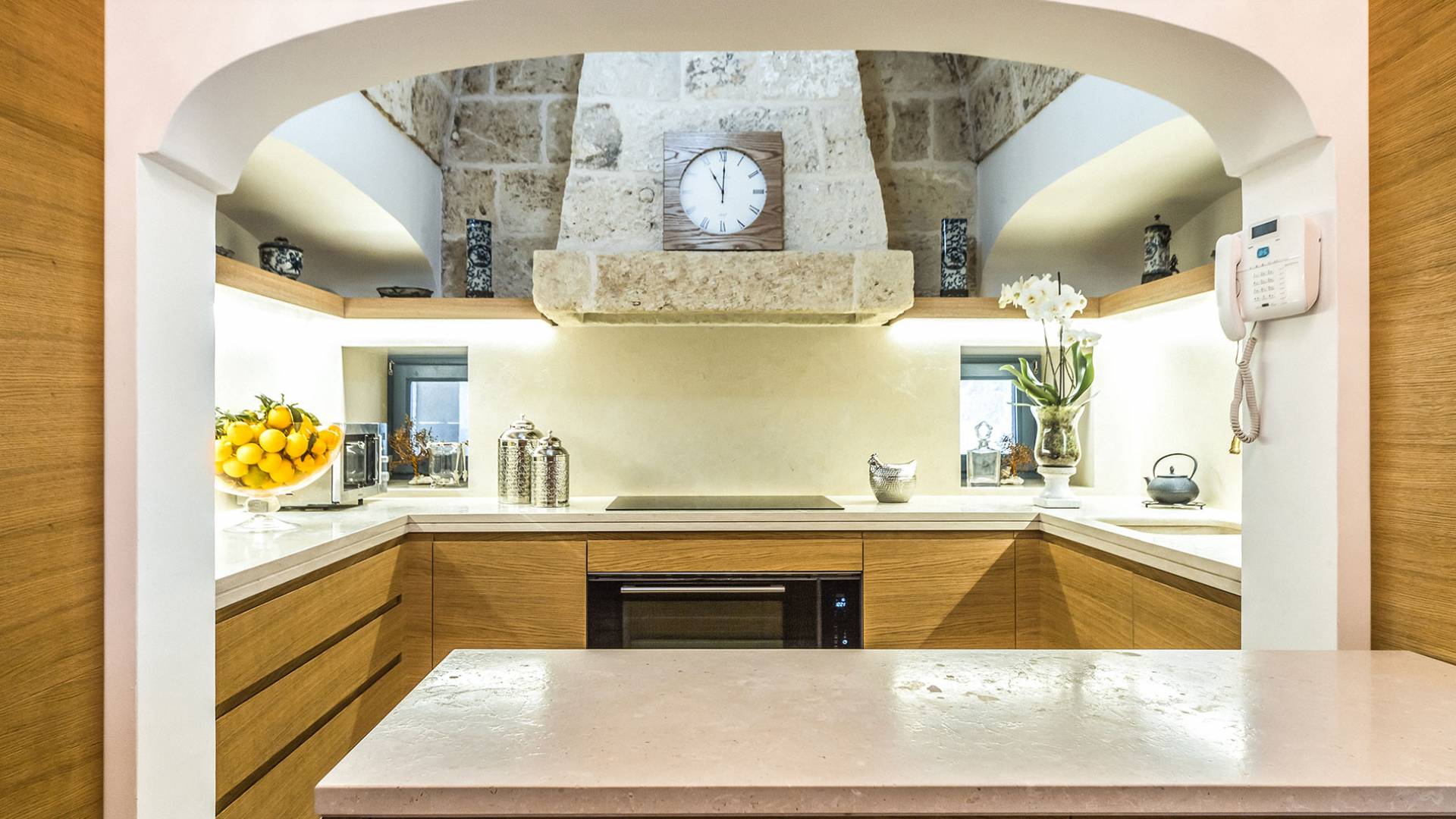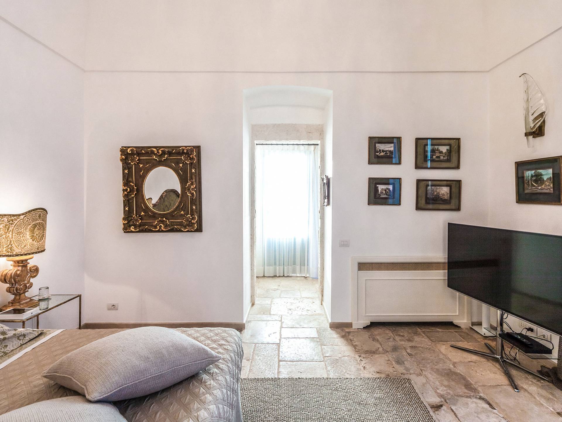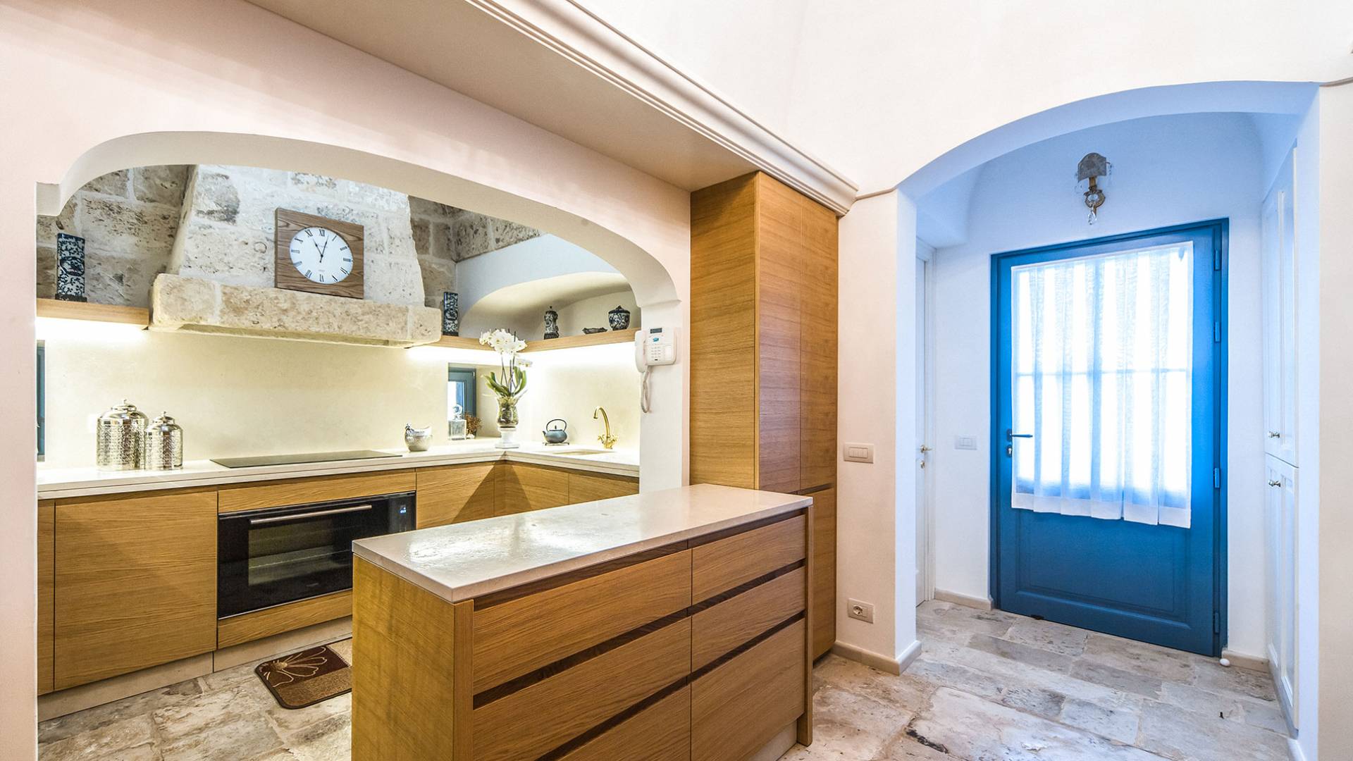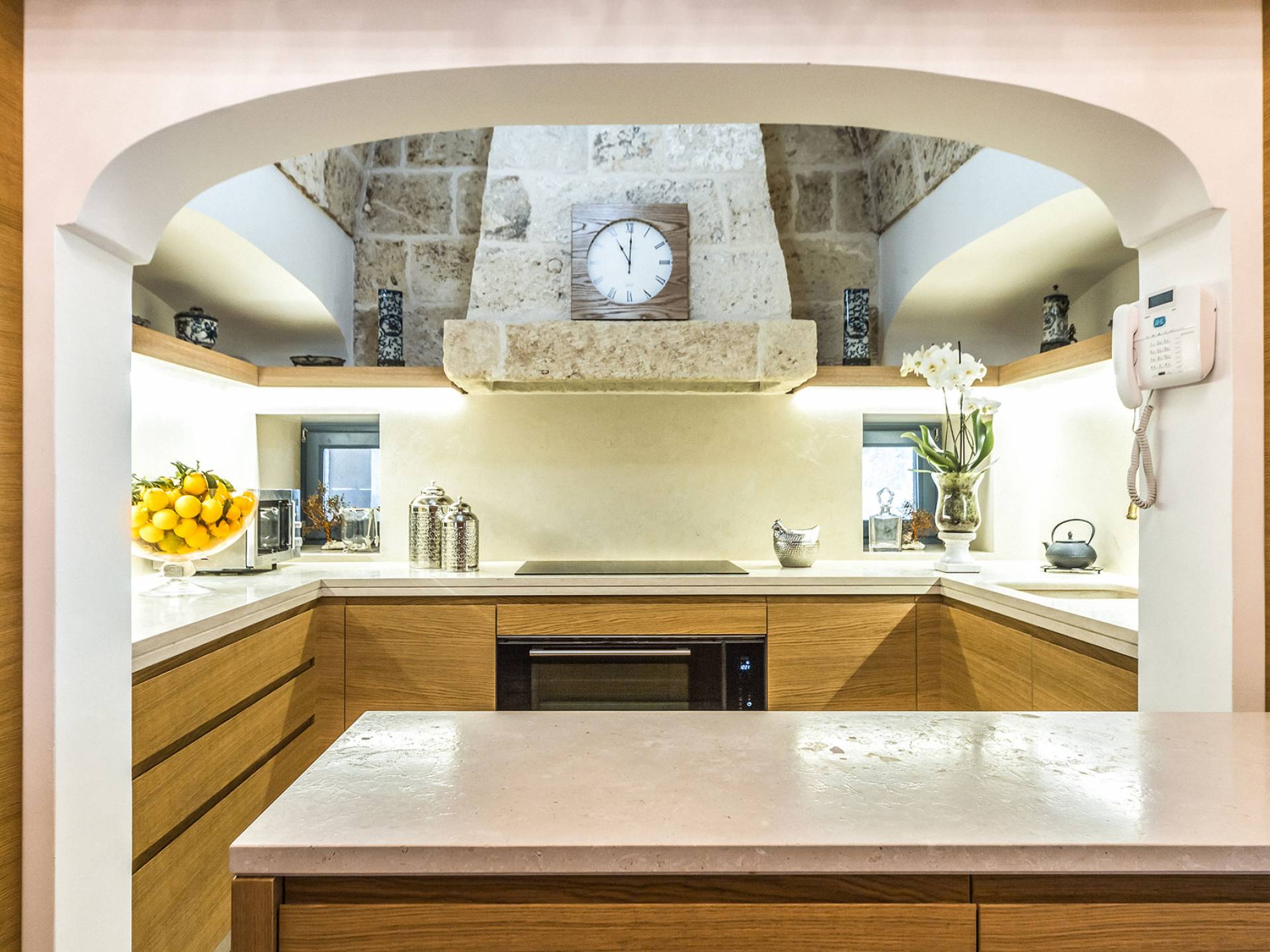 El diseño de la casa, abordado con investigación en el contexto histórico, da como resultado un estilo moderno con pisos de piedra originales, tableros de madera de calidad y mármol. Las escaleras rústicas y los techos tradicionales de "botte" de Apulia perfectamente conservados le dan un toque característico a los interiores. La escalera de piedra y los pisos son originales, creando una impresionante yuxtaposición con muebles de diseño.
