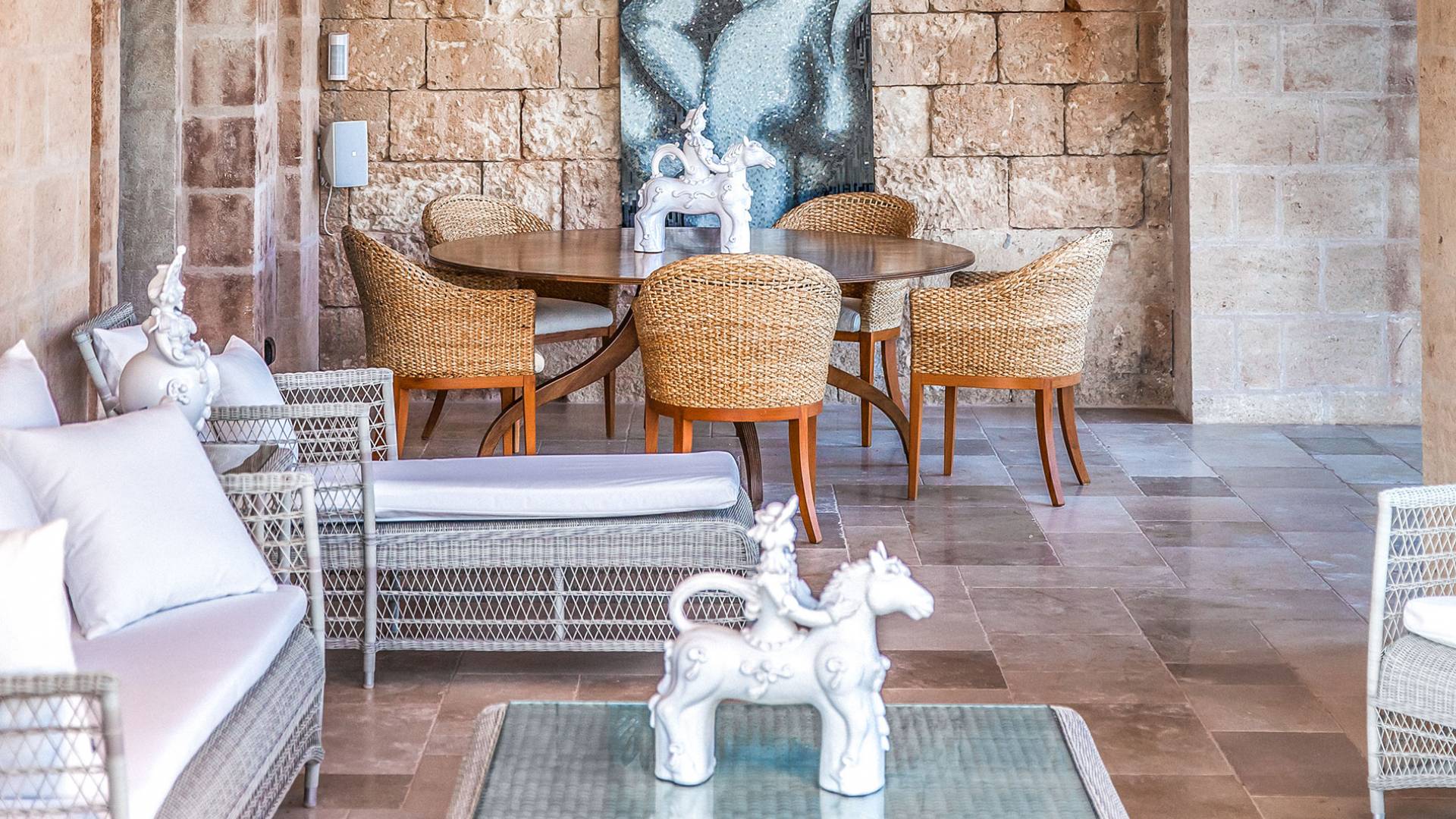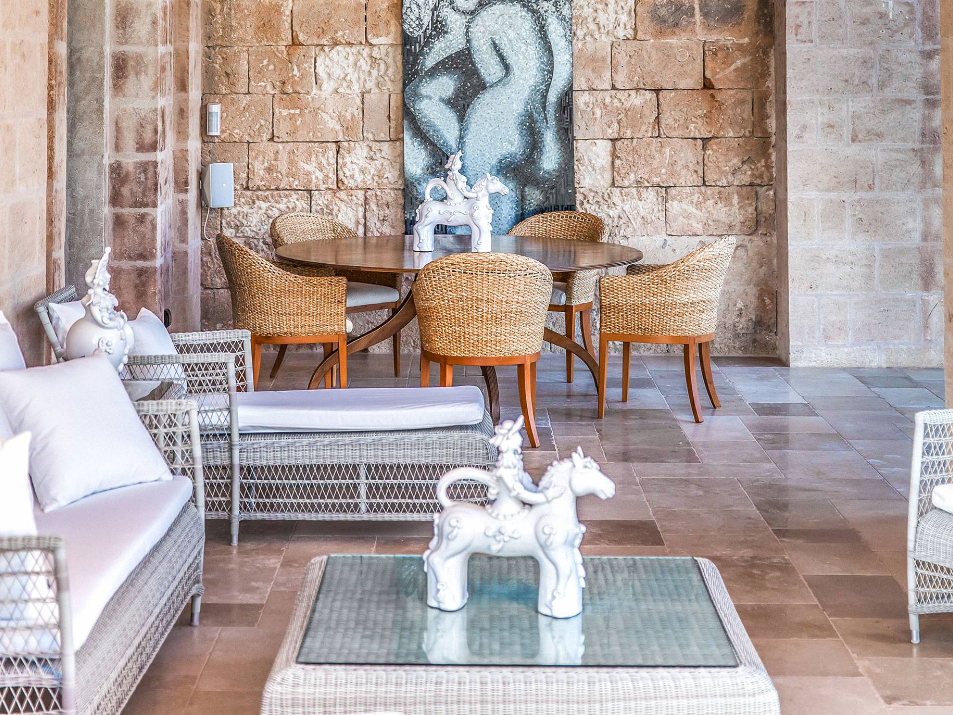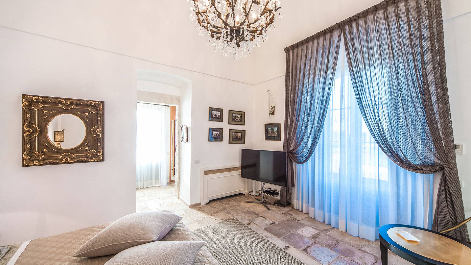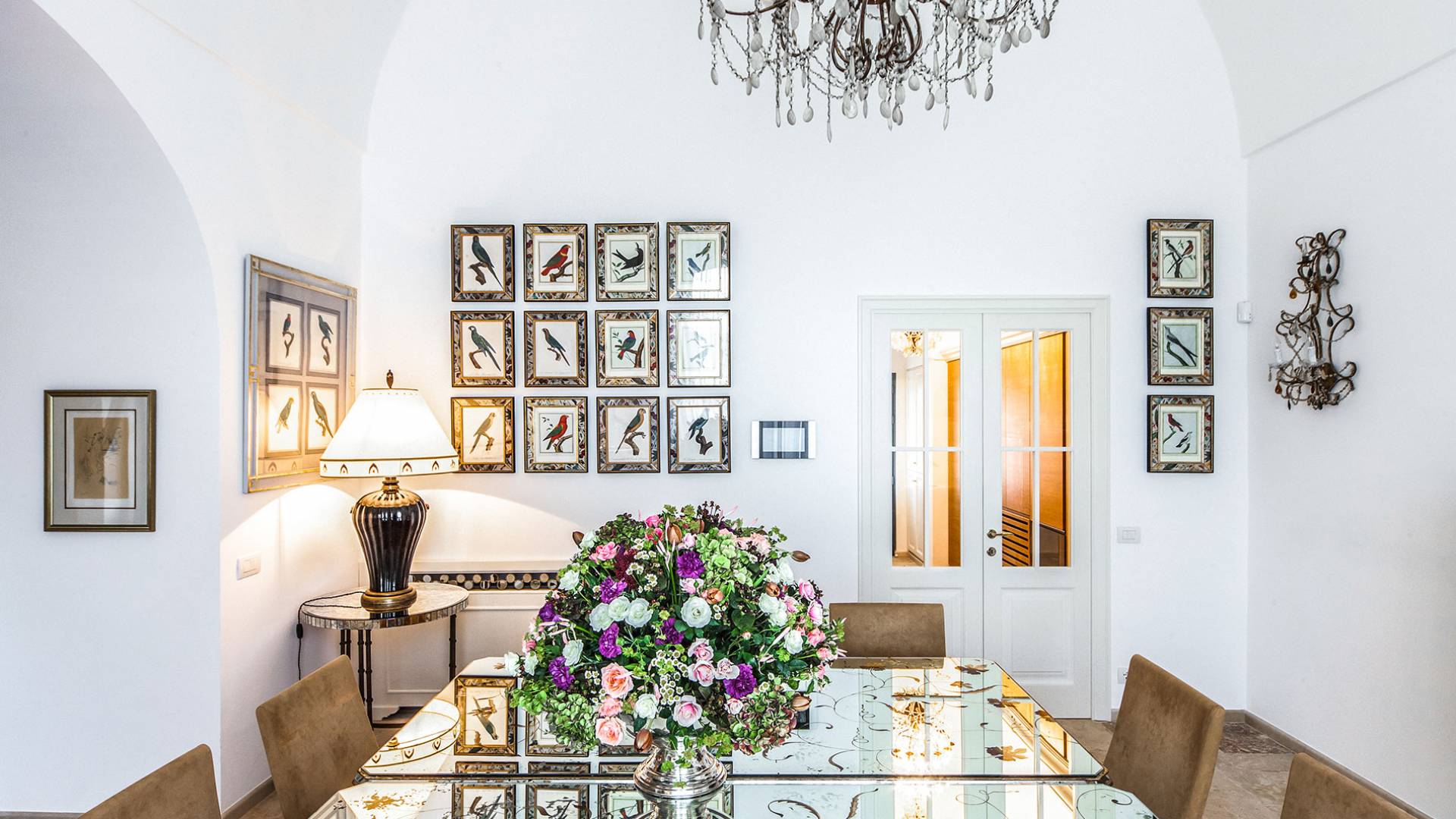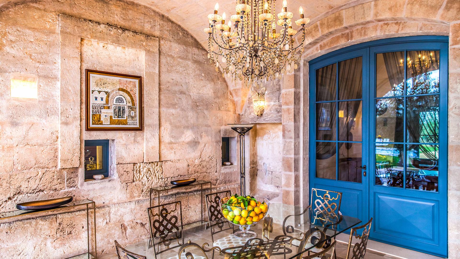 El diseño de la casa, abordado con investigación en el contexto histórico, da como resultado un estilo moderno con pisos de piedra originales, tableros de madera de calidad y mármol. Las escaleras rústicas y los techos tradicionales de "botte" de Apulia perfectamente conservados le dan un toque característico a los interiores. La escalera de piedra y los pisos son originales, creando una impresionante yuxtaposición con muebles de diseño.