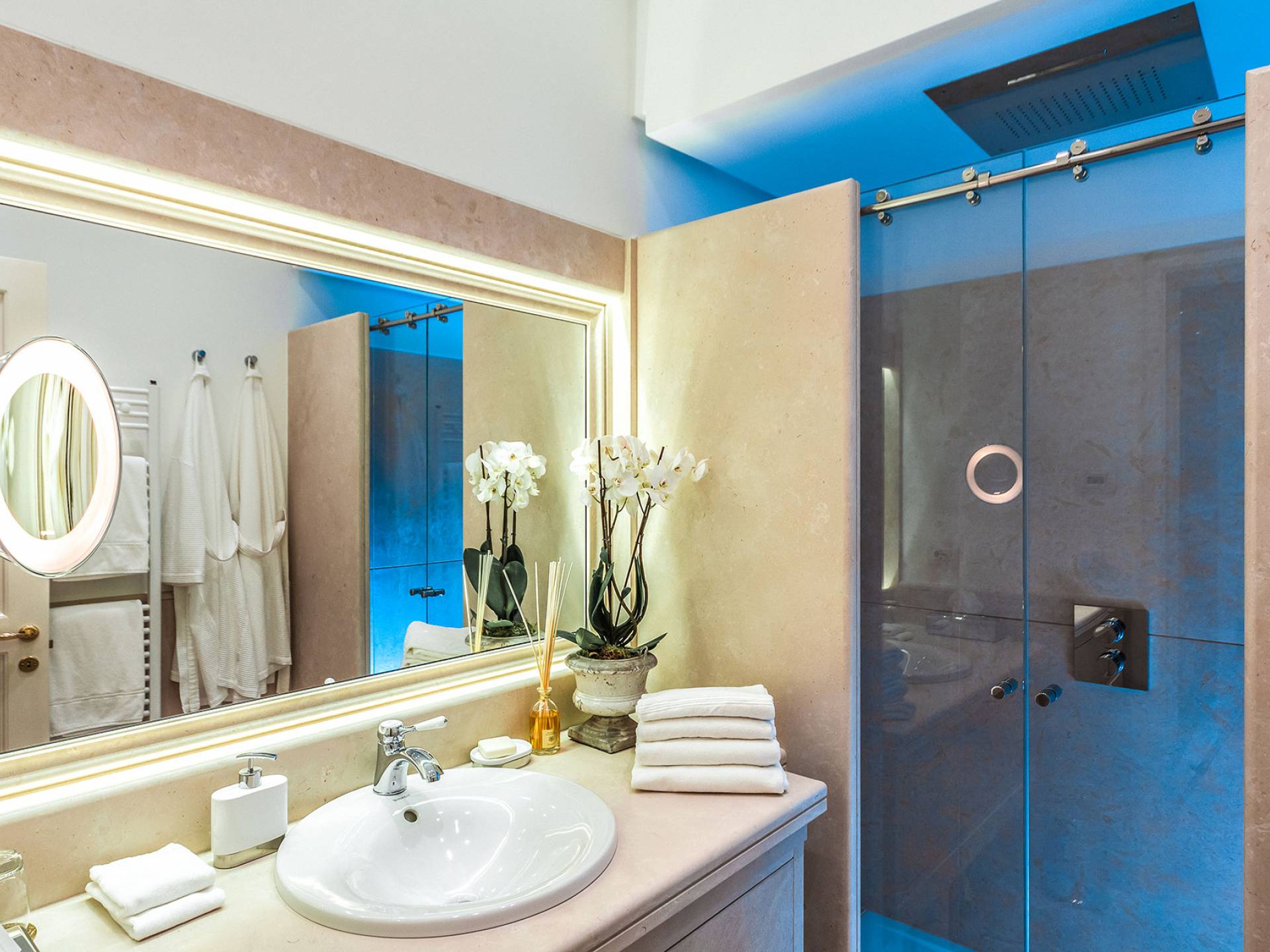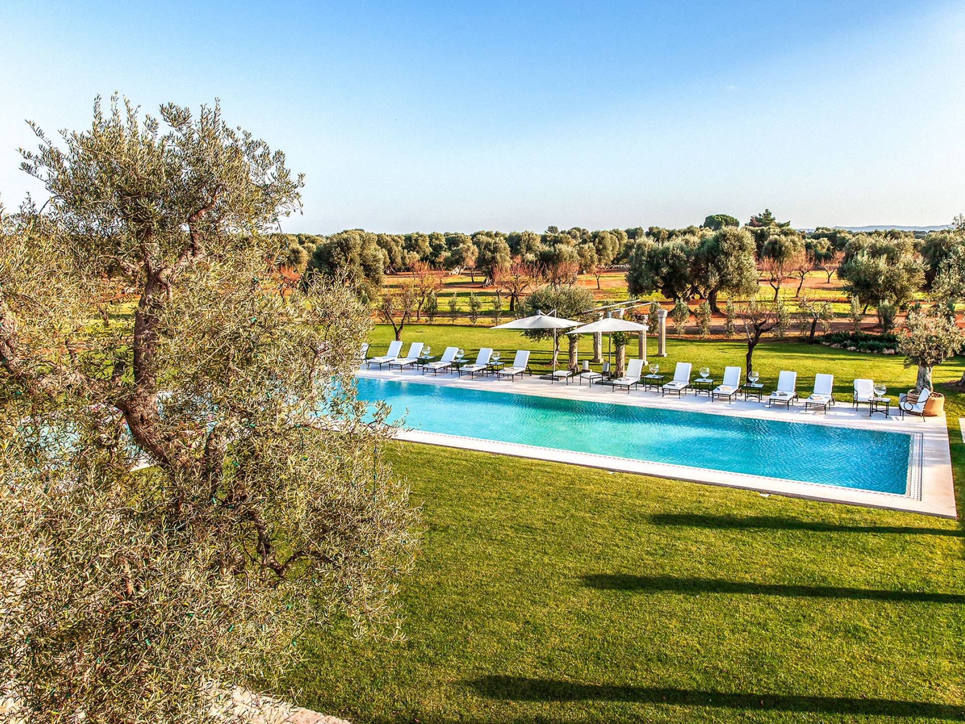 En el terreno, hay una piscina climatizada en forma de "L", un solárium con tumbonas para todos los huéspedes, un huerto y varias áreas al aire libre junto con un bar externo. Escondida, pero muy cerca del centro de la ciudad, esta villa ofrece cinco habitaciones decoradas con un estilo elegante con relajantes paredes blancas, telas contemporáneas y varios muebles hechos a medida por artesanos italianos locales, incluidos 80.000 metros cuadrados de terreno privado y una gran área de estacionamiento.