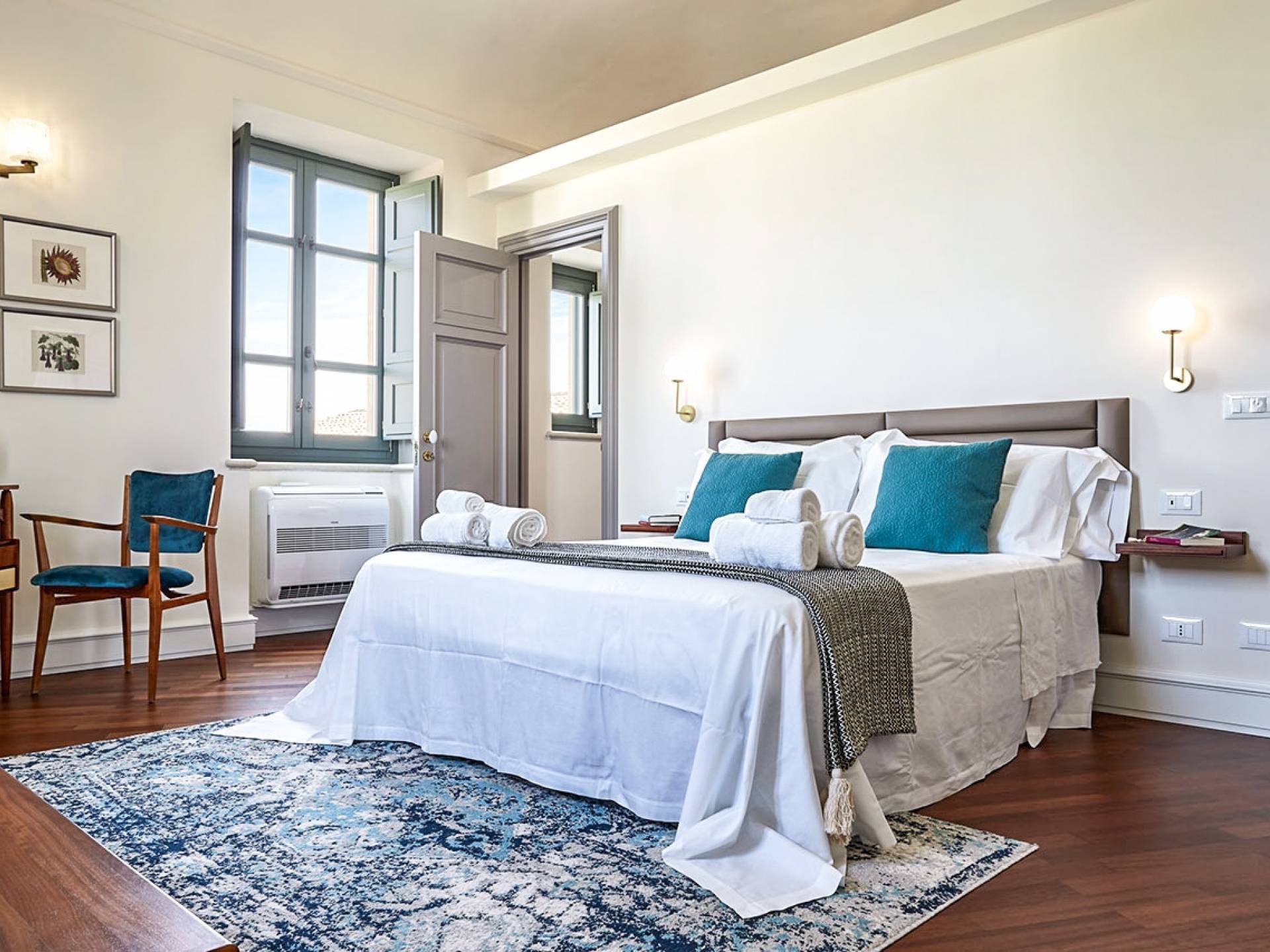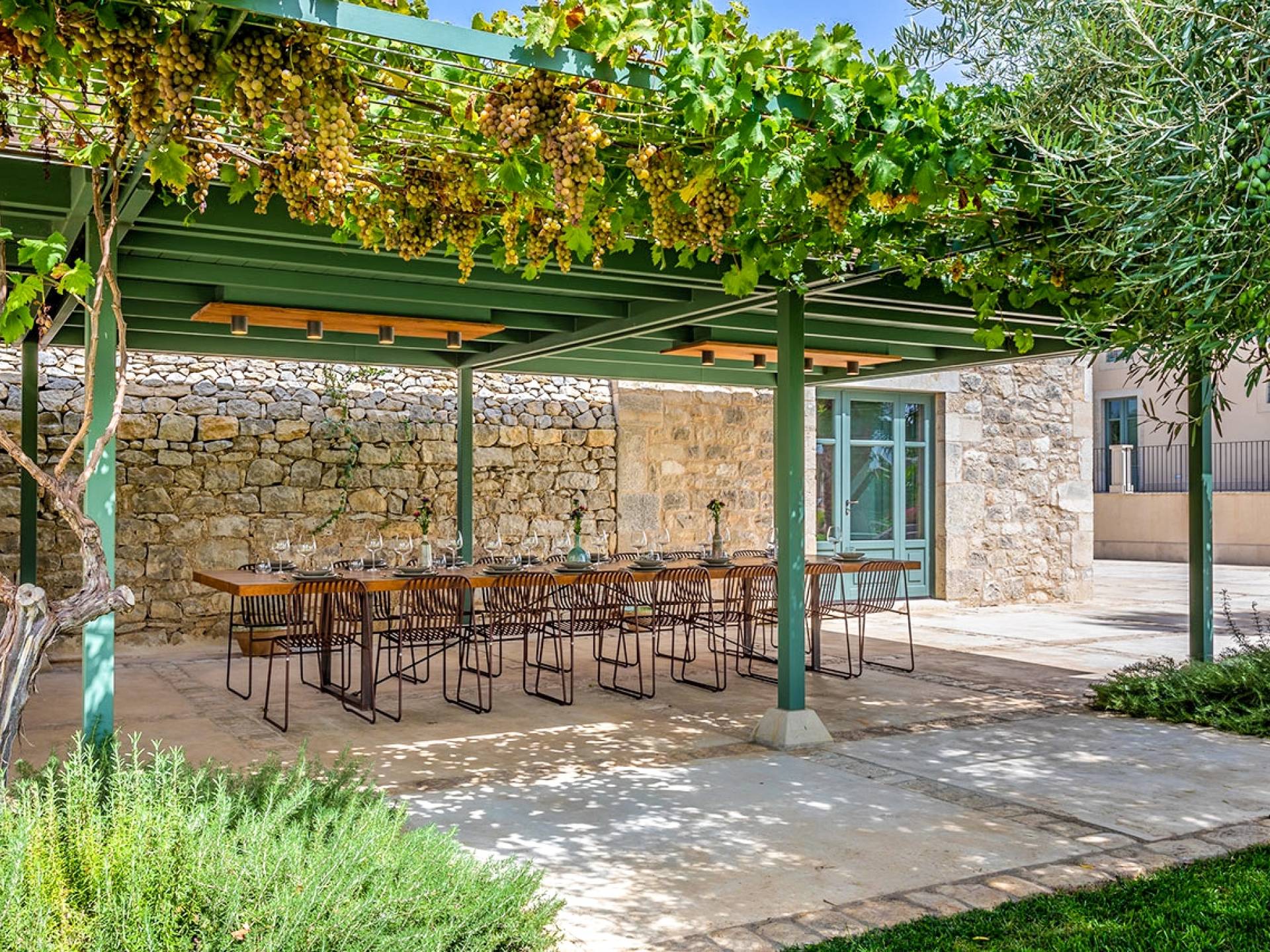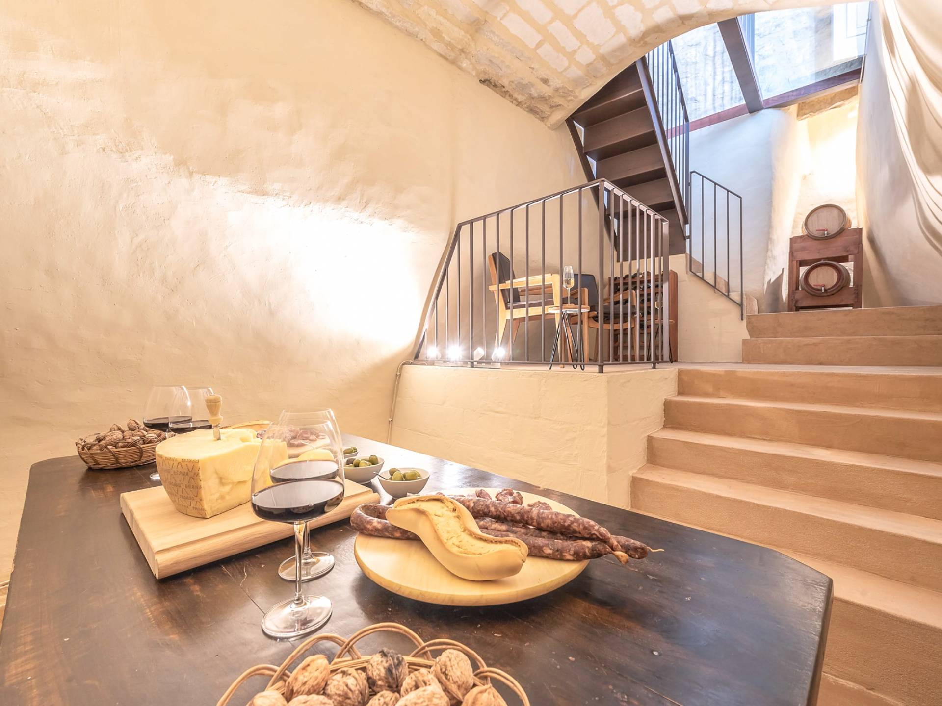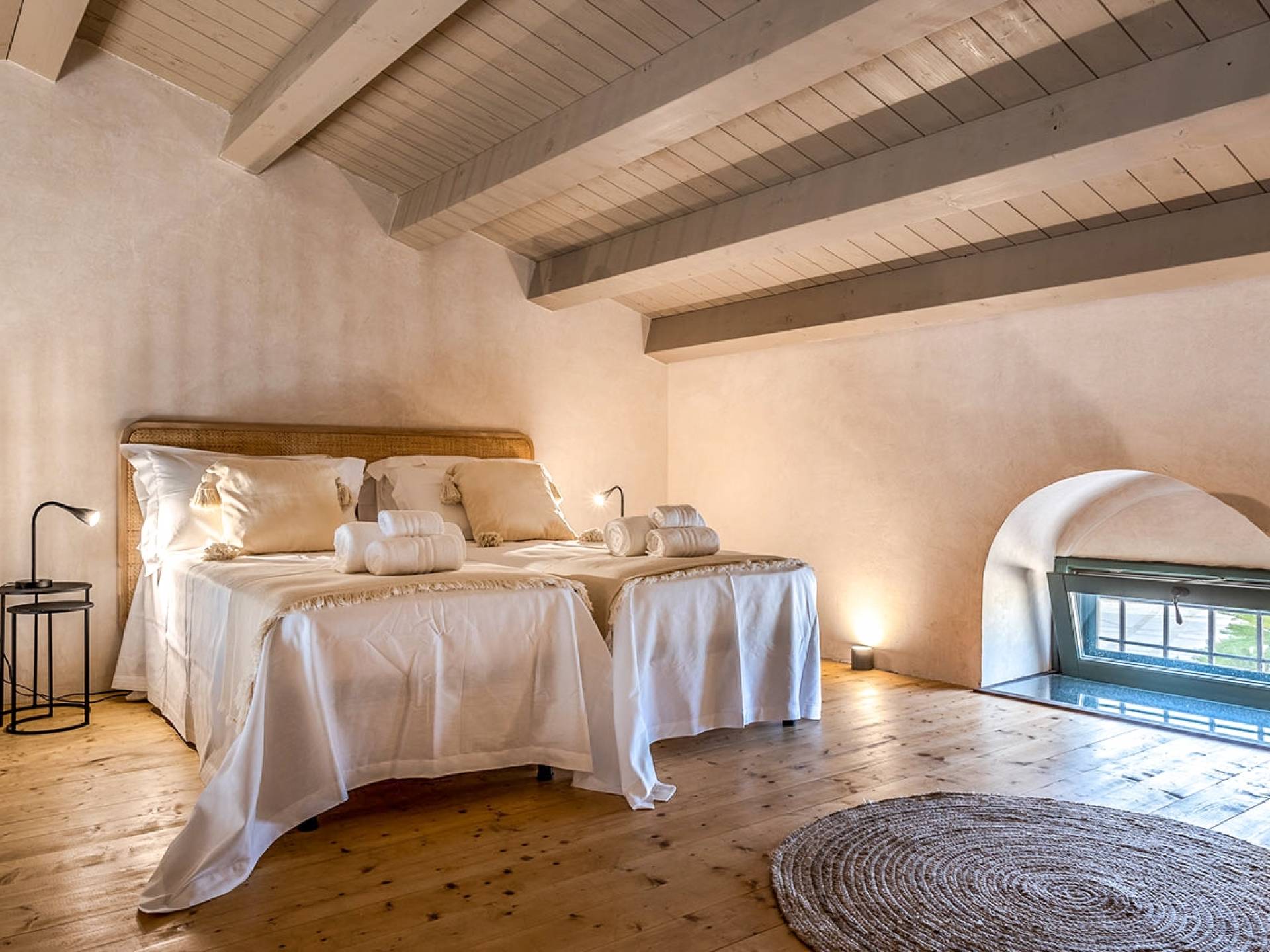 En el otro edificio, adyacente al principal, hay 3 amplios anexos, cada uno con un cómodo entrepiso, baño privado y cama doble. Dos de estas, muy amplias, también tienen 2 camas individuales adicionales. En el exterior, cerca del jardín, un antiguo establo completamente reformado, alberga una segunda cocina con una gran mesa también apta para grandes grupos. La gran puerta, que da al exterior de la terraza y la barbacoa, hace que el ambiente sea especialmente luminoso y animado. El estilo combina tradición y modernidad y hace que el entorno sea muy glamoroso, perfecto para retroceder en el tiempo, disfrutar de unas vacaciones relajantes y una verdadera vida lenta. Las terrazas, presentes a ambos lados de la villa, están decoradas con buen gusto y le permiten almorzar y cenar al aire libre y disfrutar de la paz del campo y la piscina durante el día y la noche.
