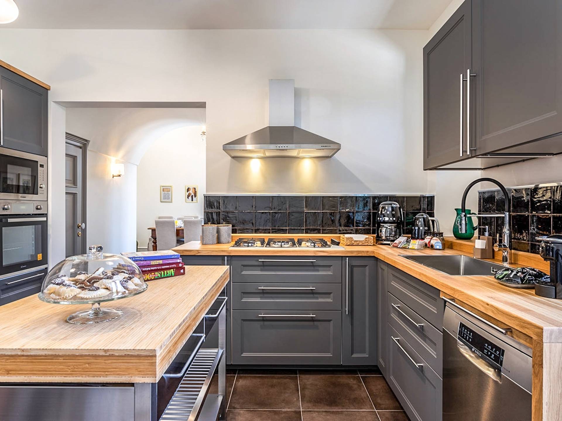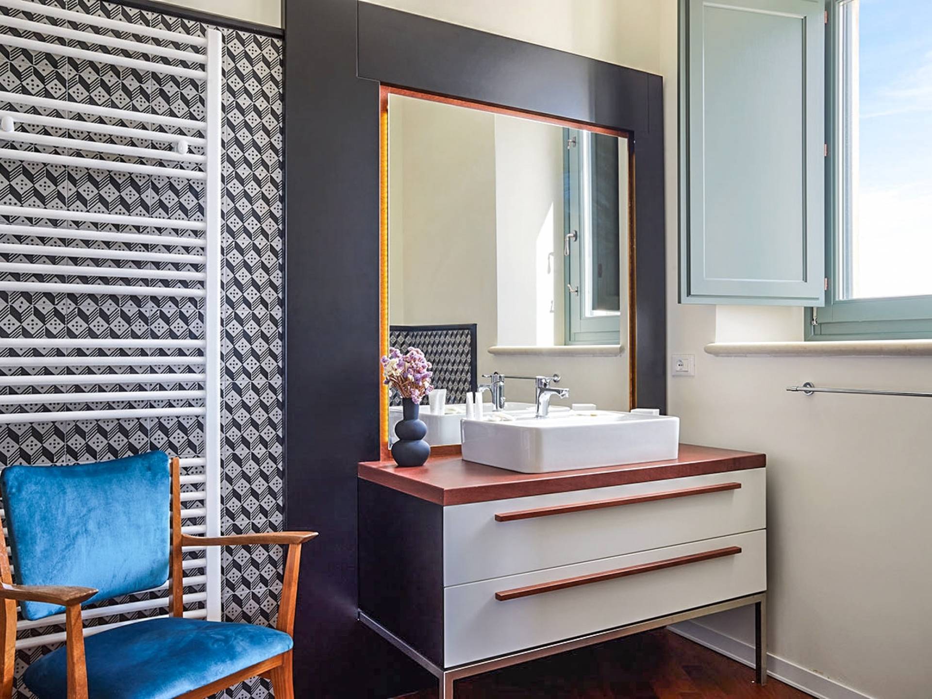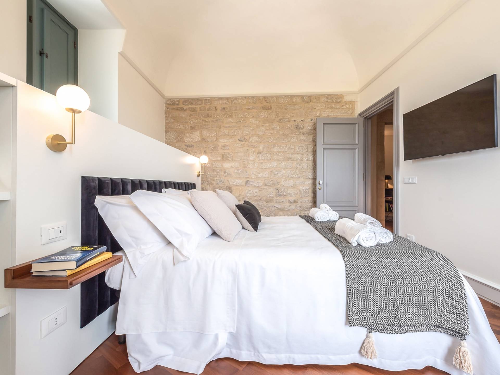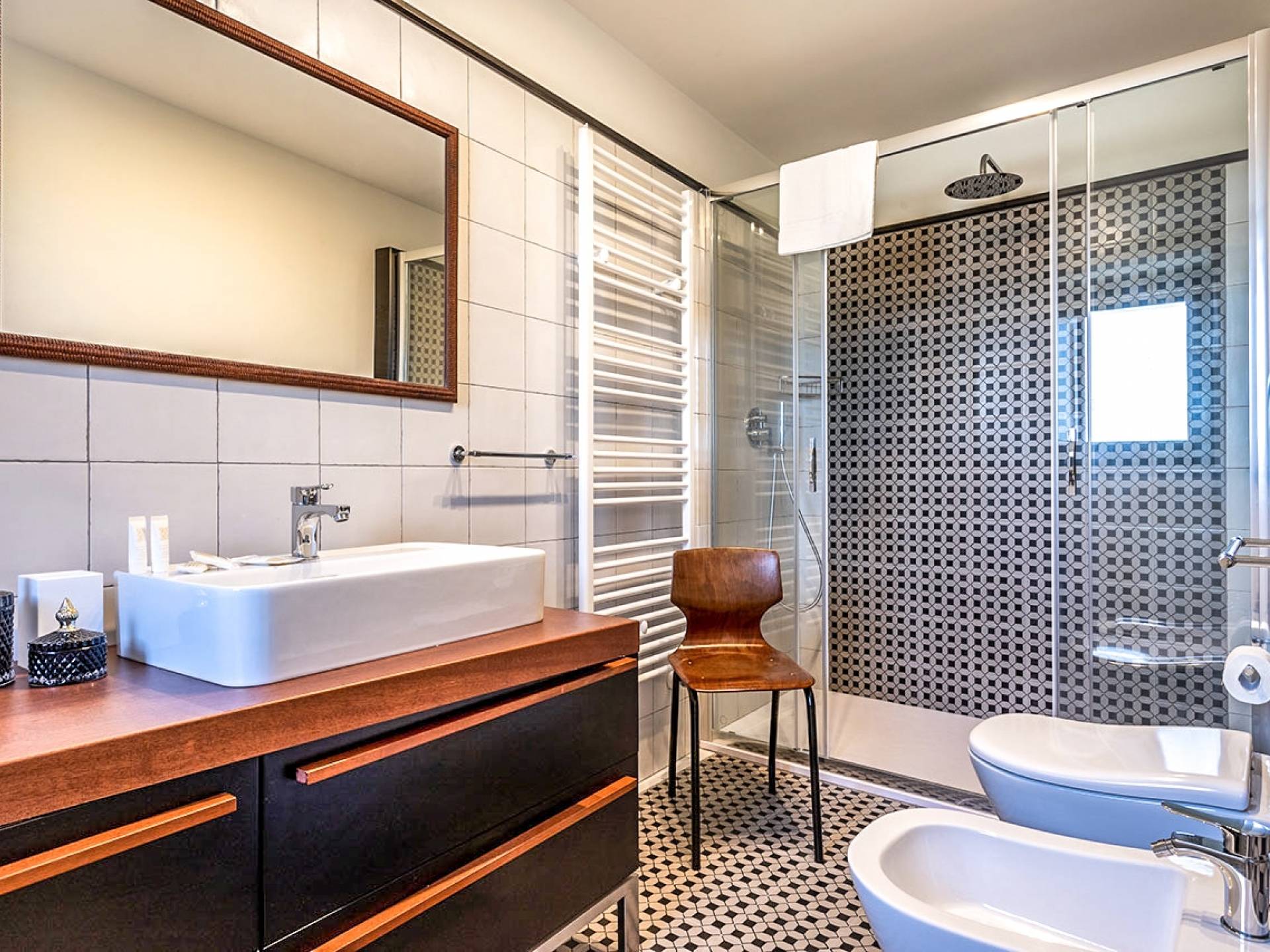En el otro edificio, adyacente al principal, hay 3 amplios anexos, cada uno con un cómodo entrepiso, baño privado y cama doble. Dos de estas, muy amplias, también tienen 2 camas individuales adicionales. En el exterior, cerca del jardín, un antiguo establo completamente reformado, alberga una segunda cocina con una gran mesa también apta para grandes grupos. La gran puerta, que da al exterior de la terraza y la barbacoa, hace que el ambiente sea especialmente luminoso y animado. El estilo combina tradición y modernidad y hace que el entorno sea muy glamoroso, perfecto para retroceder en el tiempo, disfrutar de unas vacaciones relajantes y una verdadera vida lenta. Las terrazas, presentes a ambos lados de la villa, están decoradas con buen gusto y le permiten almorzar y cenar al aire libre y disfrutar de la paz del campo y la piscina durante el día y la noche.