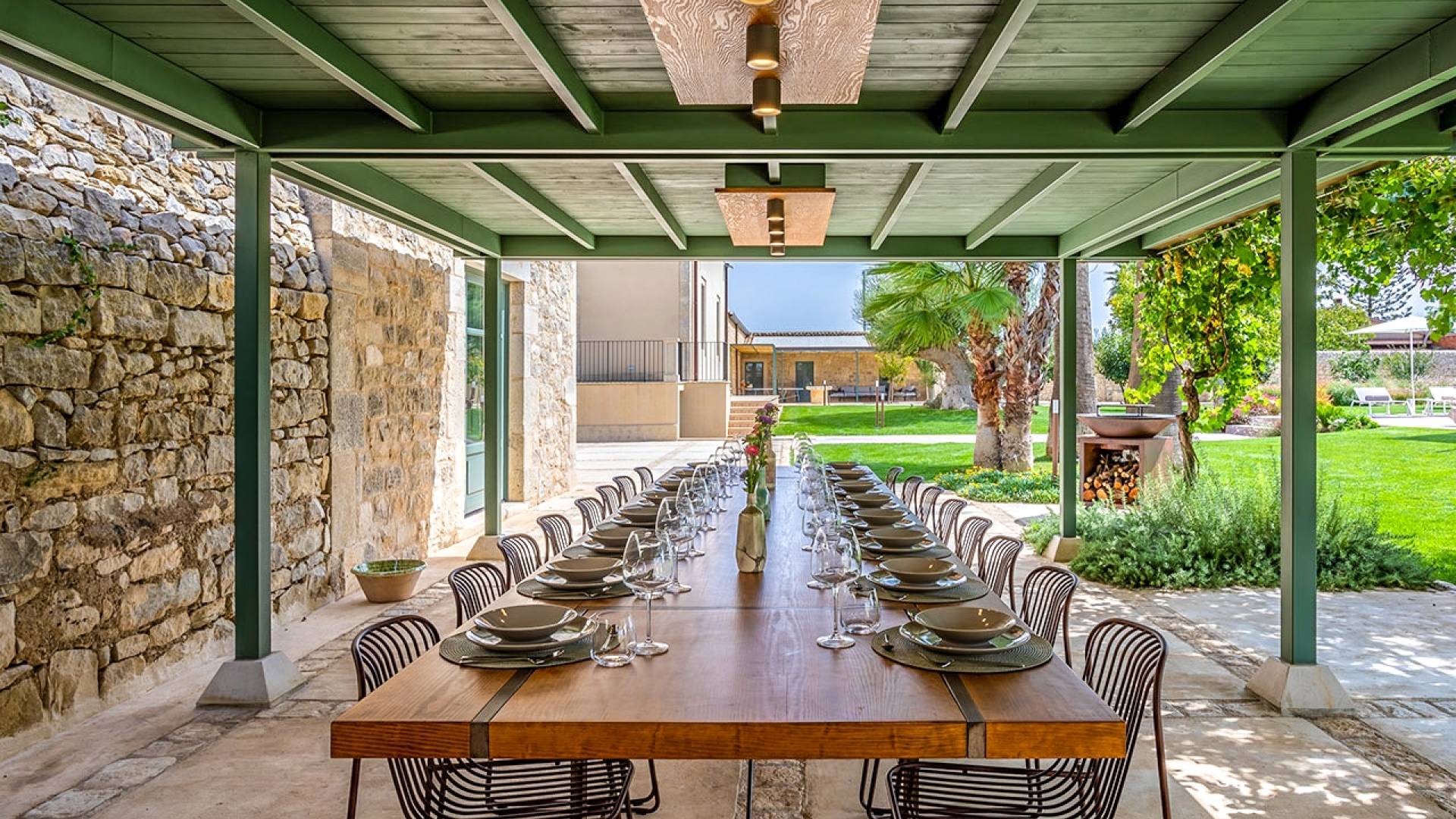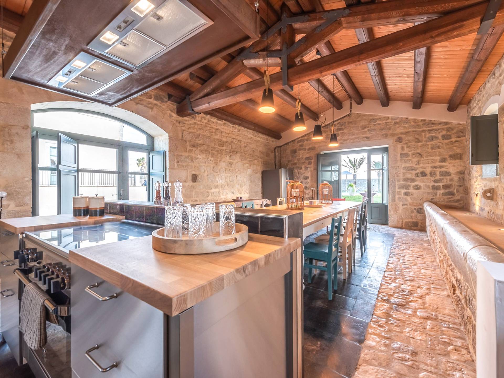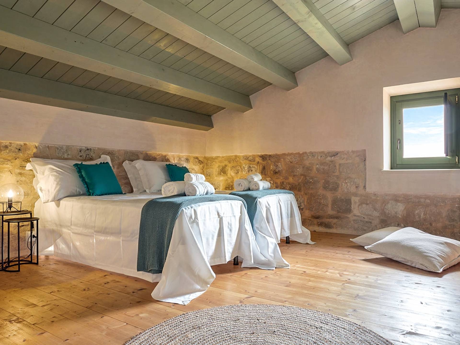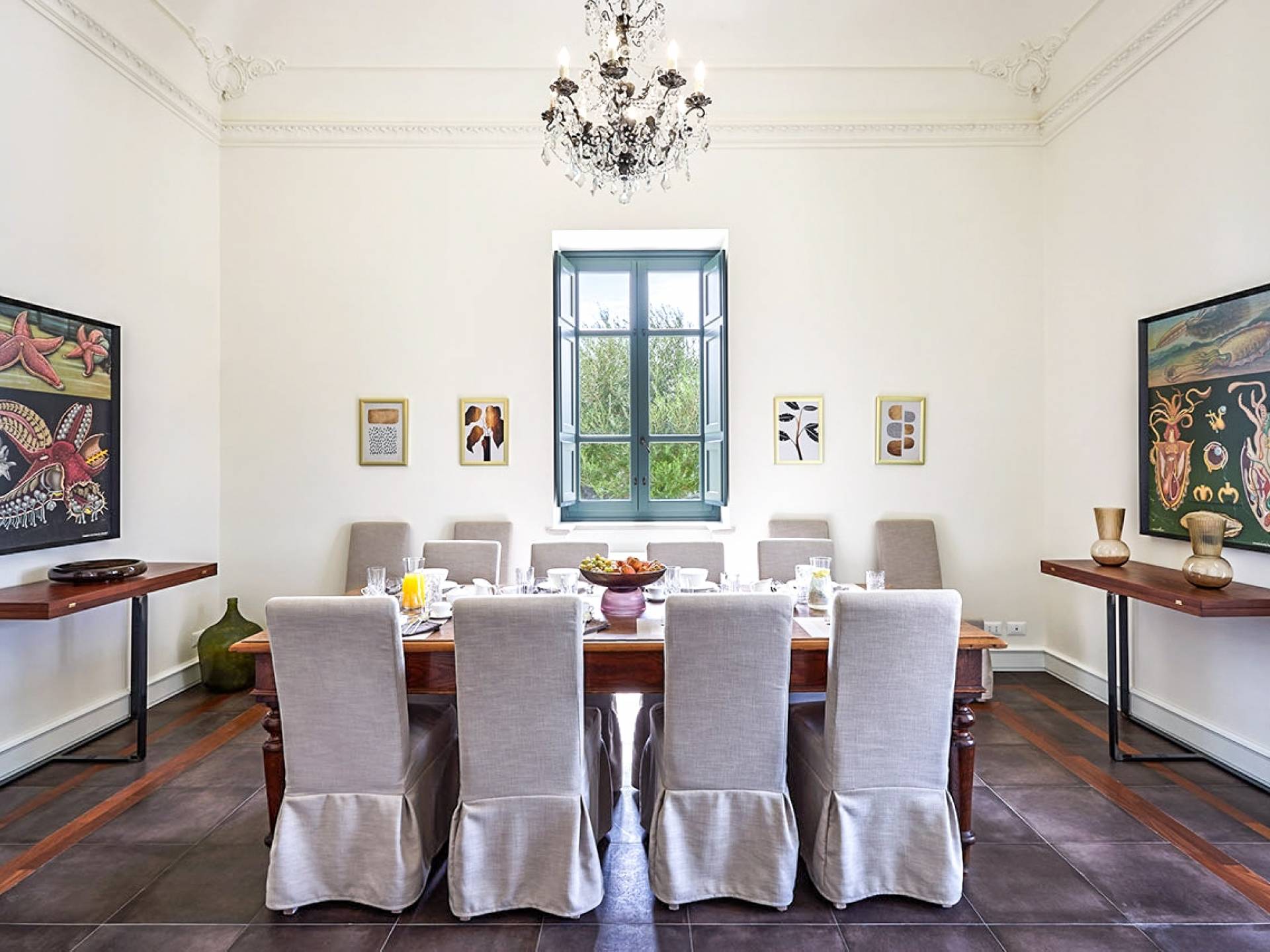 Villa Ida está dividida en dos edificios y puede alojar hasta 24 personas en 8 habitaciones equipadas con aire acondicionado y baño privado. Lo que vale la pena mencionar es el increíble diseño interior lujoso, elegante y glamuroso con el encanto del estilo siciliano. En el edificio principal, se encuentra un magnífico salón, una cocina moderna y totalmente equipada que se abre al espléndido comedor con su gran mesa de madera. A través de 2 escaleras se accede al primer piso, donde se encuentran 3 habitaciones con baño privado. Uno de estos dormitorios también tiene un cómodo sofá cama doble. Otra escalera conduce desde la cocina a la planta baja, donde una sala de estar adicional conduce a otros 2 dormitorios y la encantadora bodega para degustación de vinos.