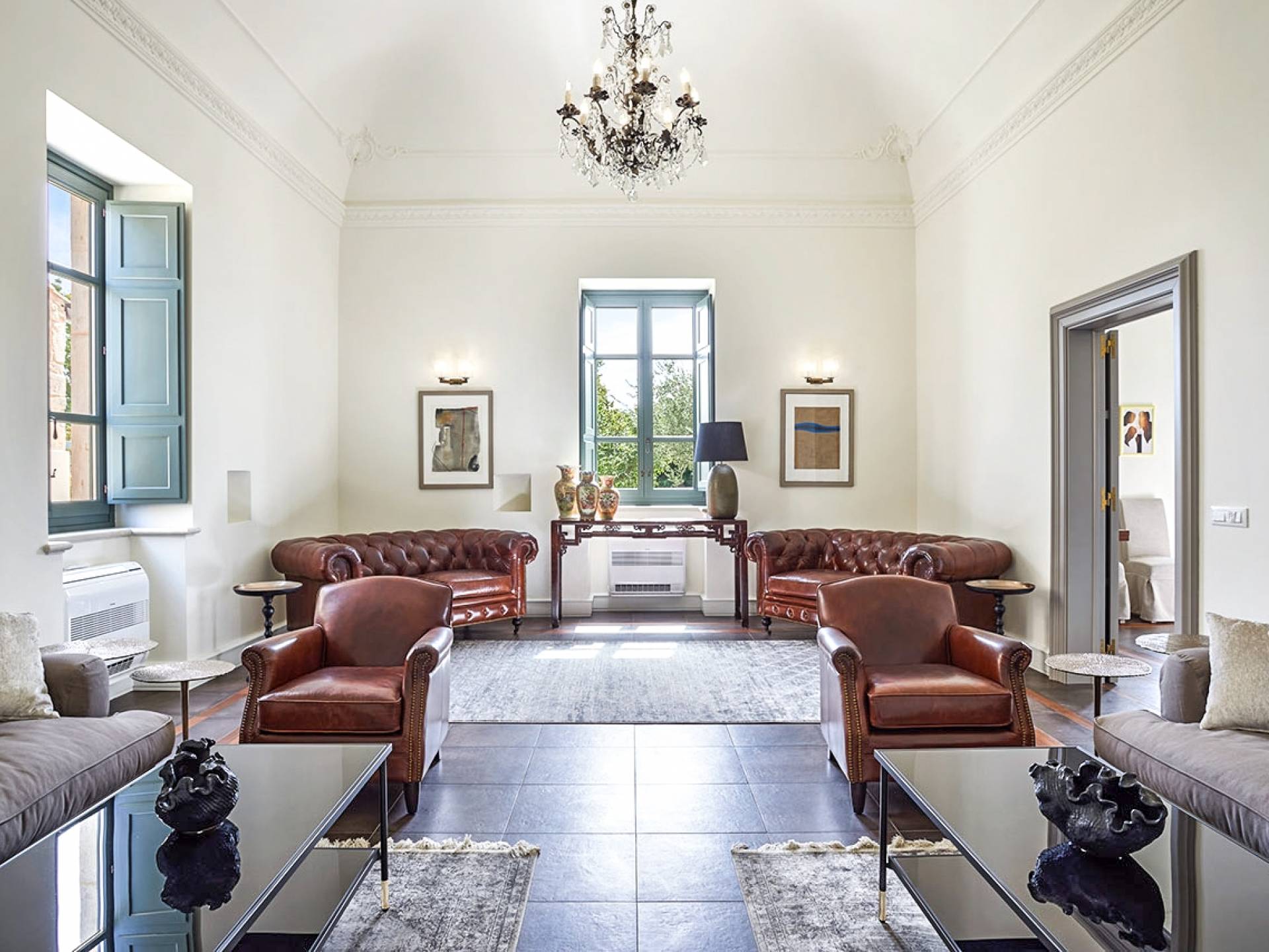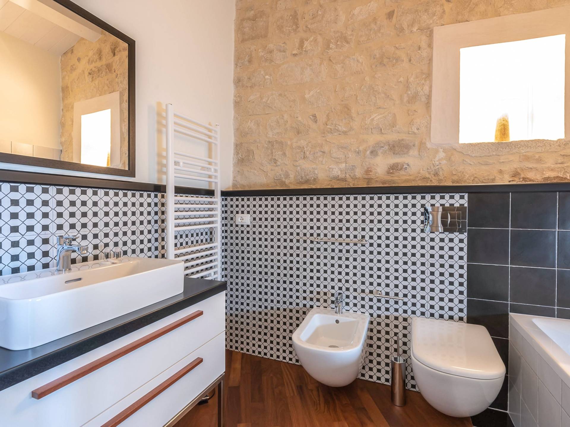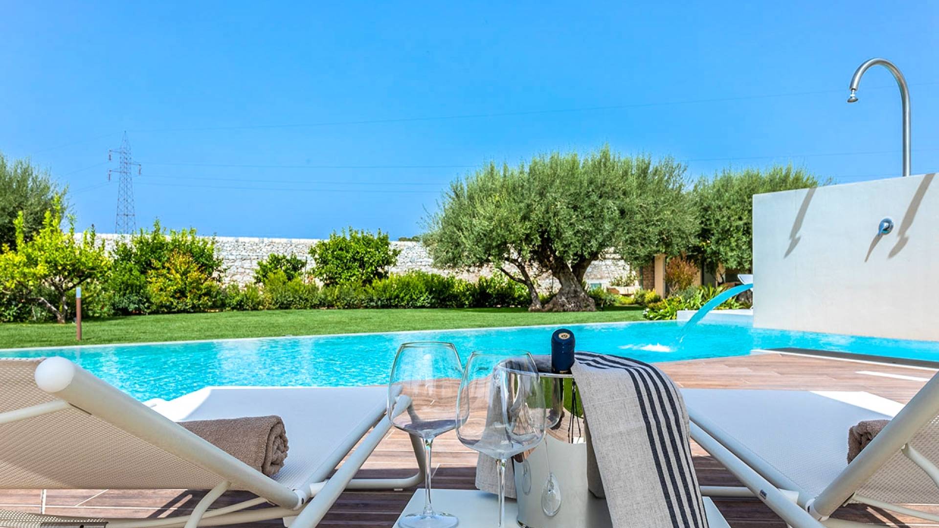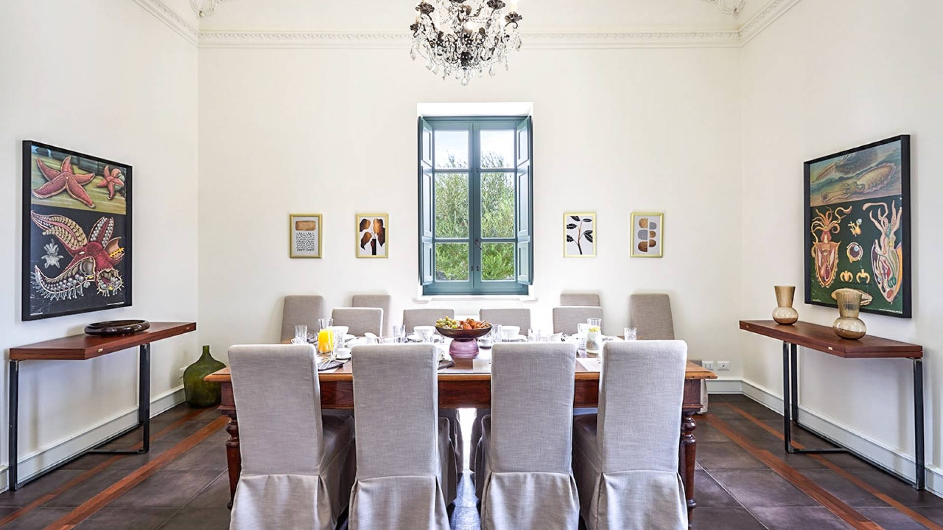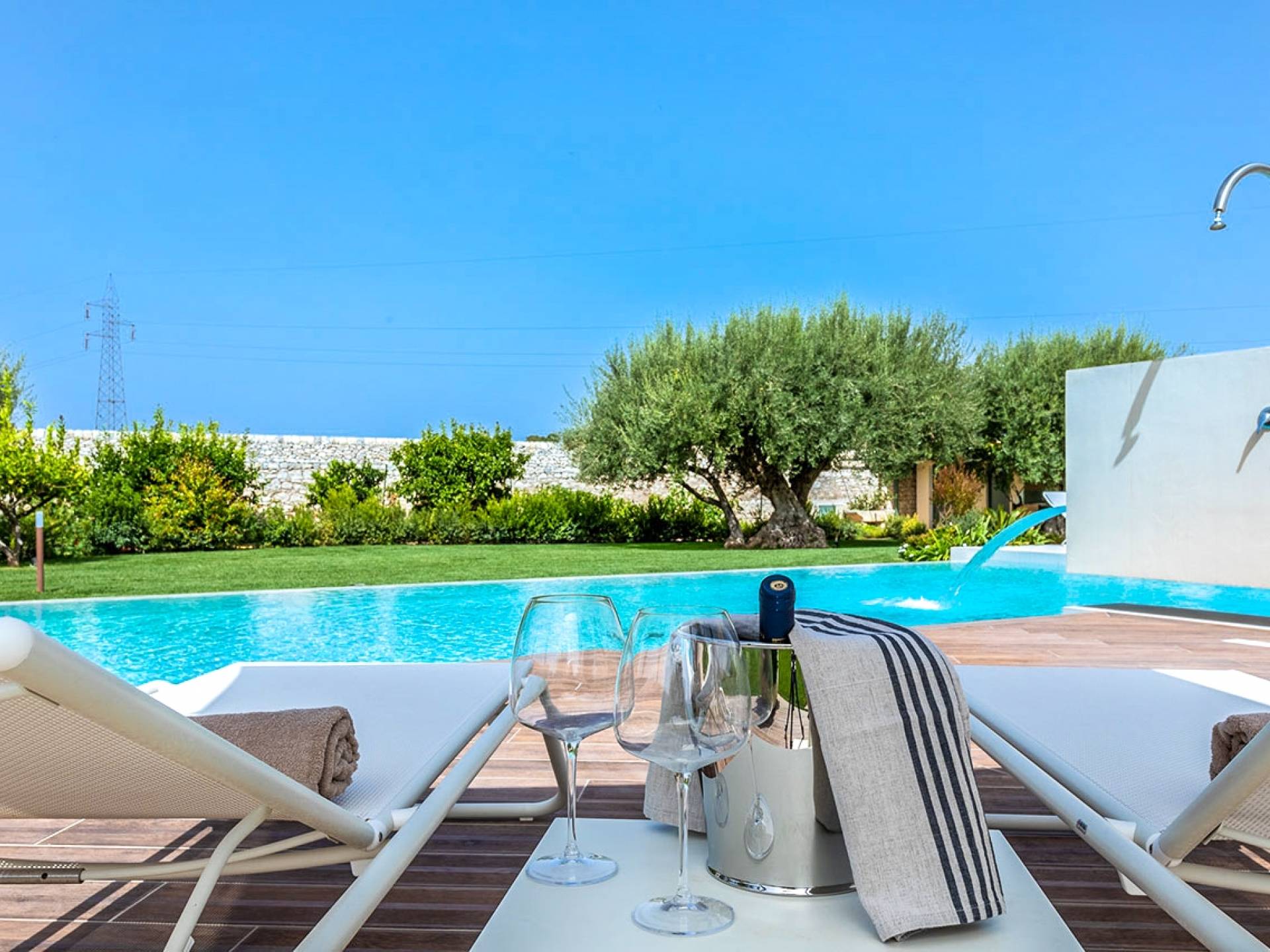 Villa Ida está dividida en dos edificios y puede alojar hasta 24 personas en 8 habitaciones equipadas con aire acondicionado y baño privado. Lo que vale la pena mencionar es el increíble diseño interior lujoso, elegante y glamuroso con el encanto del estilo siciliano. En el edificio principal, se encuentra un magnífico salón, una cocina moderna y totalmente equipada que se abre al espléndido comedor con su gran mesa de madera. A través de 2 escaleras se accede al primer piso, donde se encuentran 3 habitaciones con baño privado. Uno de estos dormitorios también tiene un cómodo sofá cama doble. Otra escalera conduce desde la cocina a la planta baja, donde una sala de estar adicional conduce a otros 2 dormitorios y la encantadora bodega para degustación de vinos.