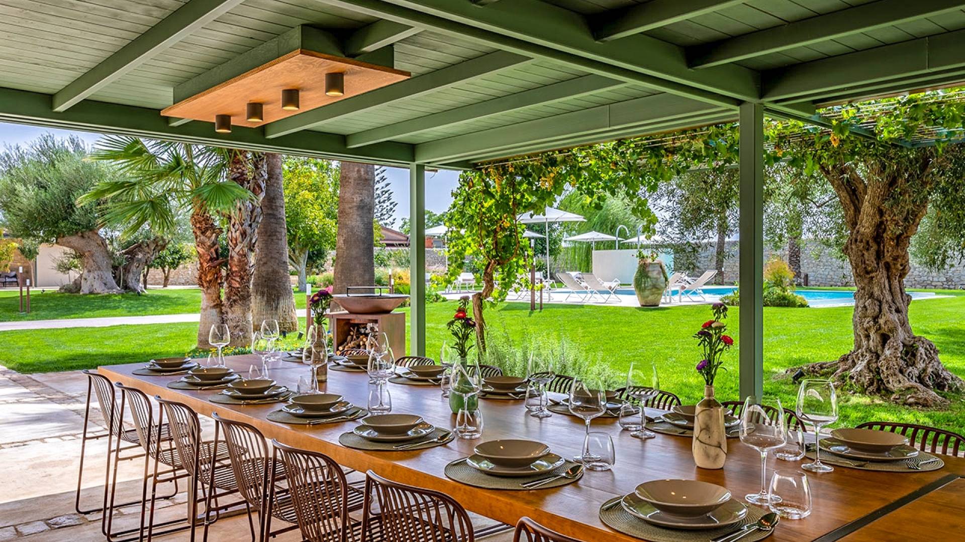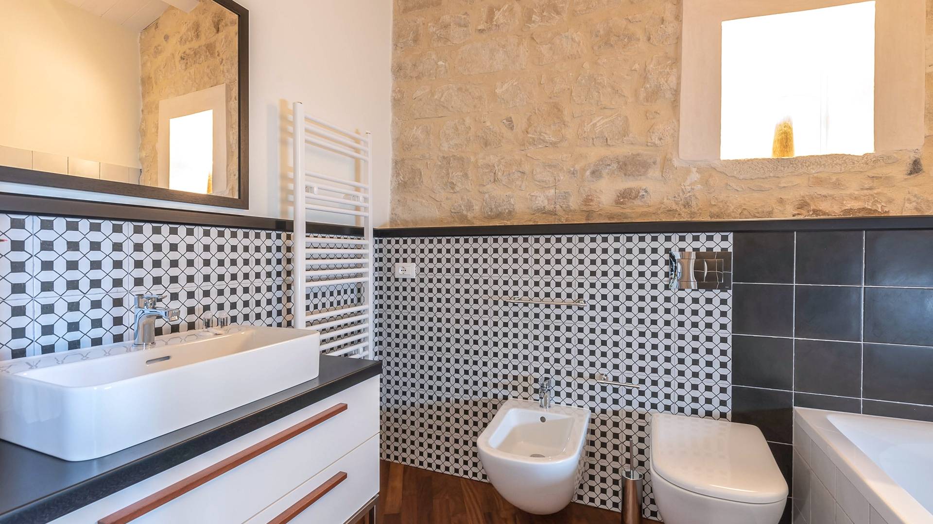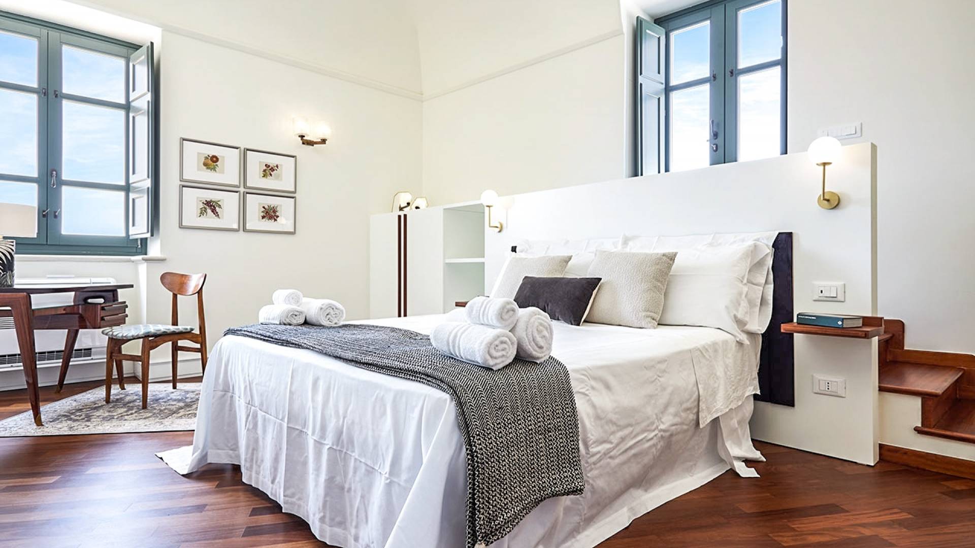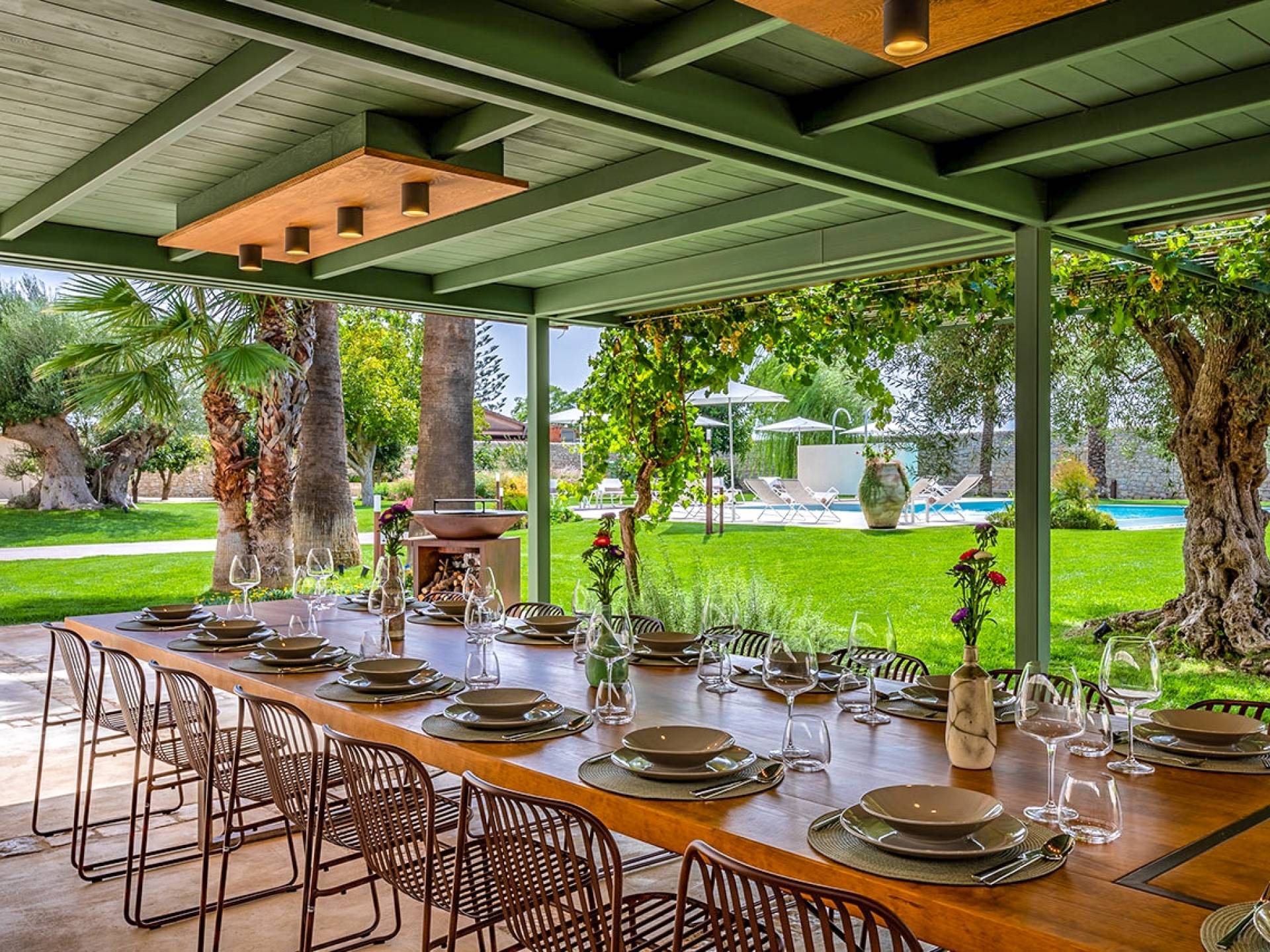 Villa Ida está dividida en dos edificios y puede alojar hasta 24 personas en 8 habitaciones equipadas con aire acondicionado y baño privado. Lo que vale la pena mencionar es el increíble diseño interior lujoso, elegante y glamuroso con el encanto del estilo siciliano. En el edificio principal, se encuentra un magnífico salón, una cocina moderna y totalmente equipada que se abre al espléndido comedor con su gran mesa de madera. A través de 2 escaleras se accede al primer piso, donde se encuentran 3 habitaciones con baño privado. Uno de estos dormitorios también tiene un cómodo sofá cama doble. Otra escalera conduce desde la cocina a la planta baja, donde una sala de estar adicional conduce a otros 2 dormitorios y la encantadora bodega para degustación de vinos.