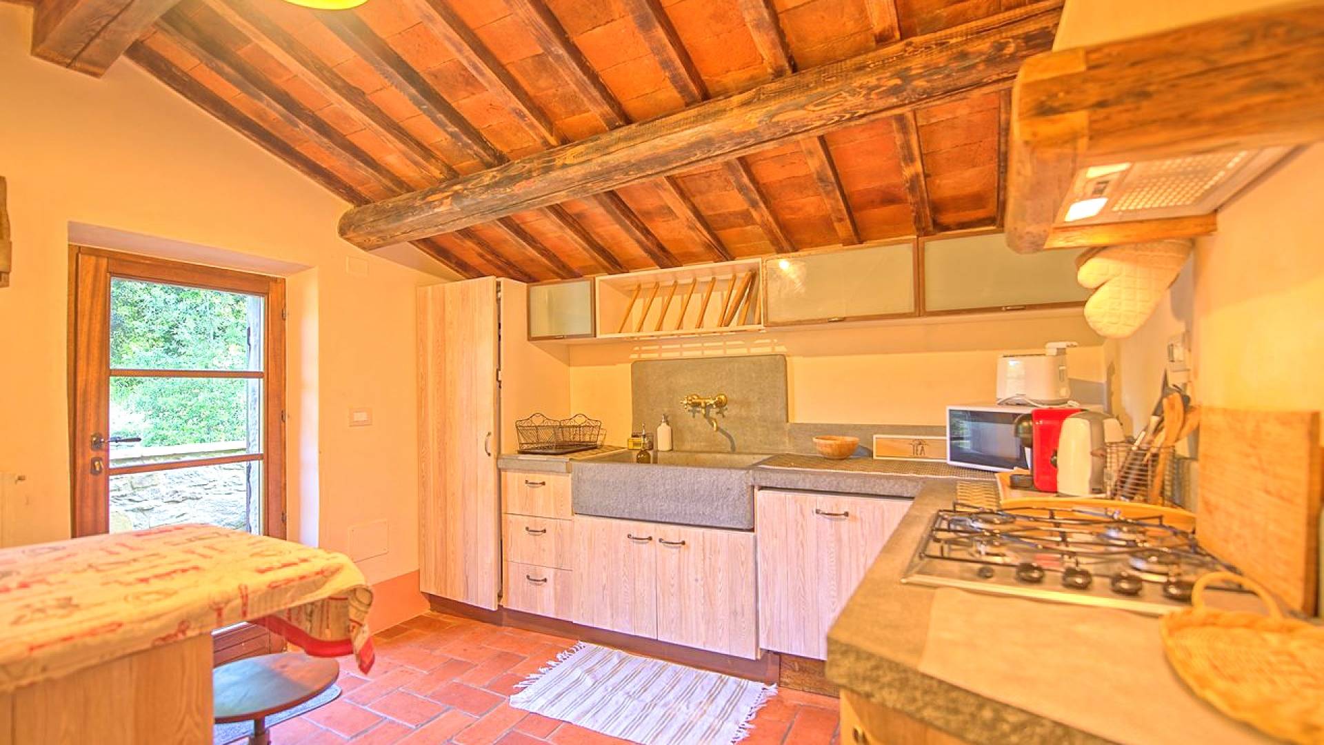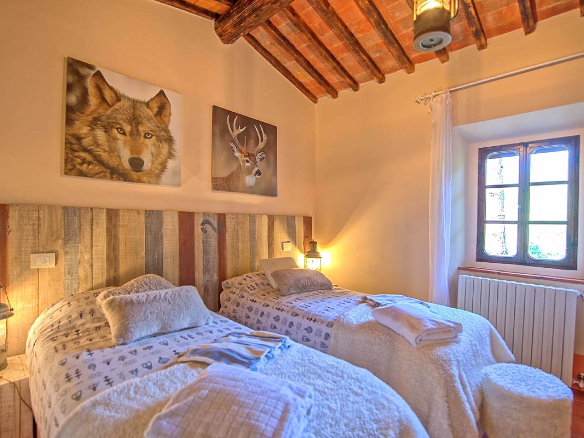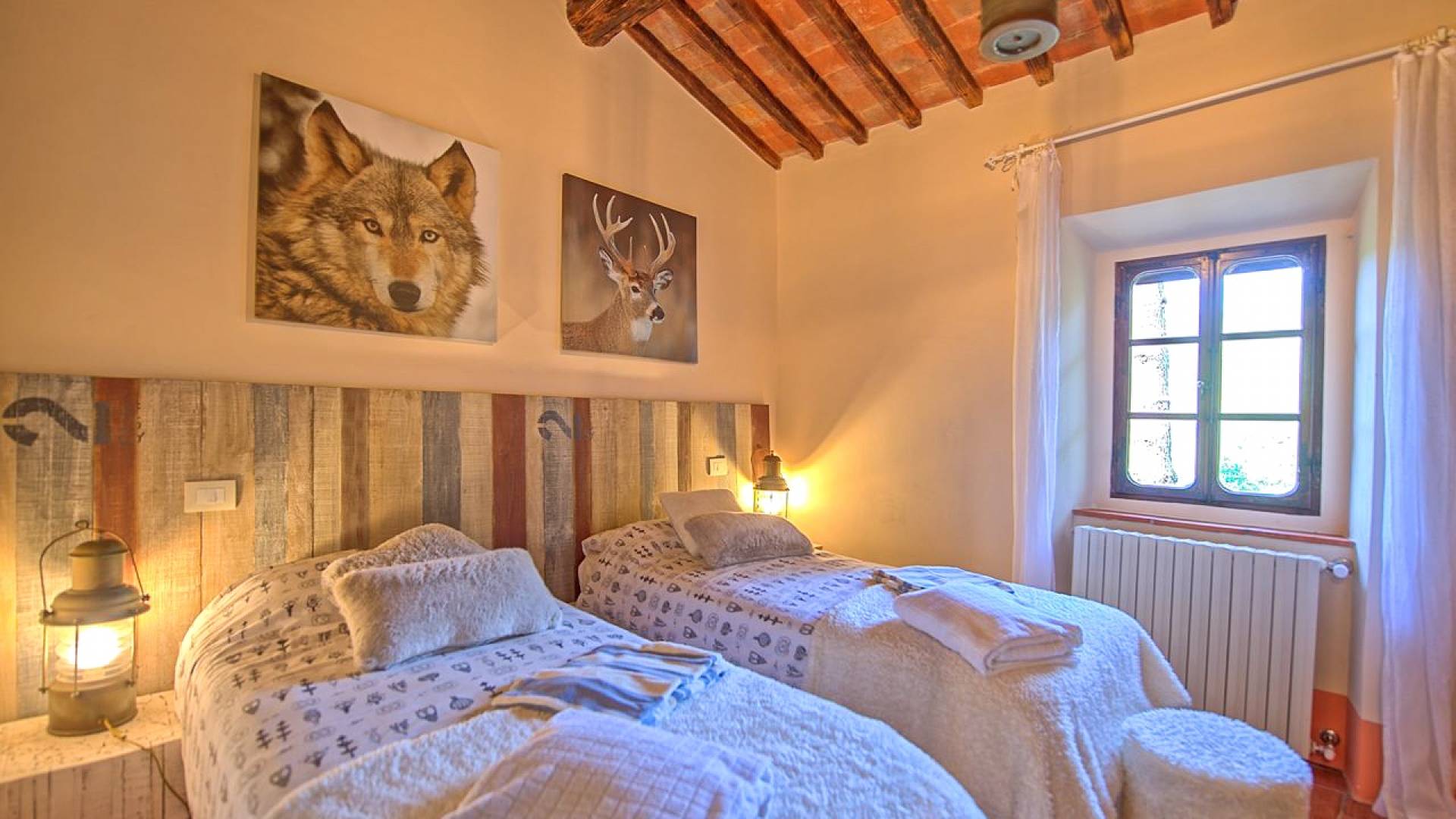 Hay tres habitaciones disponibles, cada una con baño privado, todas con un encanto moderno pero con la calidez antigua dictada por los pisos de terracota, vigas de madera en los techos y puertas y ventanas aún originales. Las dimensiones de cada habitación son notables y ciertamente no le harán sentir la nostalgia de una habitación de hotel.