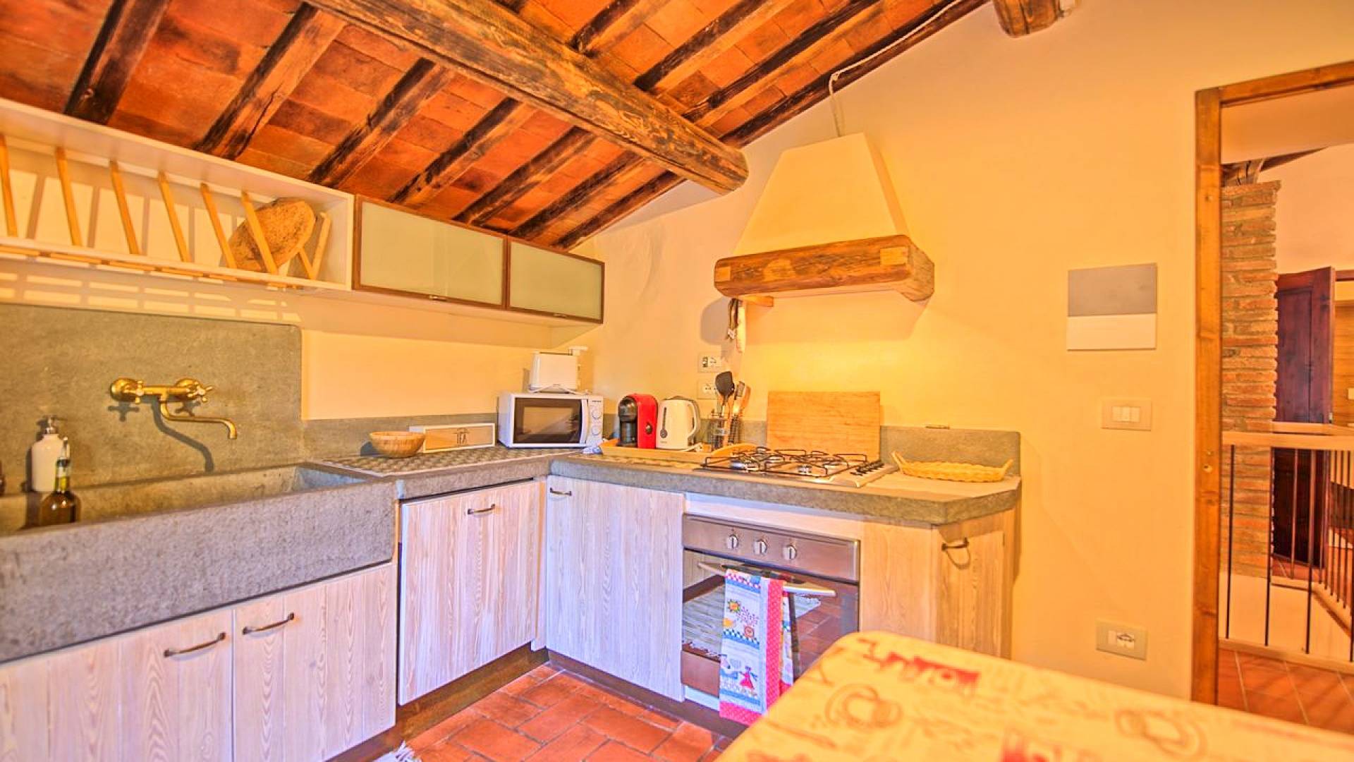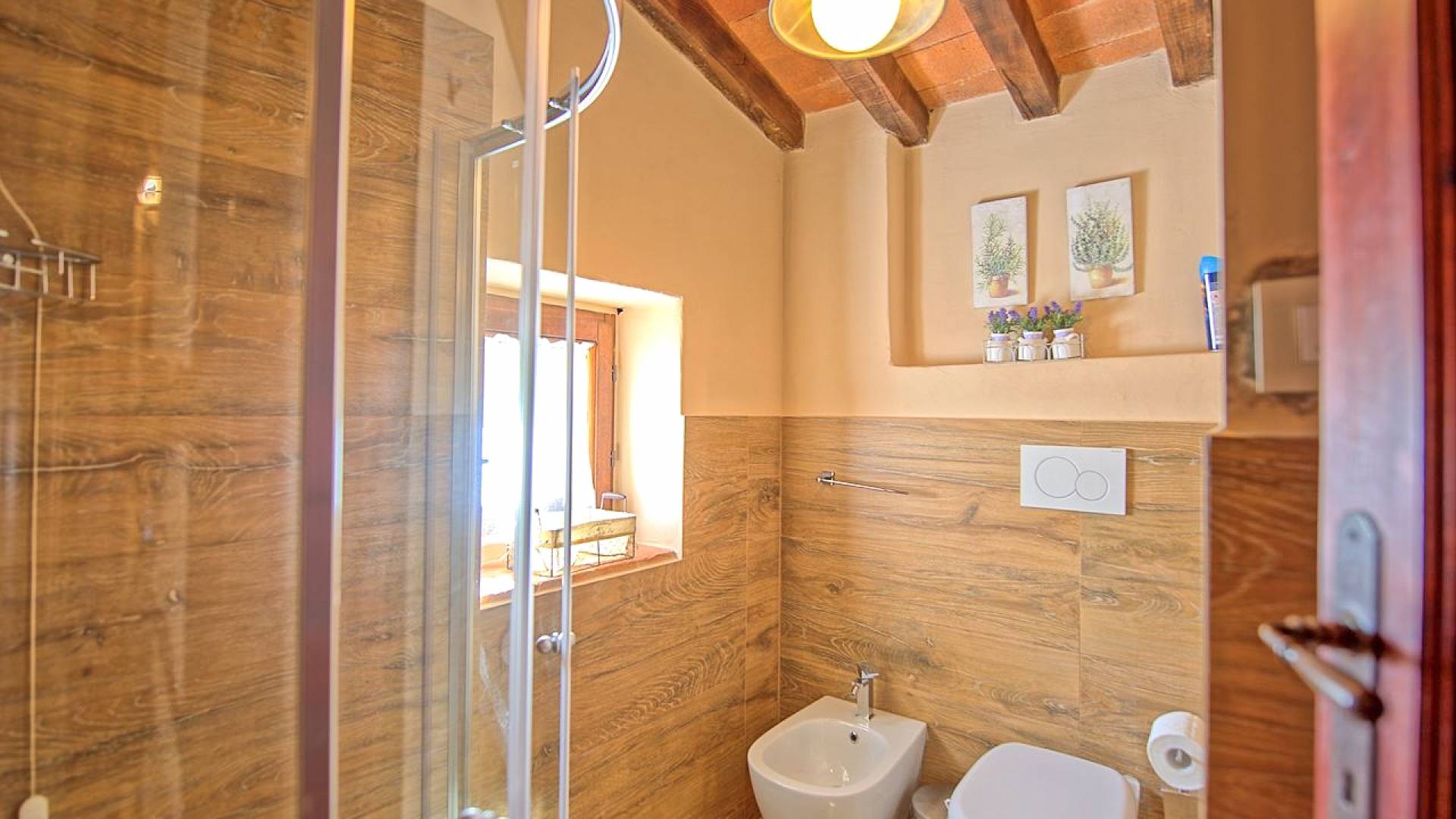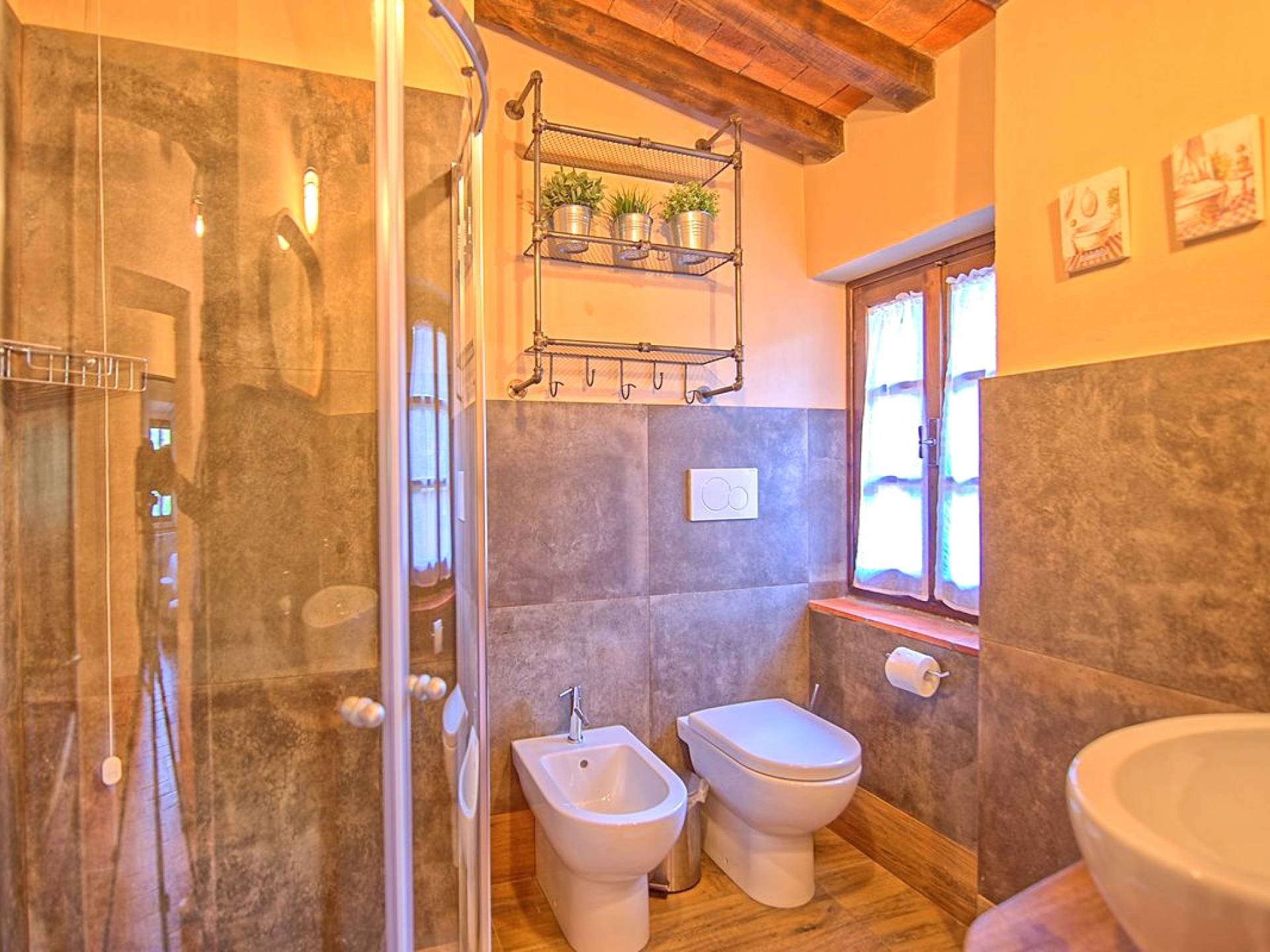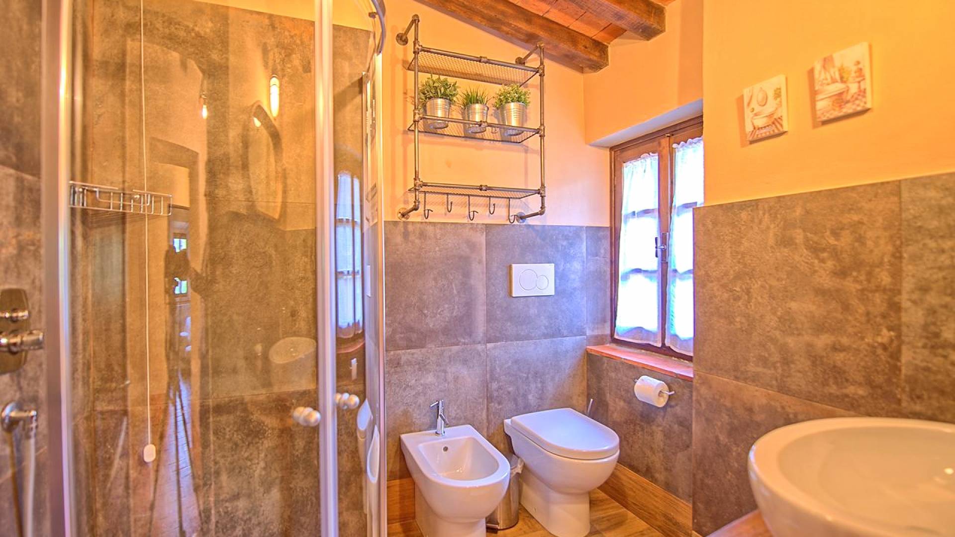 Hay tres habitaciones disponibles, cada una con baño privado, todas con un encanto moderno pero con la calidez antigua dictada por los pisos de terracota, vigas de madera en los techos y puertas y ventanas aún originales. Las dimensiones de cada habitación son notables y ciertamente no le harán sentir la nostalgia de una habitación de hotel.