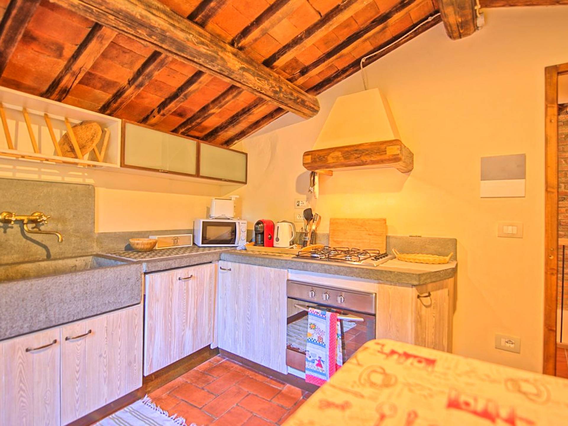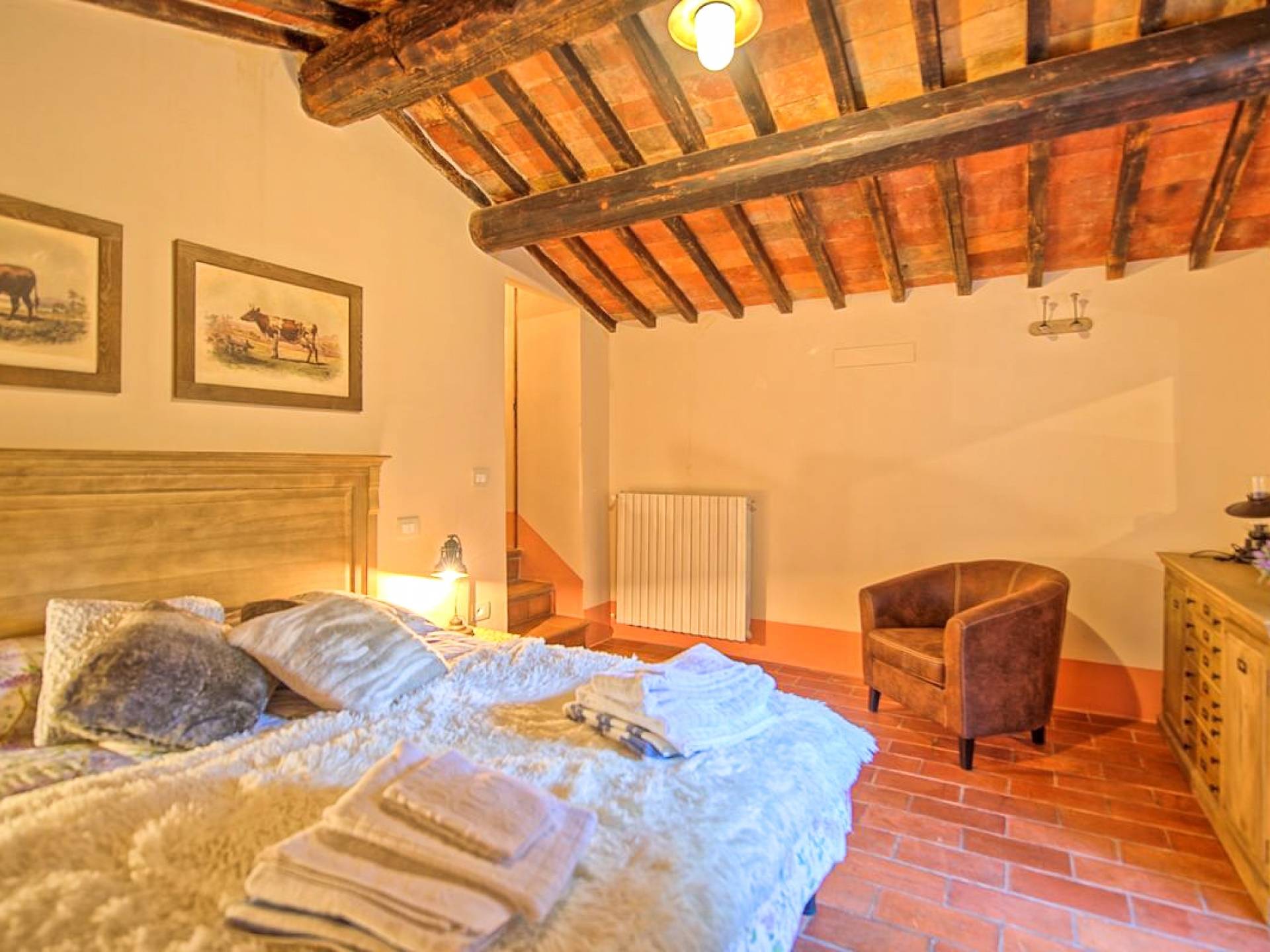 También puede practicar senderismo o ciclismo, o relajarse en el jardín y utilizar la barbacoa. Gracias a su posición estratégica es posible llegar a las ciudades de Cortona, Arezzo, Florencia, Siena, Montepulciano en pocos minutos y es posible organizar visitas diarias a las ciudades más famosas de Umbría y Toscana.