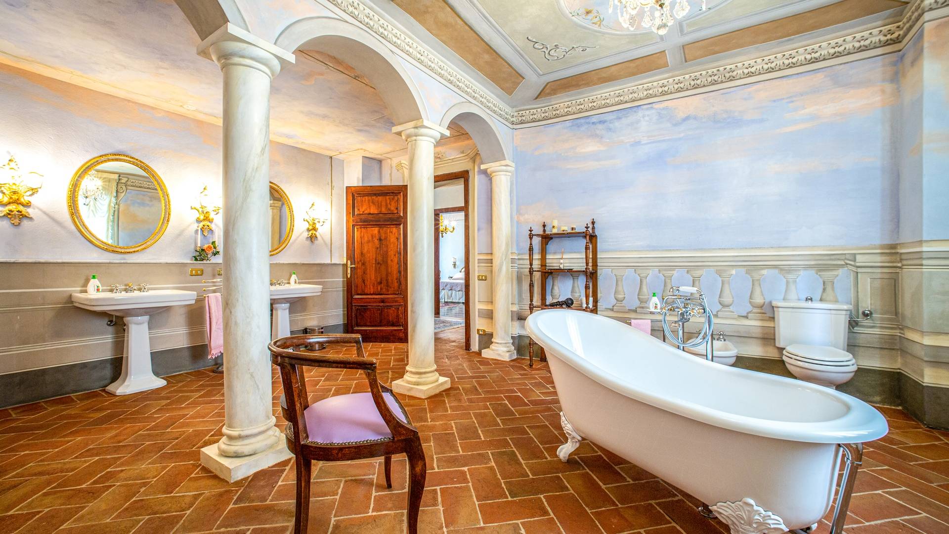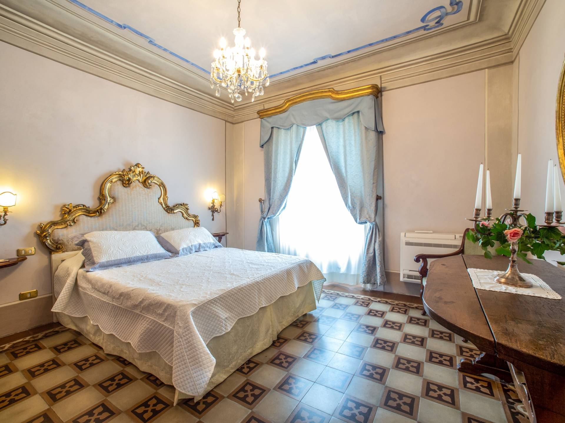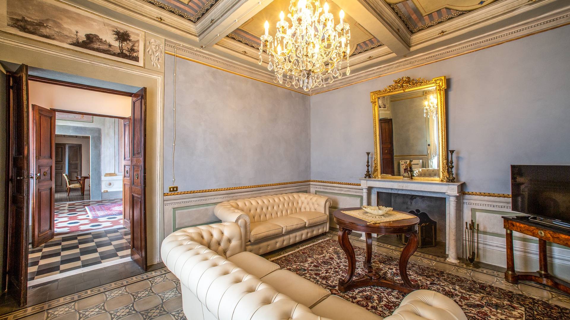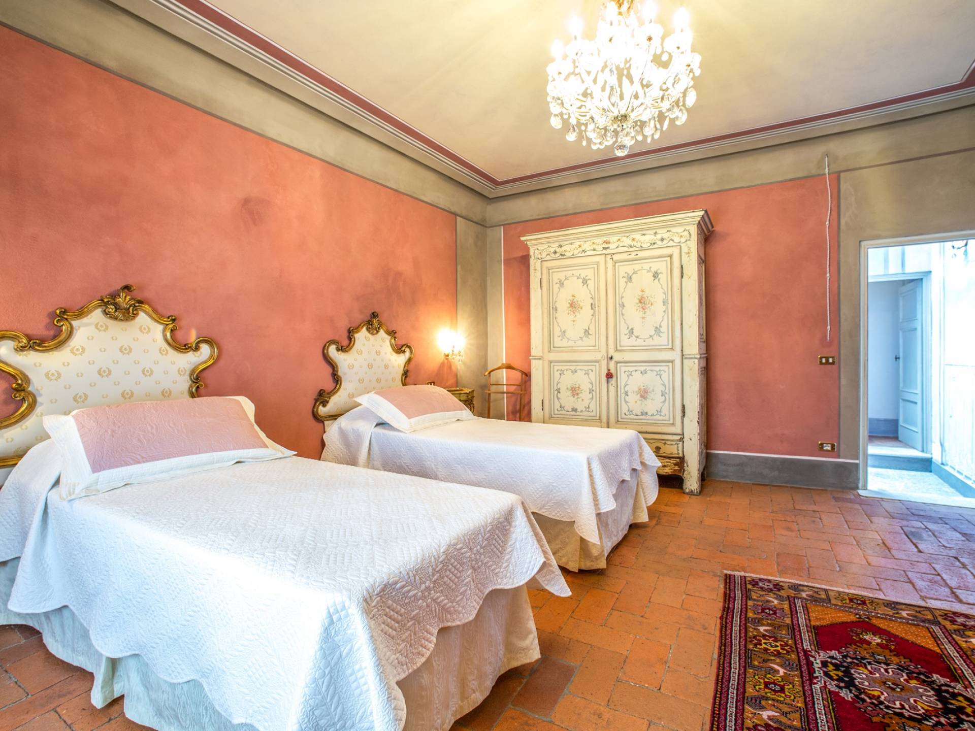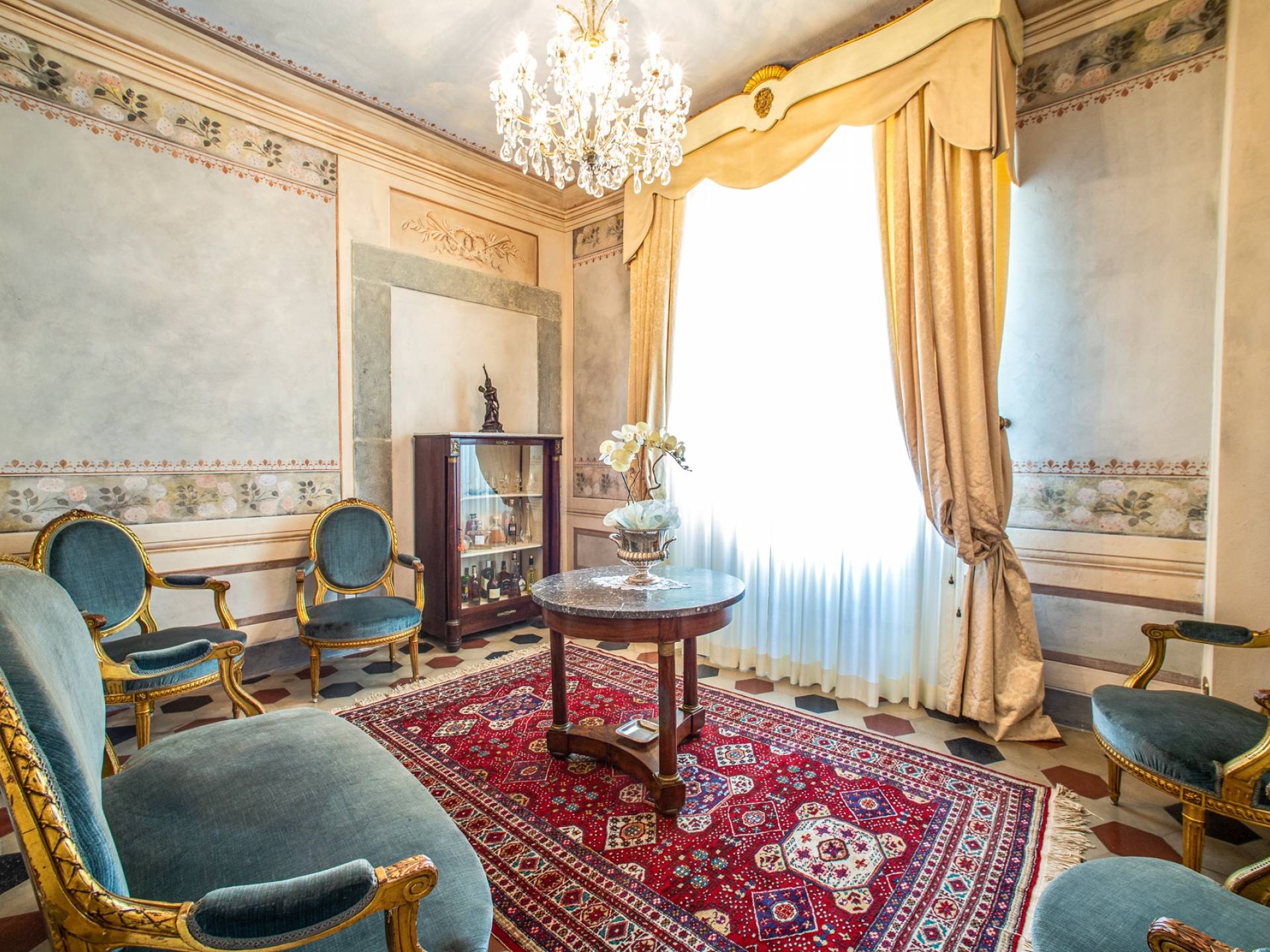 El interior de la villa está decorado con frescos de 1600/1700, restaurados a su esplendor original en 2018. Todos los elementos que decoran esta espectacular propiedad son del más alto valor histórico debido a su autenticidad. Desde los originales pavimentos de terracota hasta los techos con vigas de madera, las encantadoras chimeneas, las columnas de mármol, los preciosos frescos y las decoraciones. Los muebles elegantes y sofisticados con materiales preciosos y dorados elegantes otorgan un gran encanto y emociones únicas a este edificio antiguo. La villa, de aproximadamente 1.000 m2, tiene tres plantas y tiene capacidad para 20 invitados.