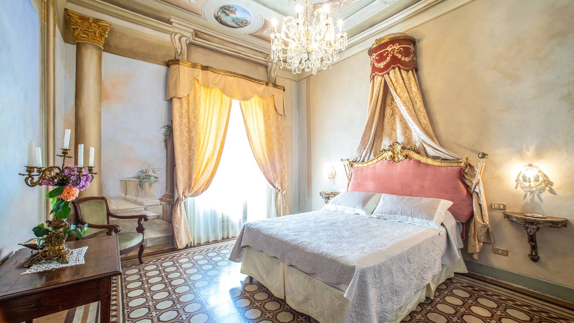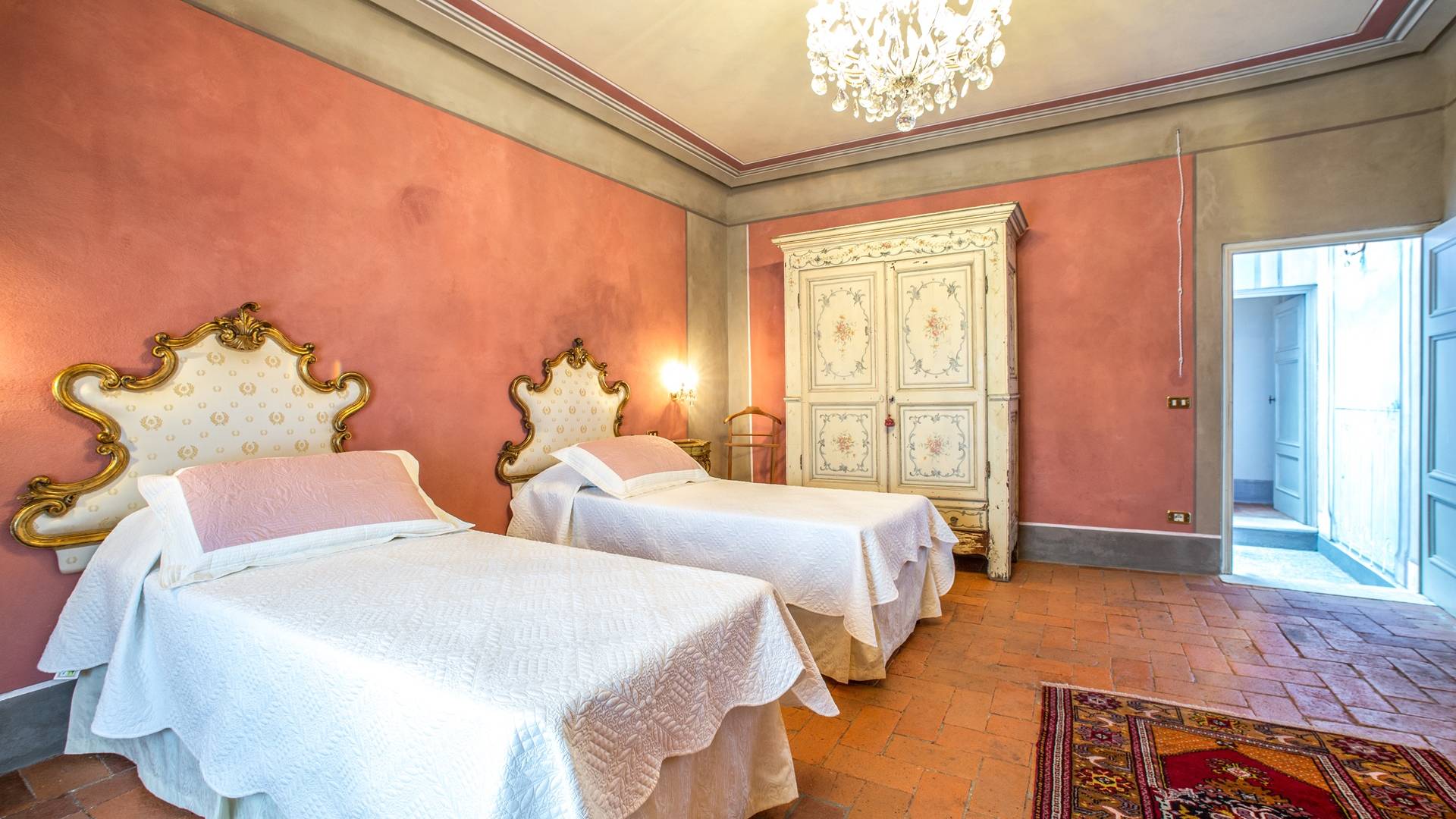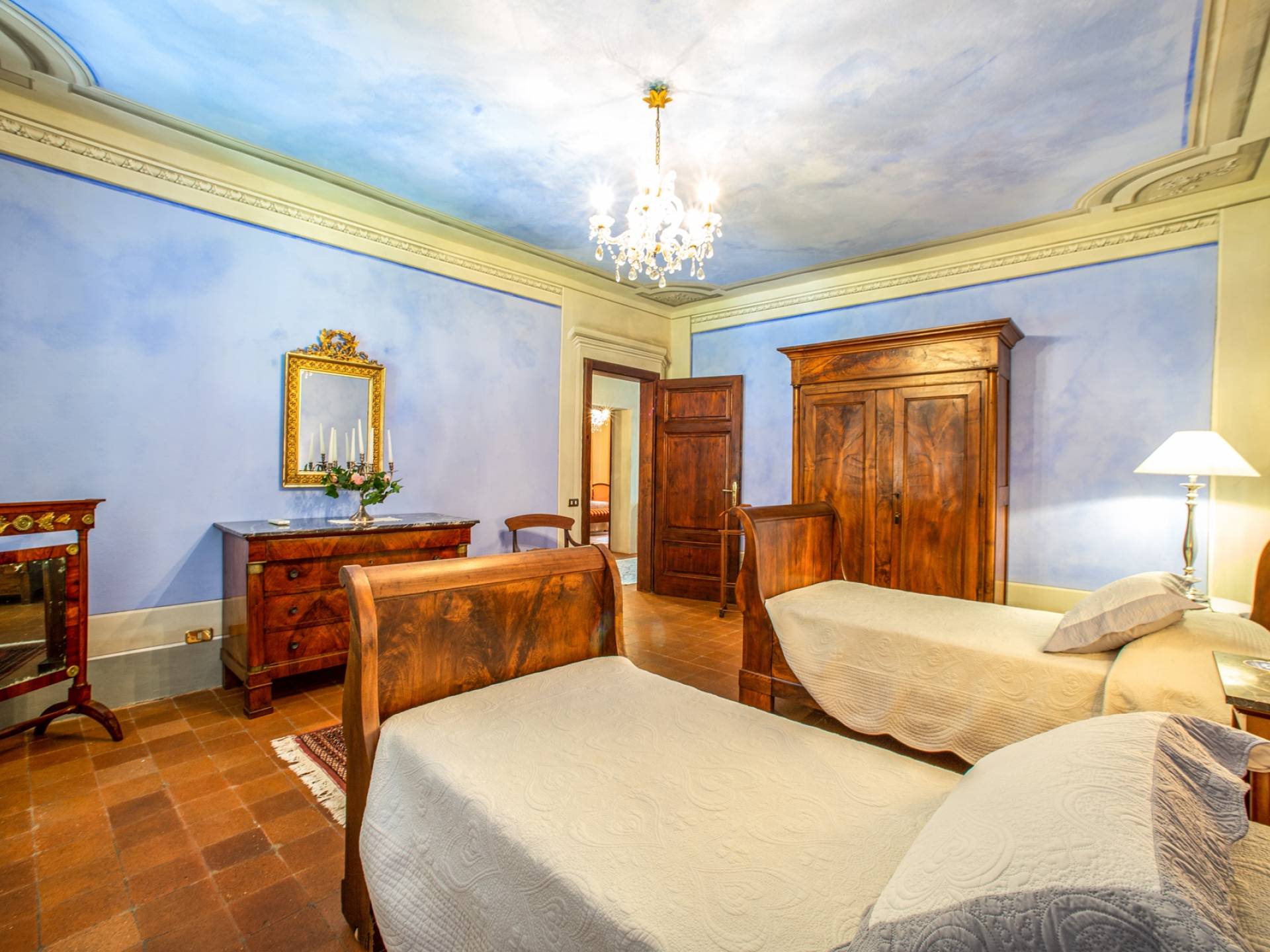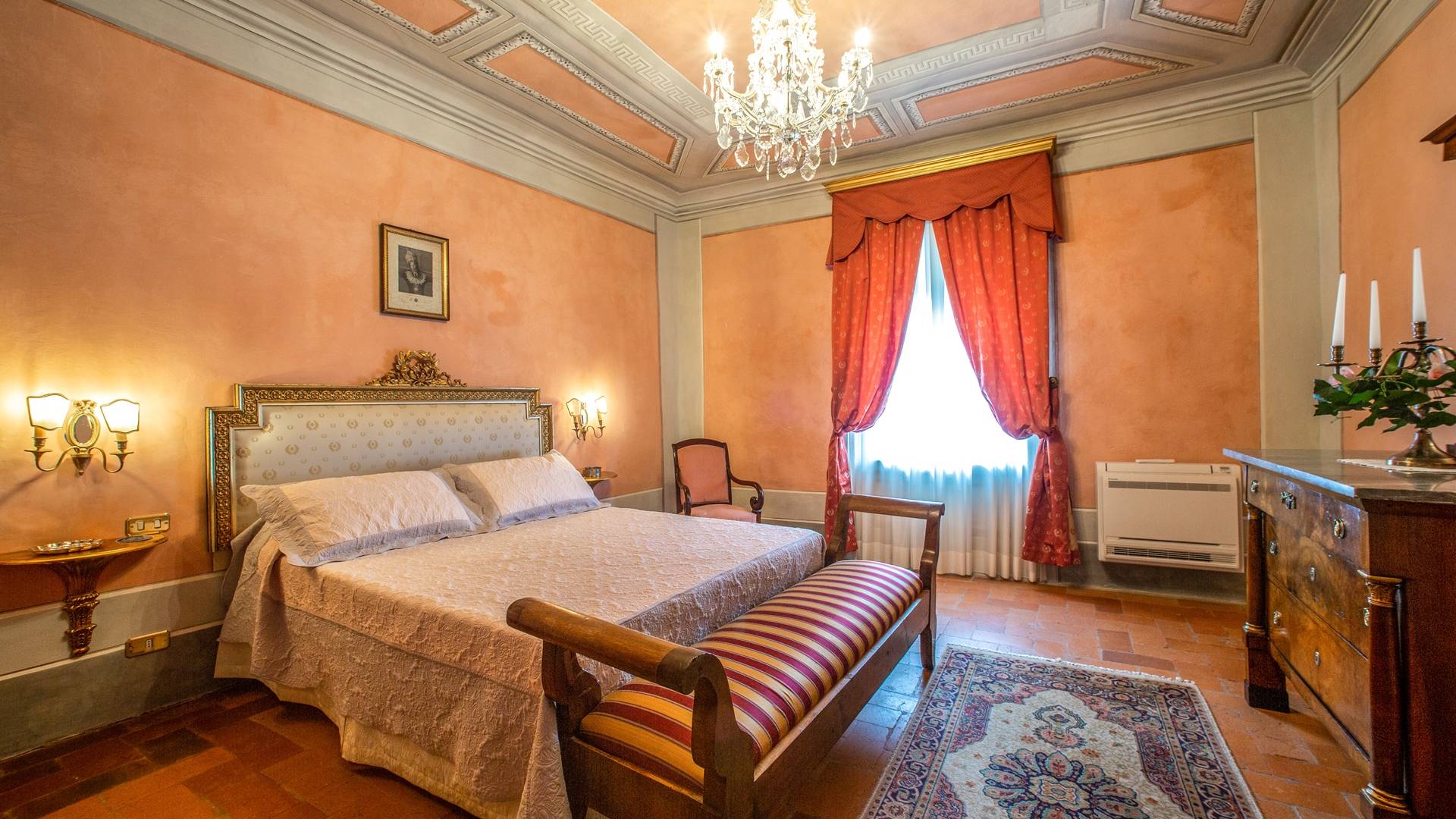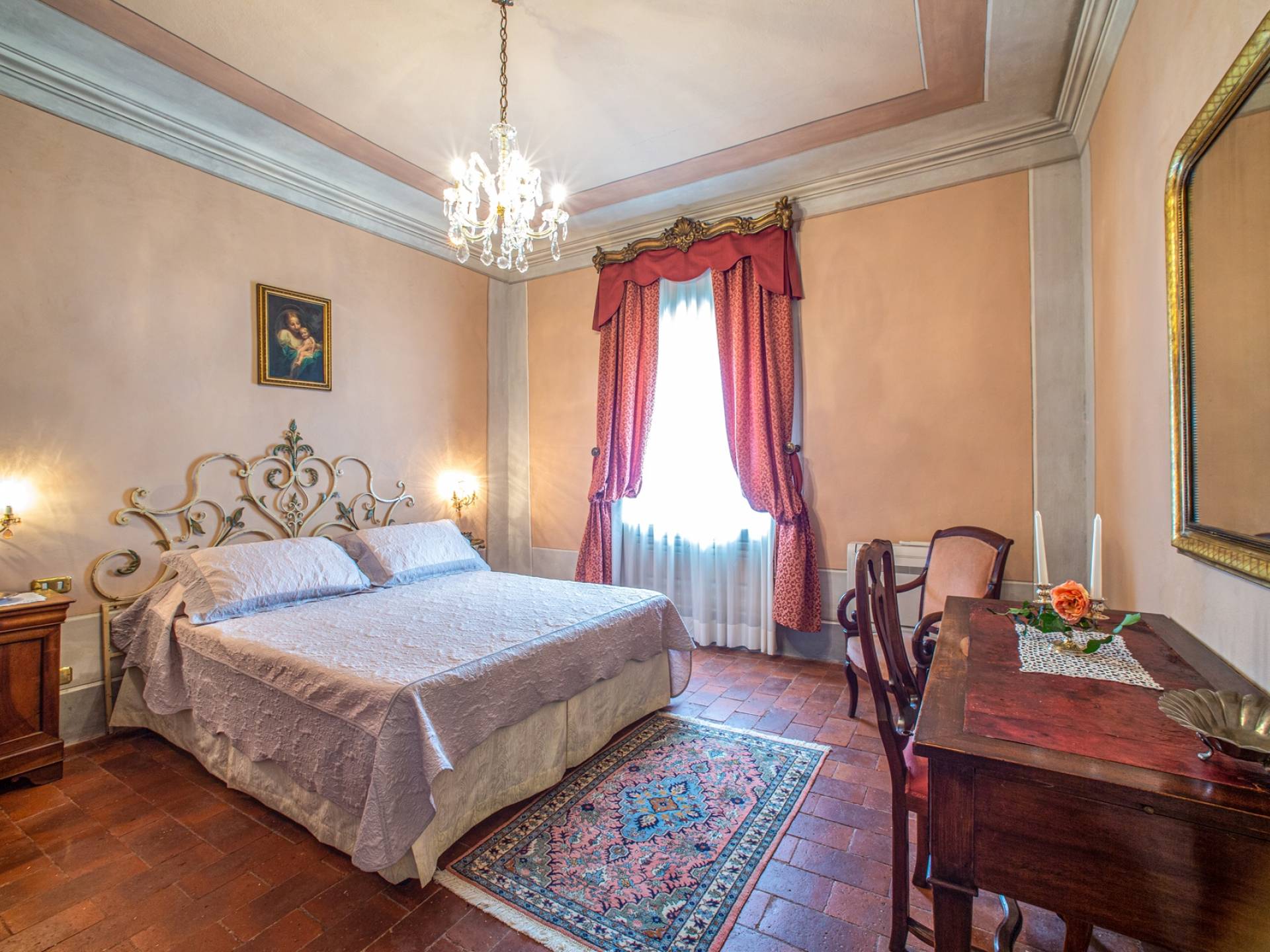 El interior de la villa está decorado con frescos de 1600/1700, restaurados a su esplendor original en 2018. Todos los elementos que decoran esta espectacular propiedad son del más alto valor histórico debido a su autenticidad. Desde los originales pavimentos de terracota hasta los techos con vigas de madera, las encantadoras chimeneas, las columnas de mármol, los preciosos frescos y las decoraciones. Los muebles elegantes y sofisticados con materiales preciosos y dorados elegantes otorgan un gran encanto y emociones únicas a este edificio antiguo. La villa, de aproximadamente 1.000 m2, tiene tres plantas y tiene capacidad para 20 invitados.