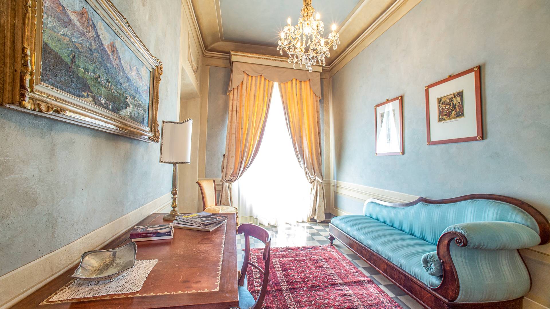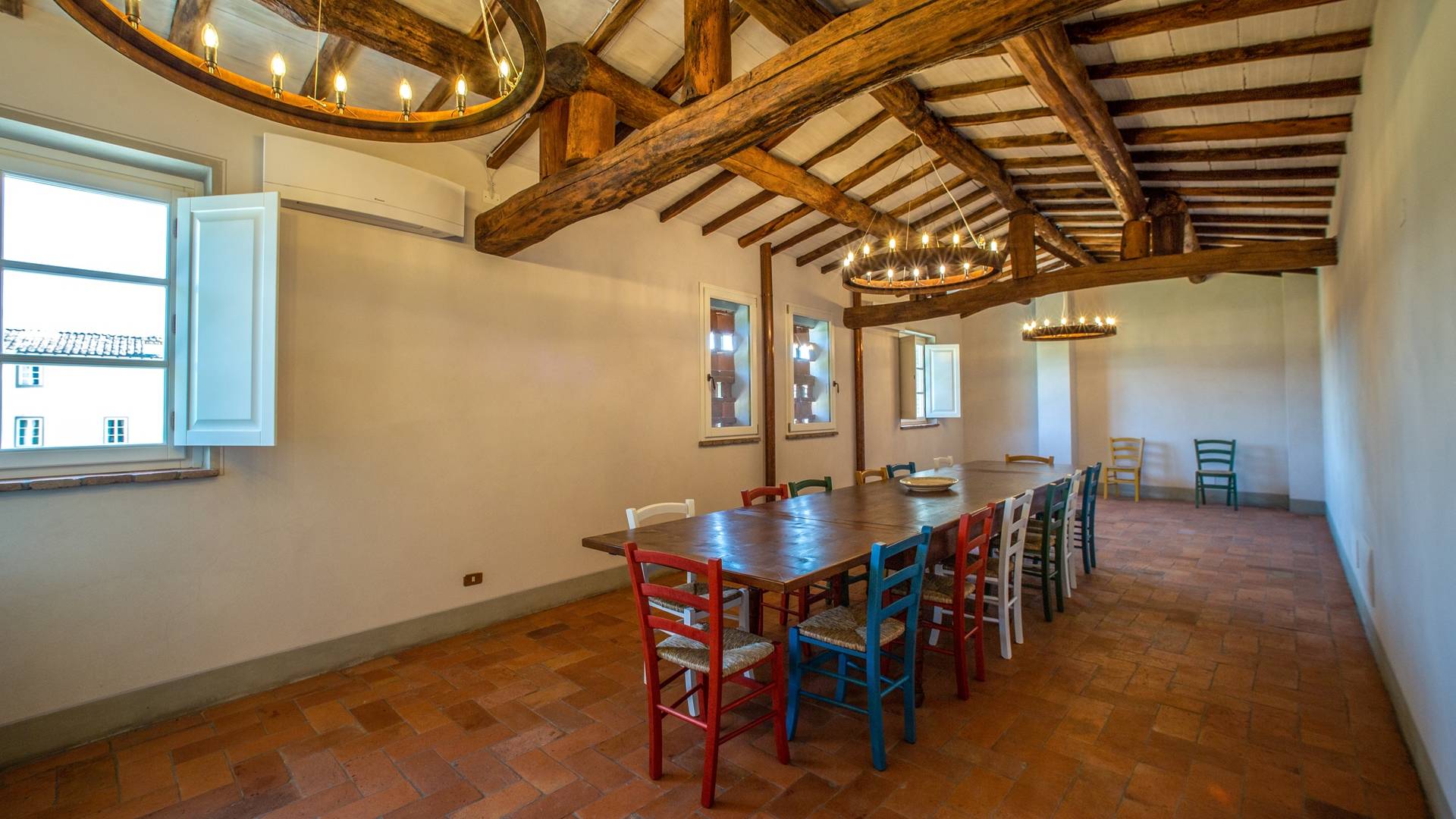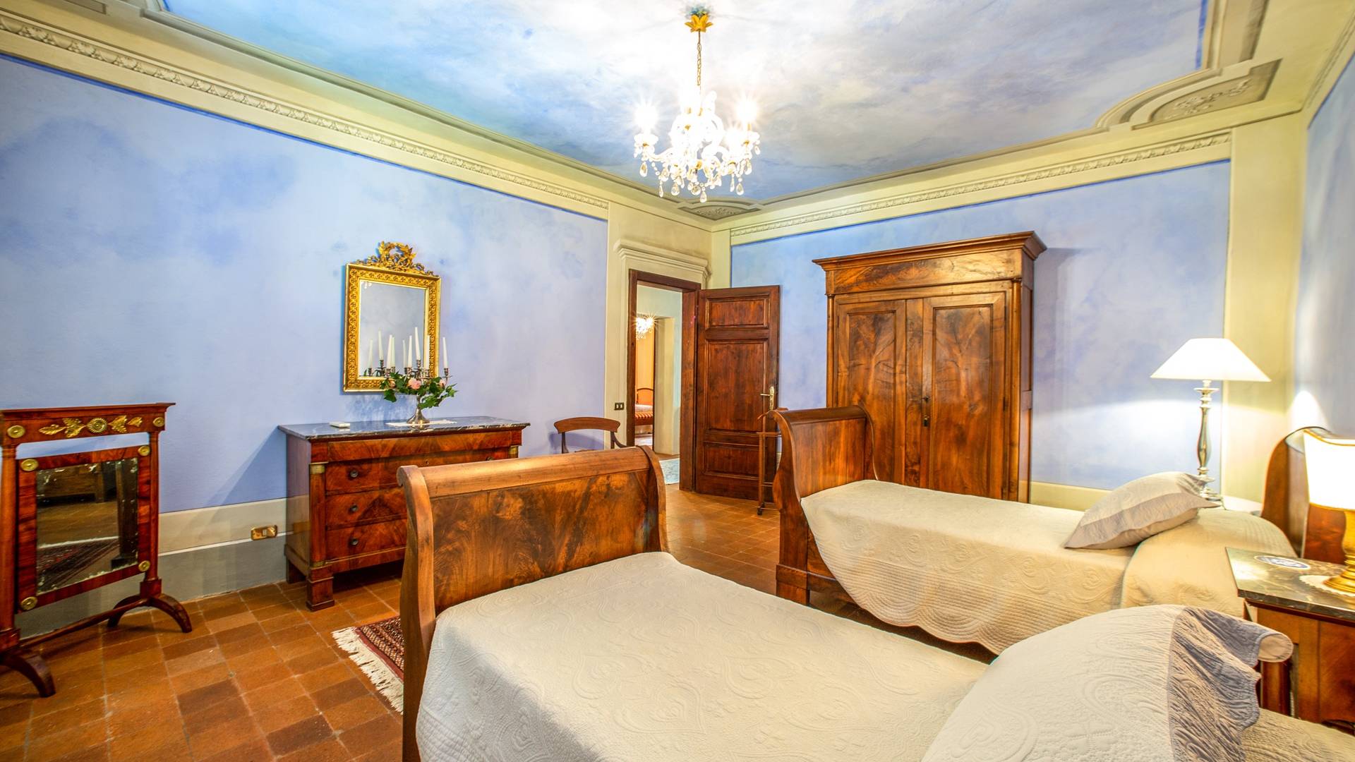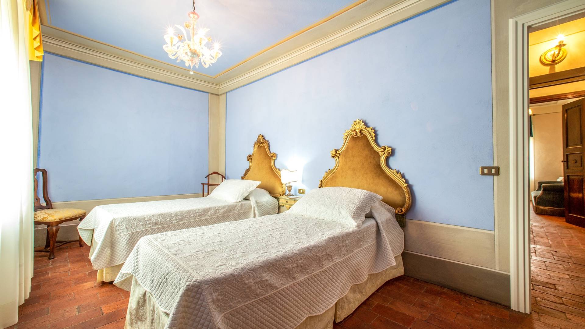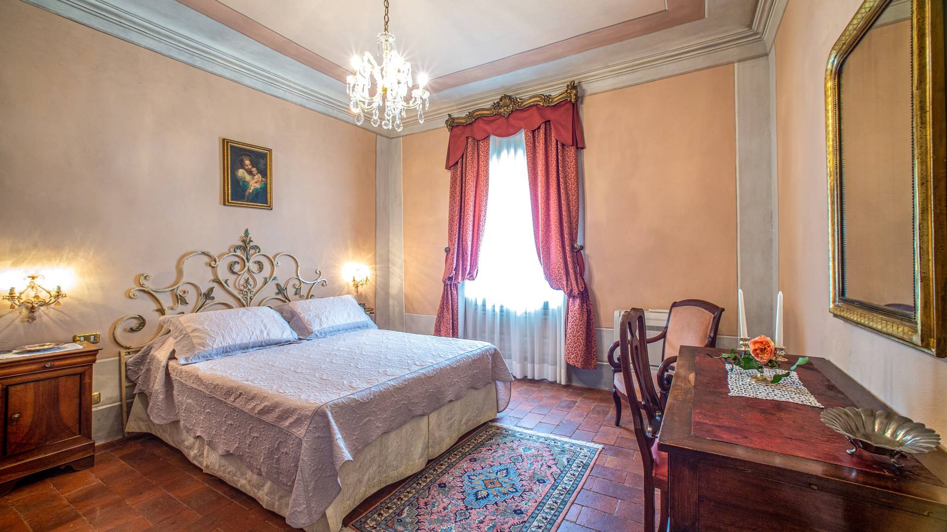 El interior de la villa está decorado con frescos de 1600/1700, restaurados a su esplendor original en 2018. Todos los elementos que decoran esta espectacular propiedad son del más alto valor histórico debido a su autenticidad. Desde los originales pavimentos de terracota hasta los techos con vigas de madera, las encantadoras chimeneas, las columnas de mármol, los preciosos frescos y las decoraciones. Los muebles elegantes y sofisticados con materiales preciosos y dorados elegantes otorgan un gran encanto y emociones únicas a este edificio antiguo. La villa, de aproximadamente 1.000 m2, tiene tres plantas y tiene capacidad para 20 invitados.